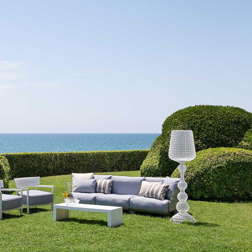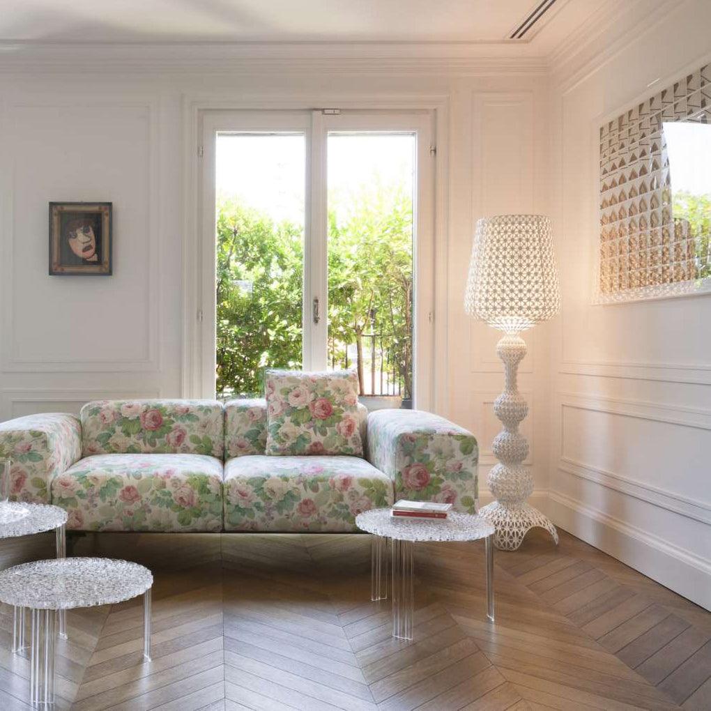 Kabuki 落地燈系列極具裝飾性,為房間帶來令人驚嘆的光線。由亞克力製成,外觀簡潔精緻。歌舞伎有五種美麗的顏色可供選擇:藍色、透明、綠色、白色和黑色。
