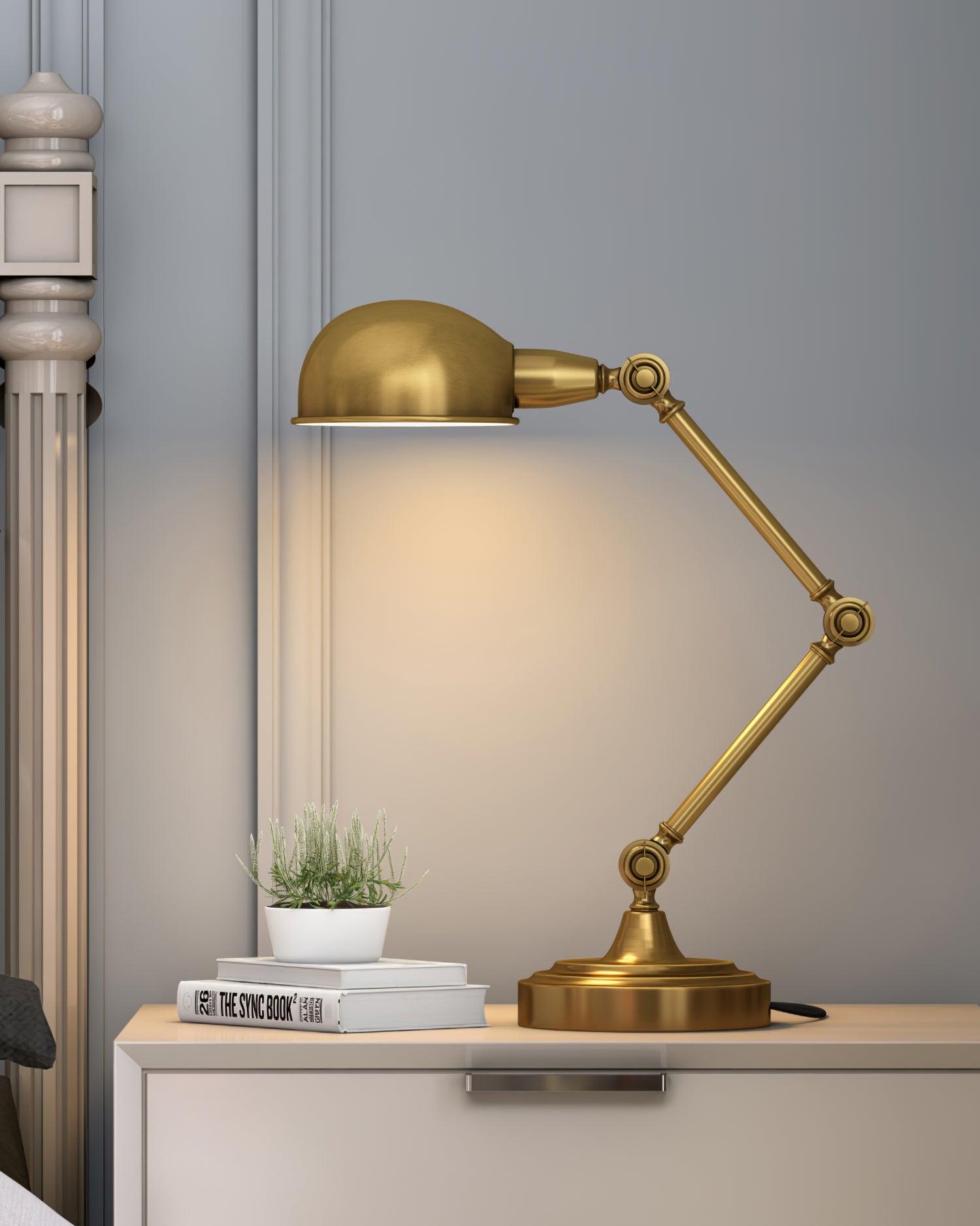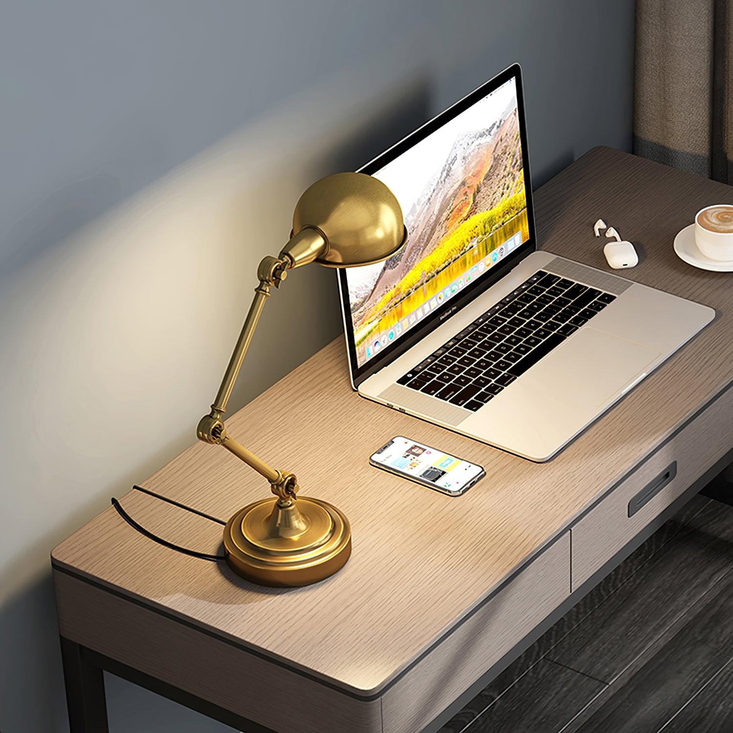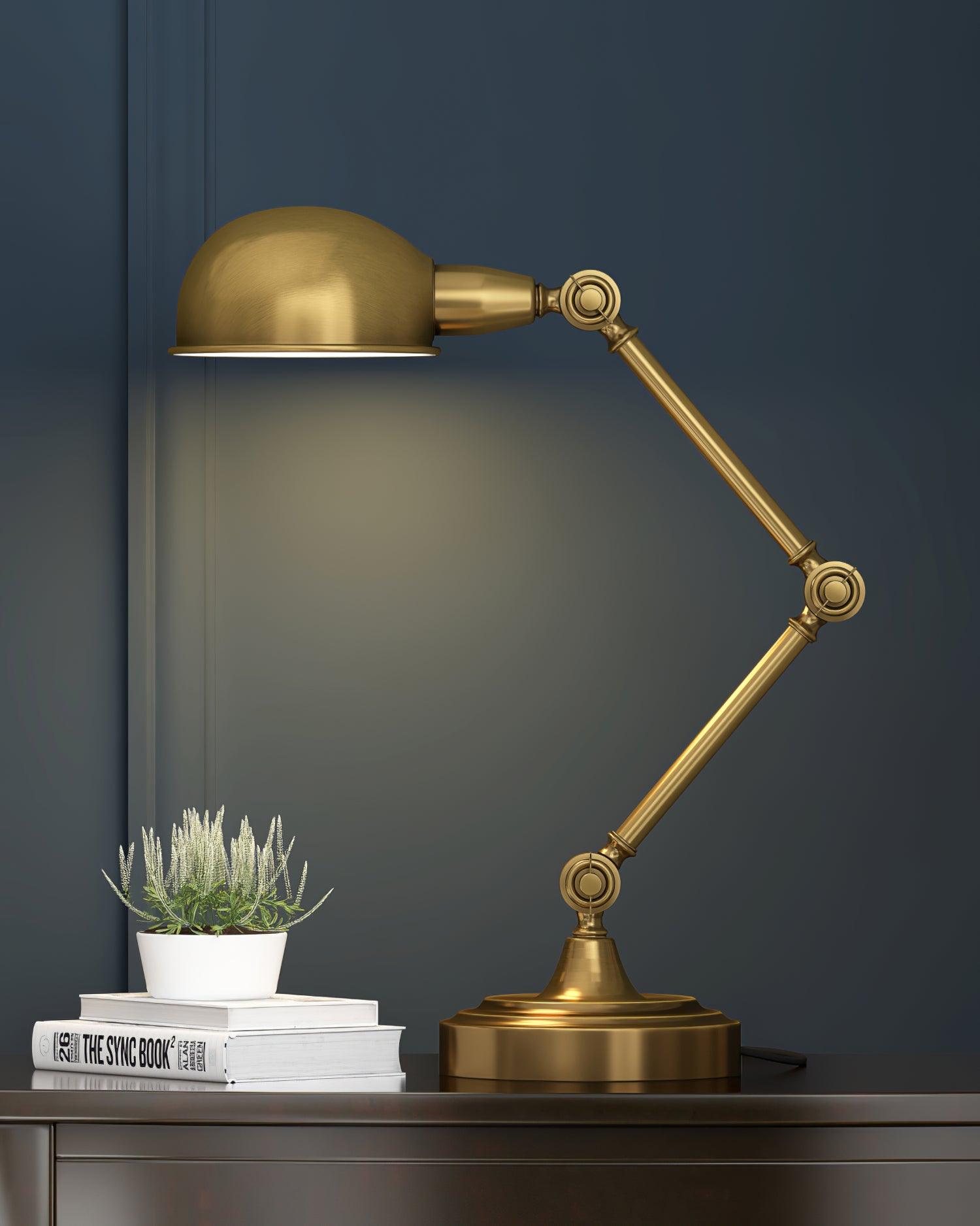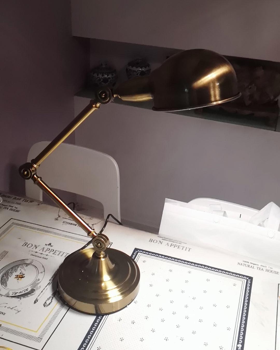 用這款可調節檯燈照亮手頭的任務,這是任何辦公桌或工作區的必備品。除了實用之外,這款燈的金屬金色飾面賦予其複古工業外觀。