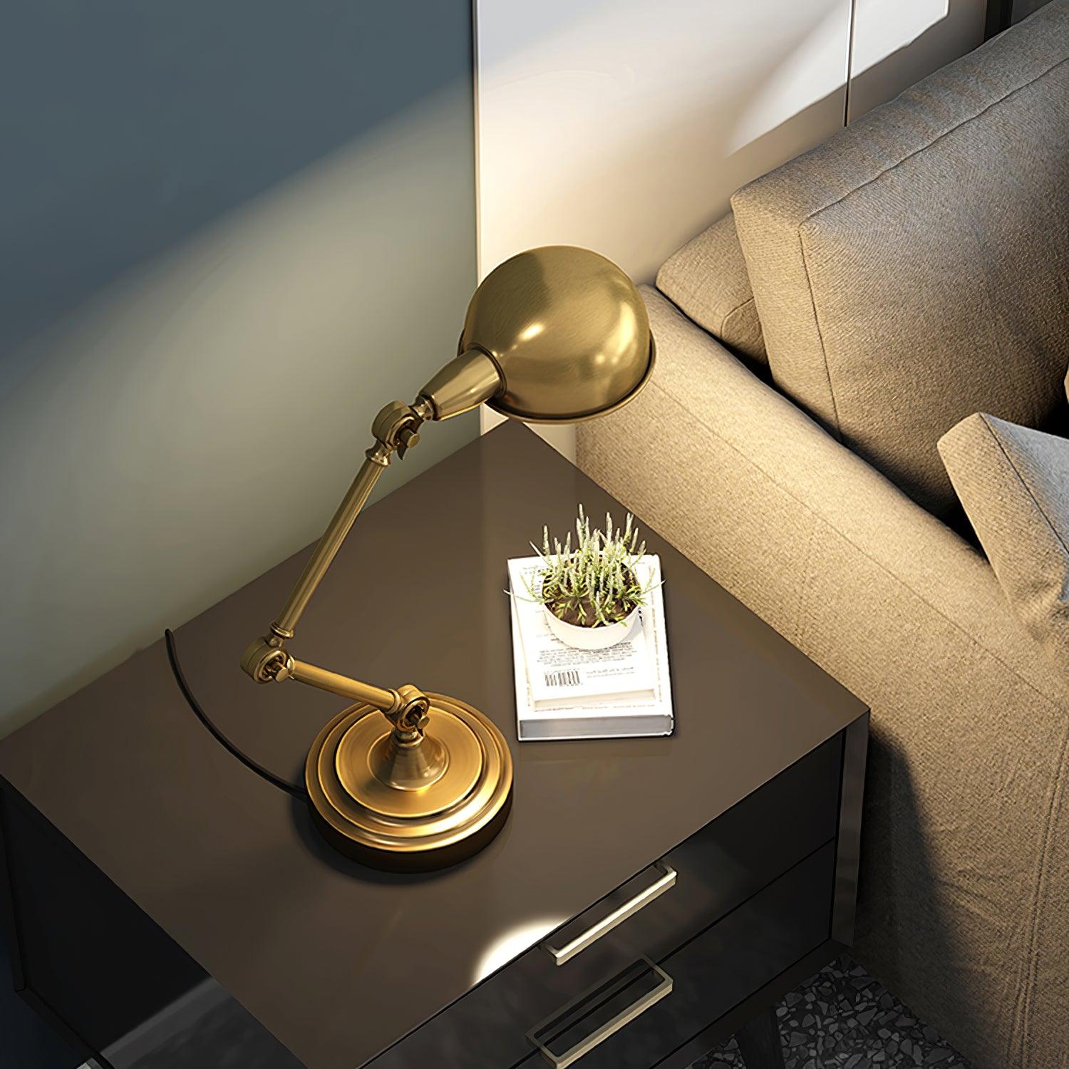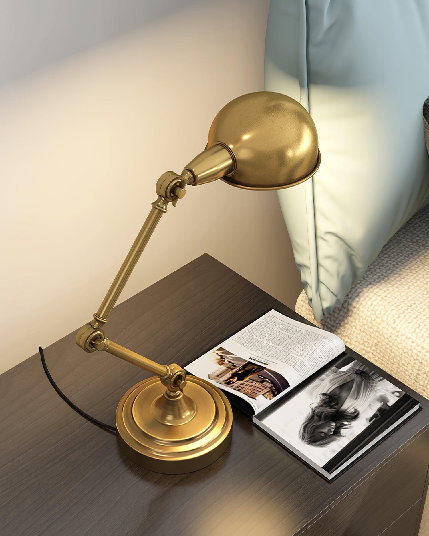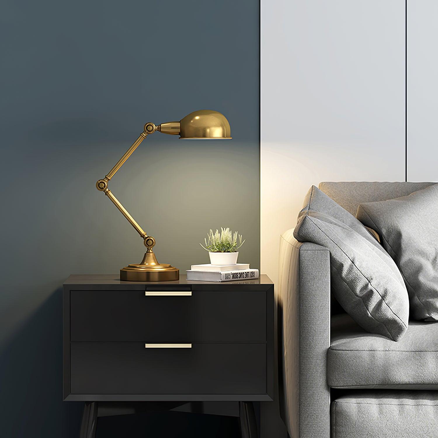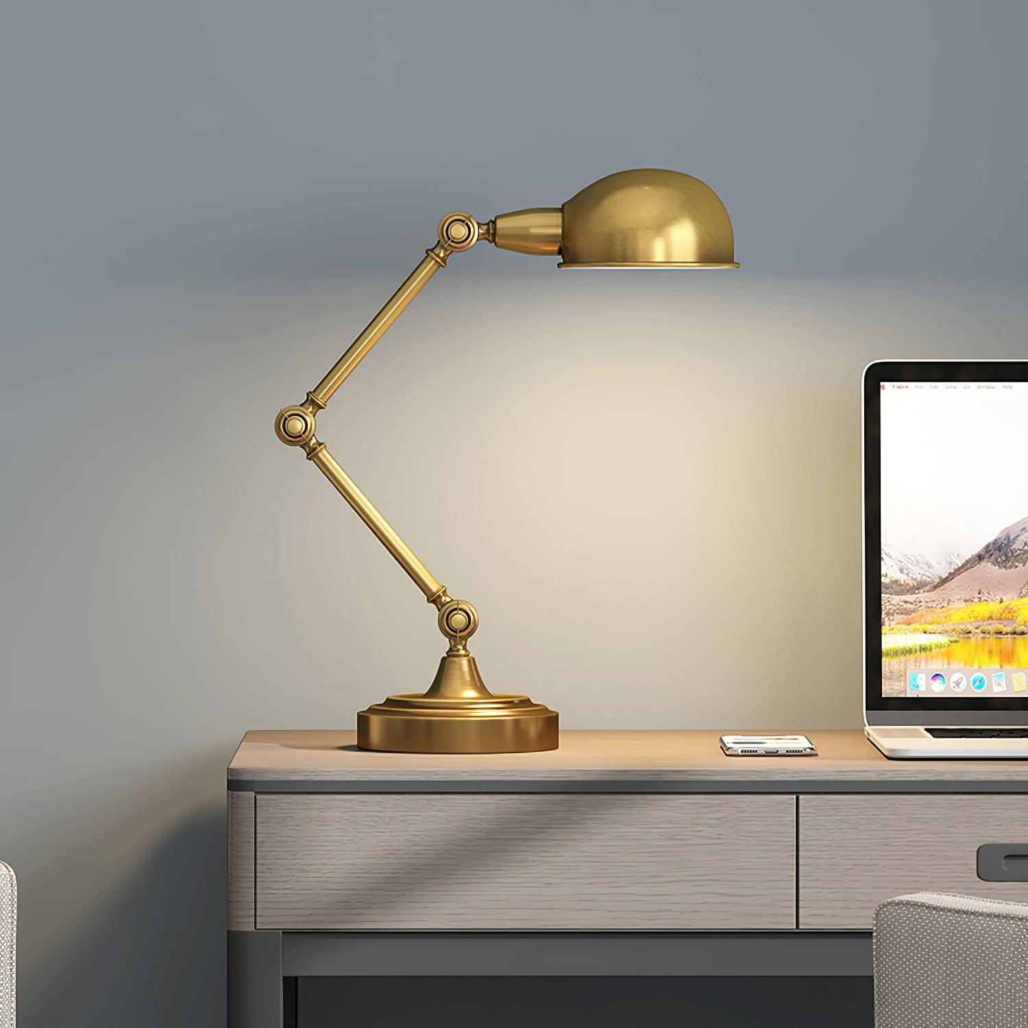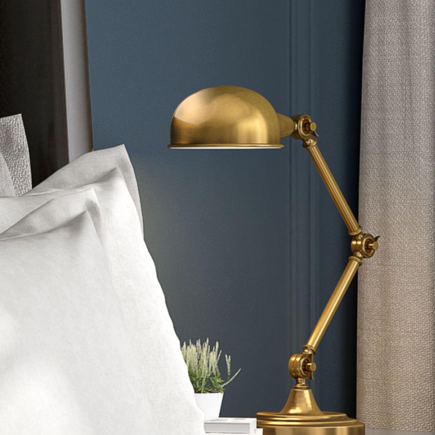 用這款可調節檯燈照亮手頭的任務,這是任何辦公桌或工作區的必備品。除了實用之外,這款燈的金屬金色飾面賦予其複古工業外觀。