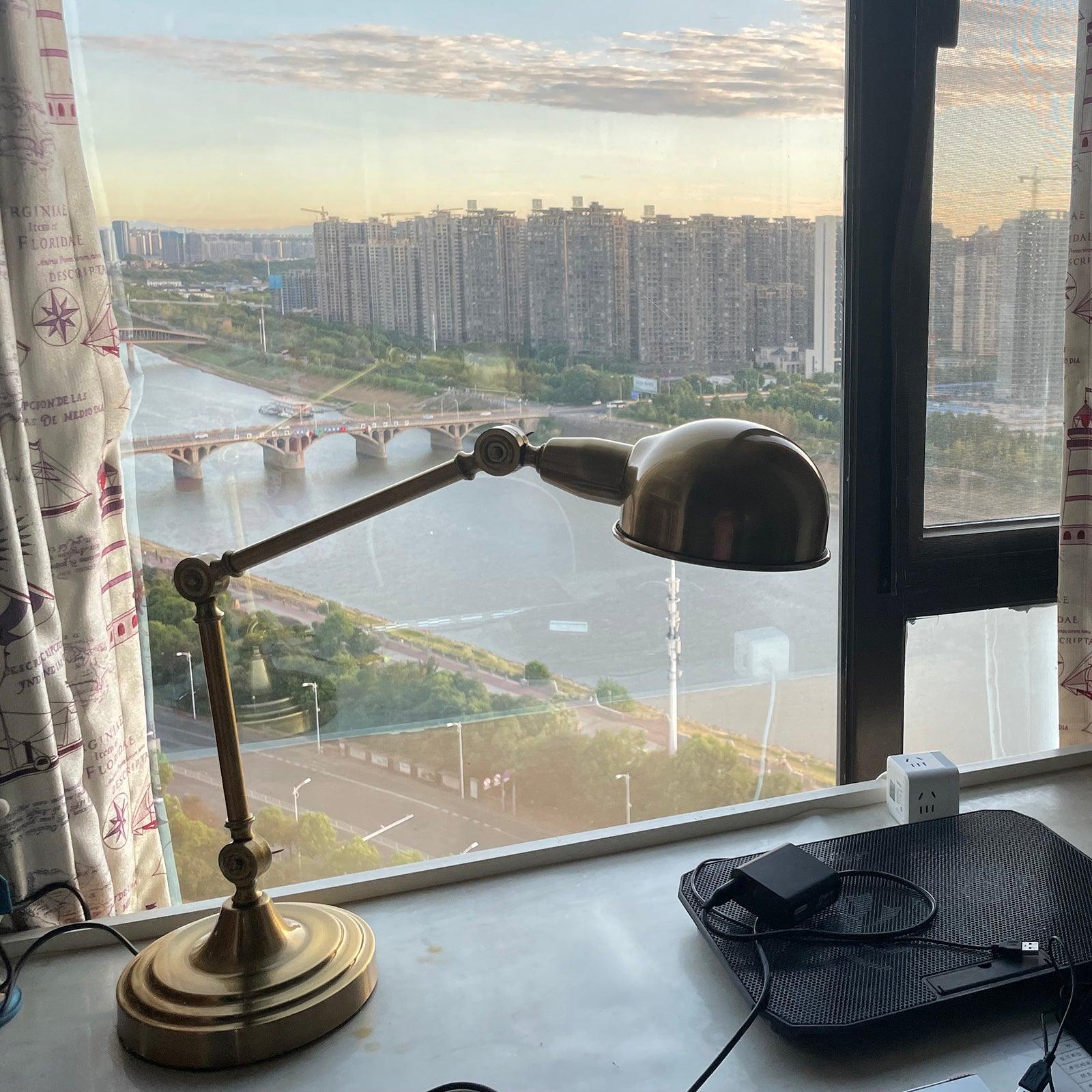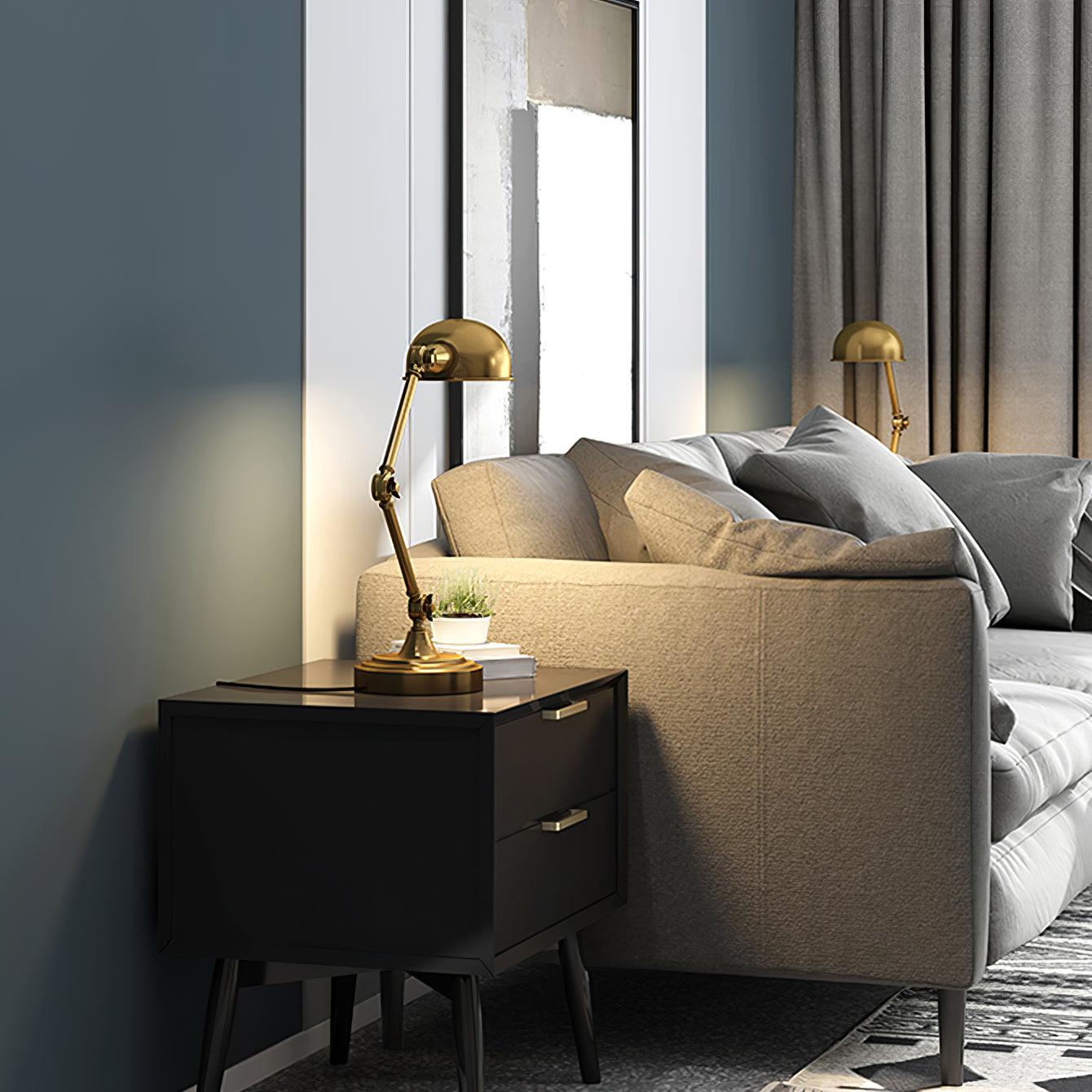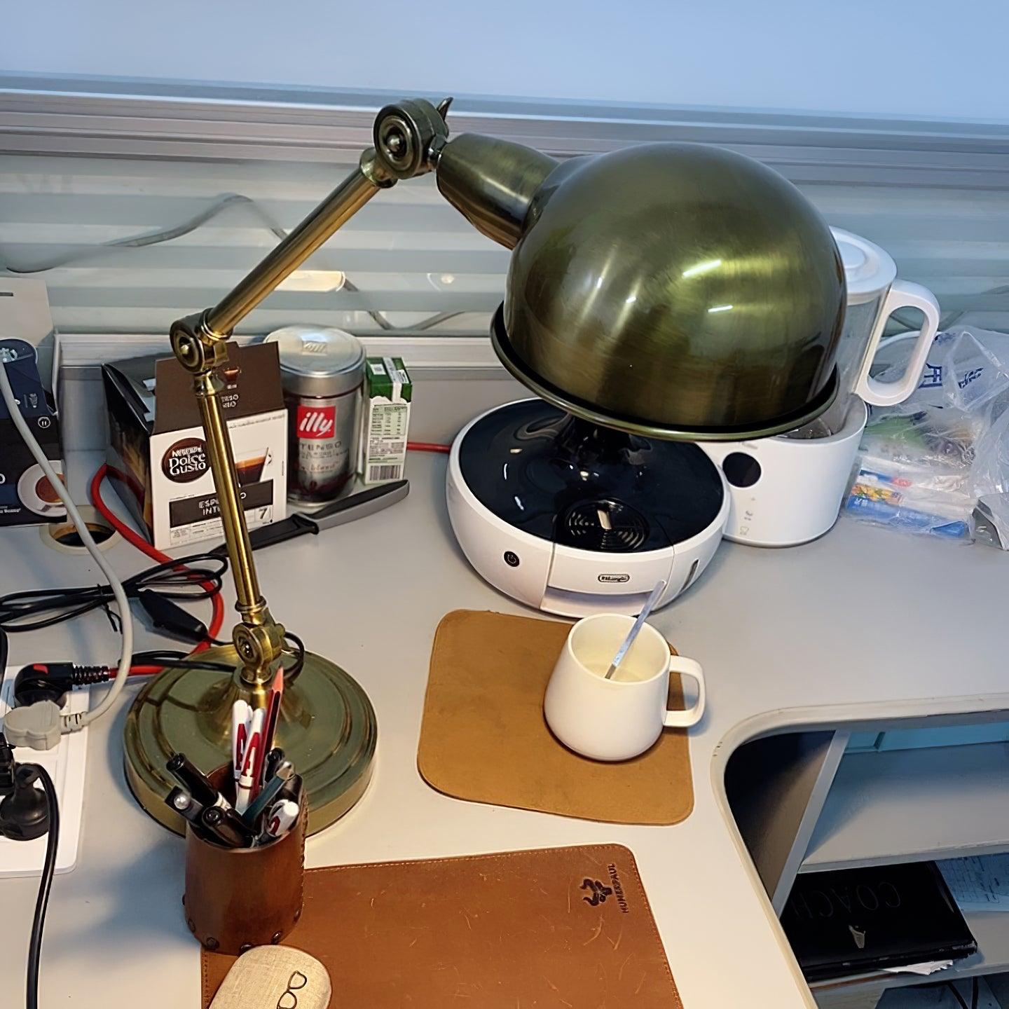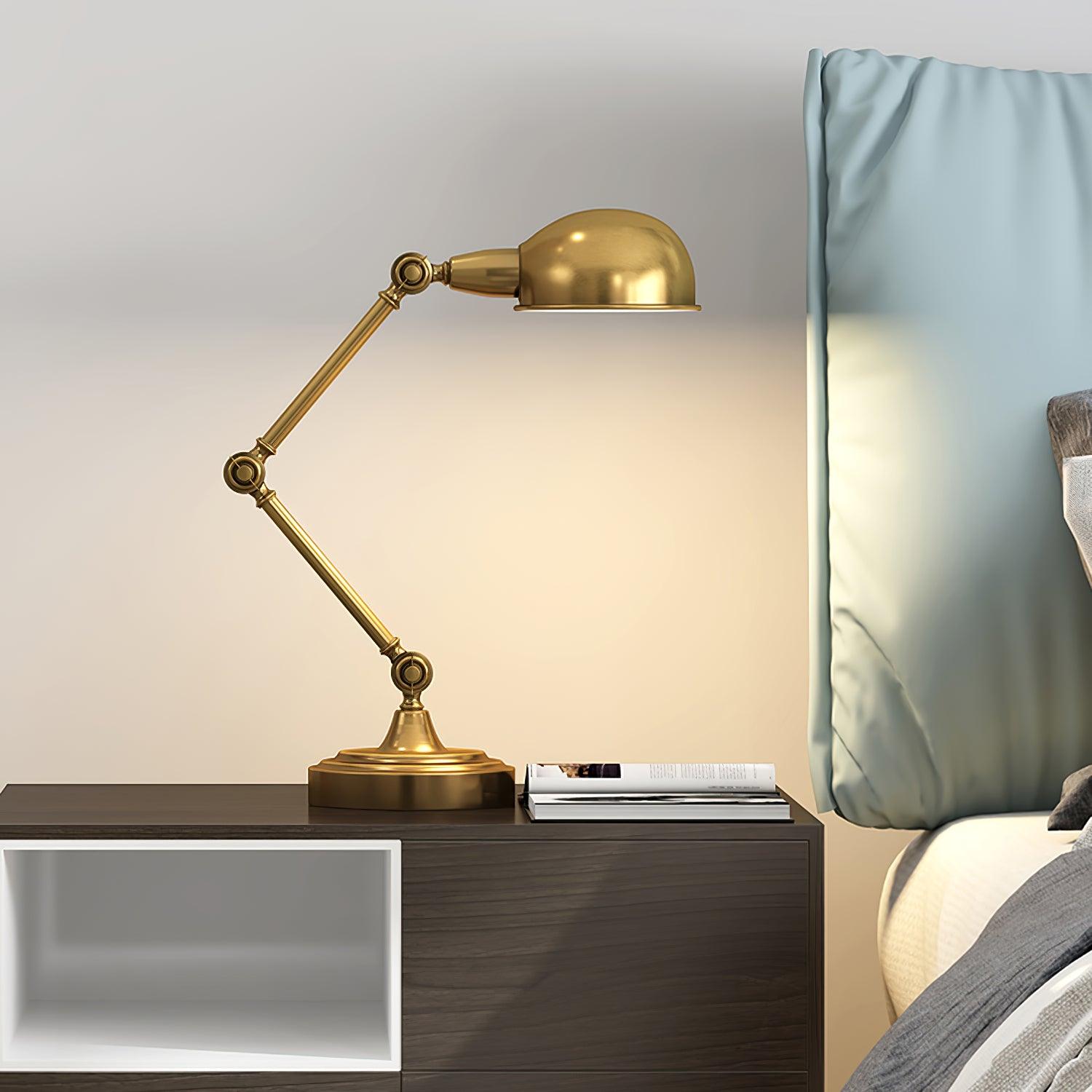 用這款可調節檯燈照亮手頭的任務,這是任何辦公桌或工作區的必備品。除了實用之外,這款燈的金屬金色飾面賦予其複古工業外觀。