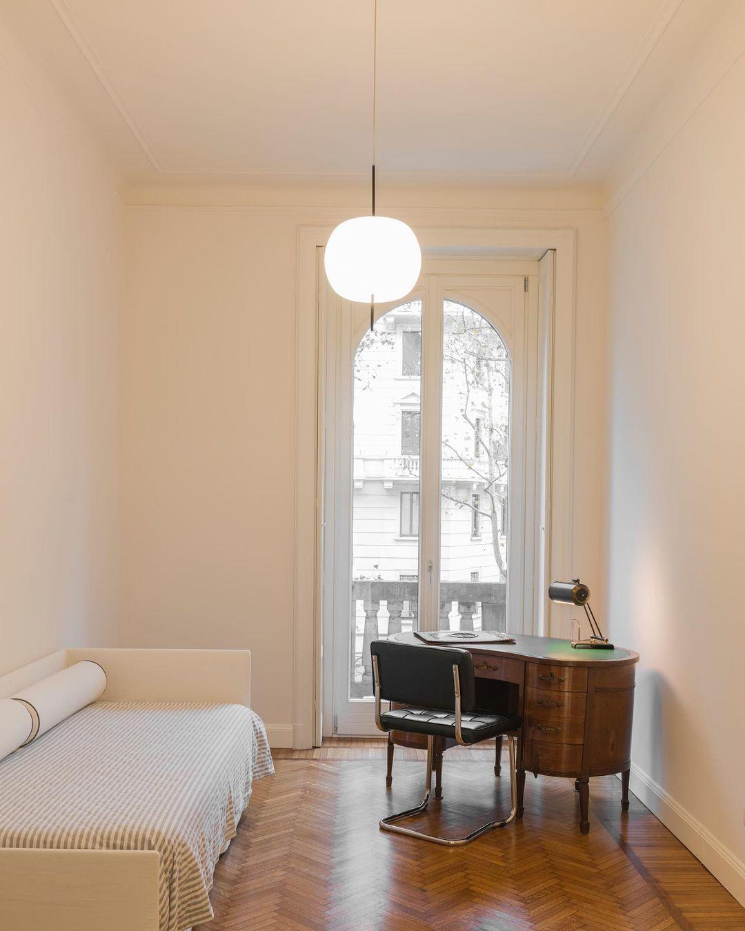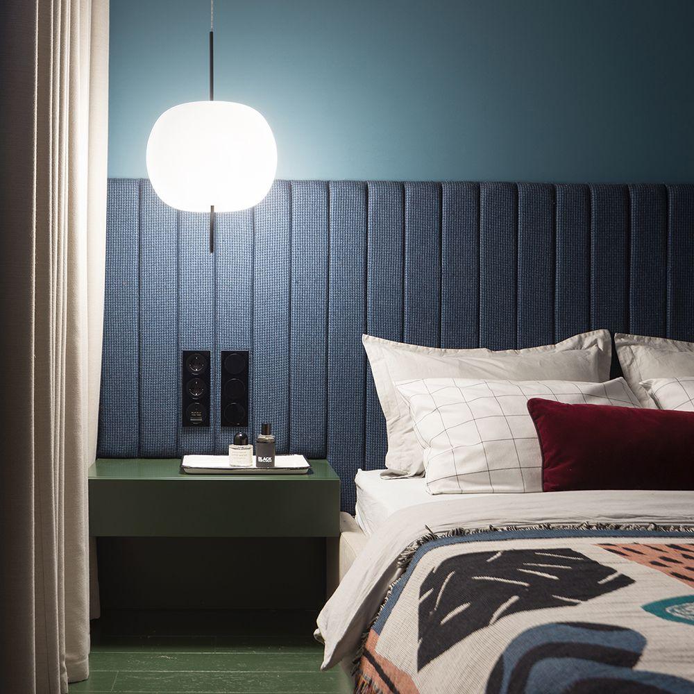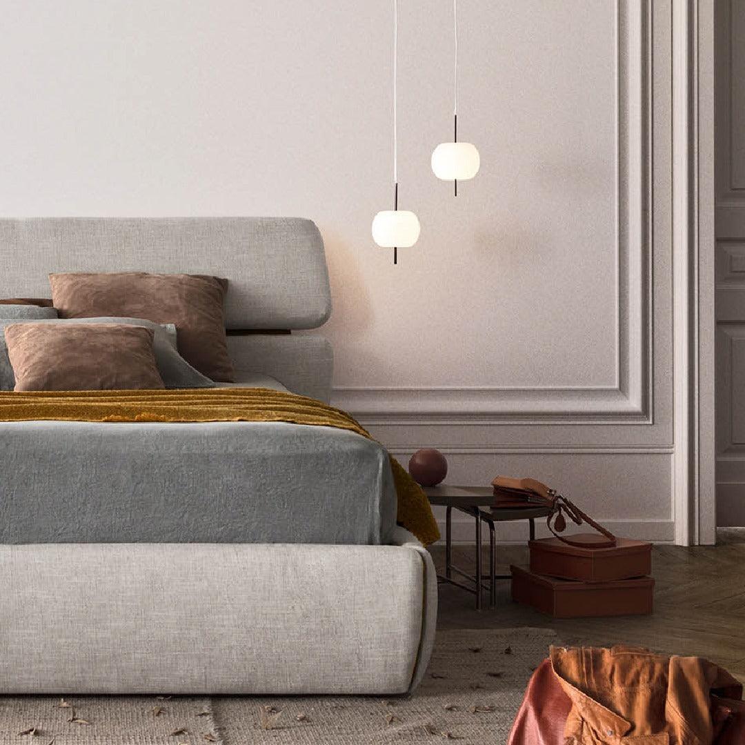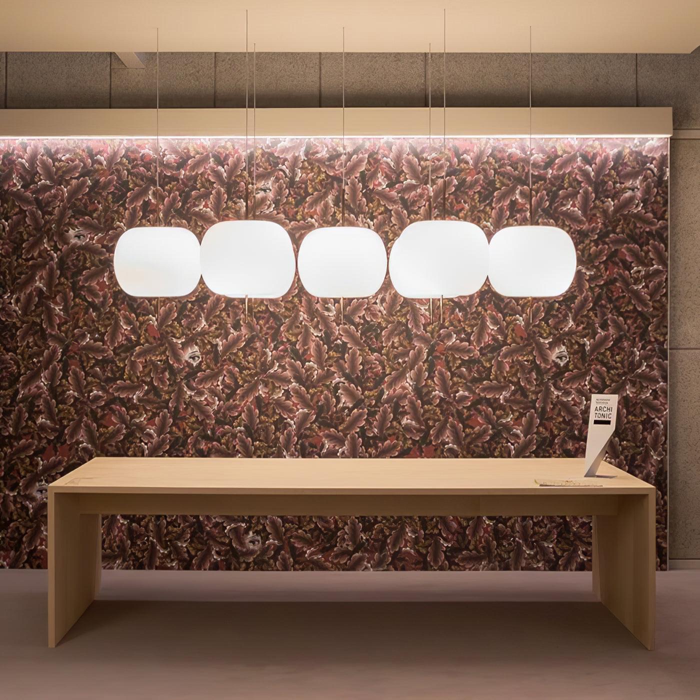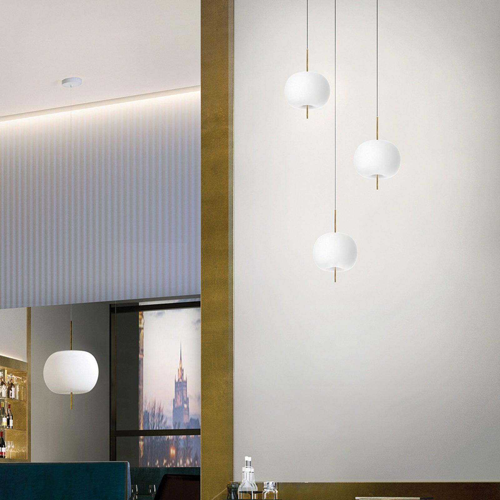 KUSHI,顧名思義,是一款非常獨特的吊燈,設計靈感來自日本的“kushi”。這個設計看起來像串在串上的蘋果,是對“食物”和“意大利製造”的致敬。燈罩部分由兩層吹製玻璃製成,顏色為白色。