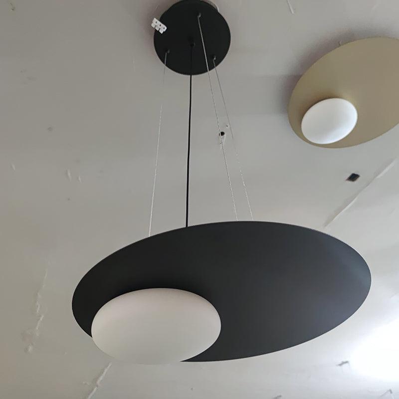 這款現代燈採用優質鐵製成,閃耀著獨特的設計,使其成為生活空間的漂亮點綴。半球形吹製玻璃漫射器,裝有節能 LED 光源,疊加在塗漆鐵盤上。