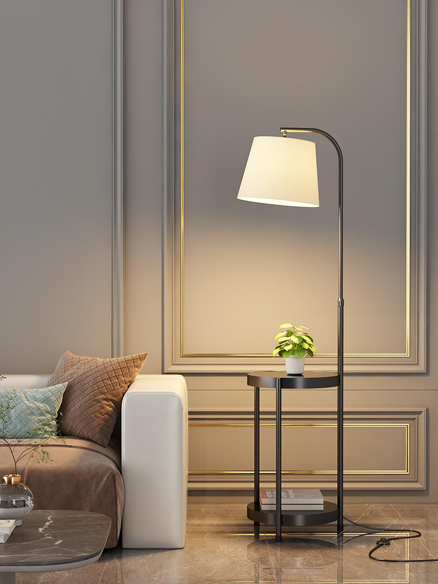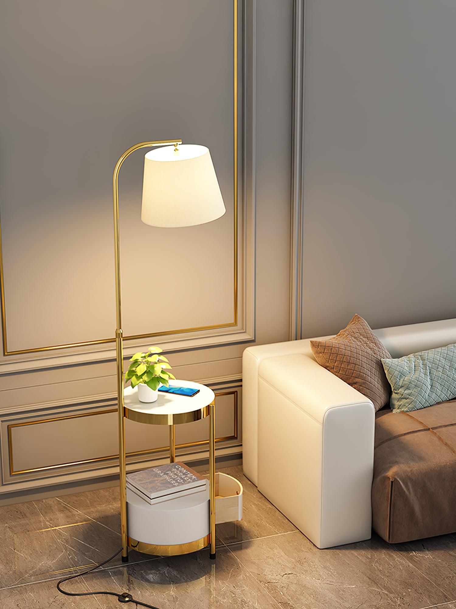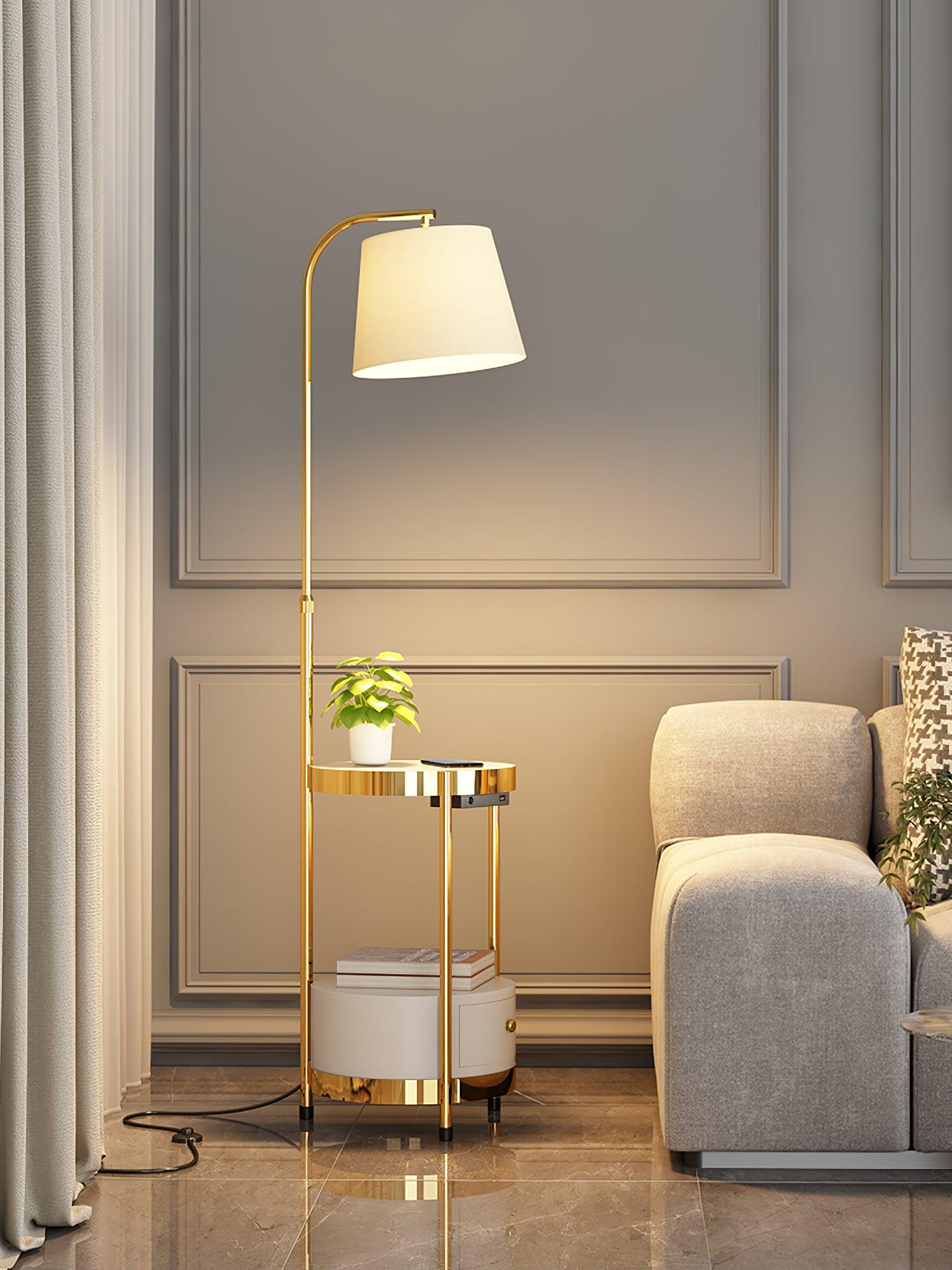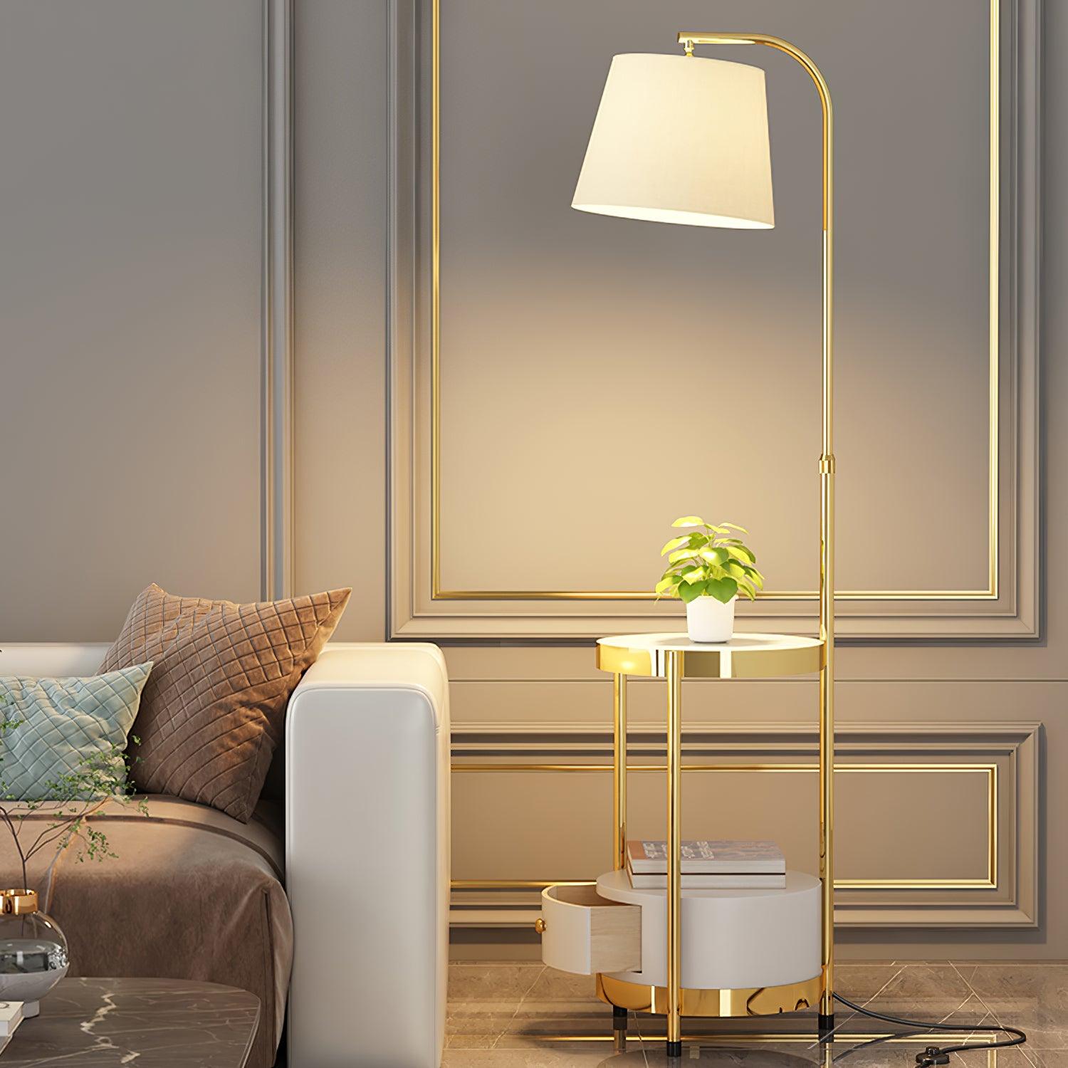 使用帶儲物架的 Lilah 落地燈茶几增添功能表面,照亮您的空間。這款桌子和檯燈組合採用金色飾面金屬底座、米色鼓形燈罩和人造大理石桌面,為您的臥室或起居空間增添現代氣息。這張桌子在桌面下方設有儲物架,可為您提供充足的空間您的電話、遙控器、書籍和其他小物品。