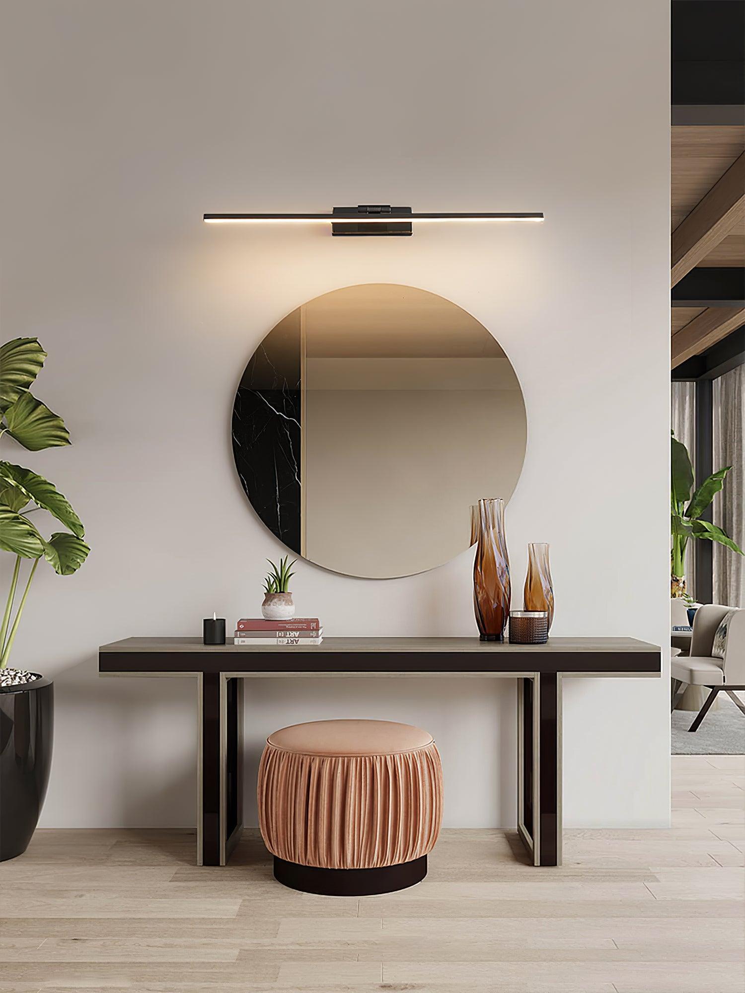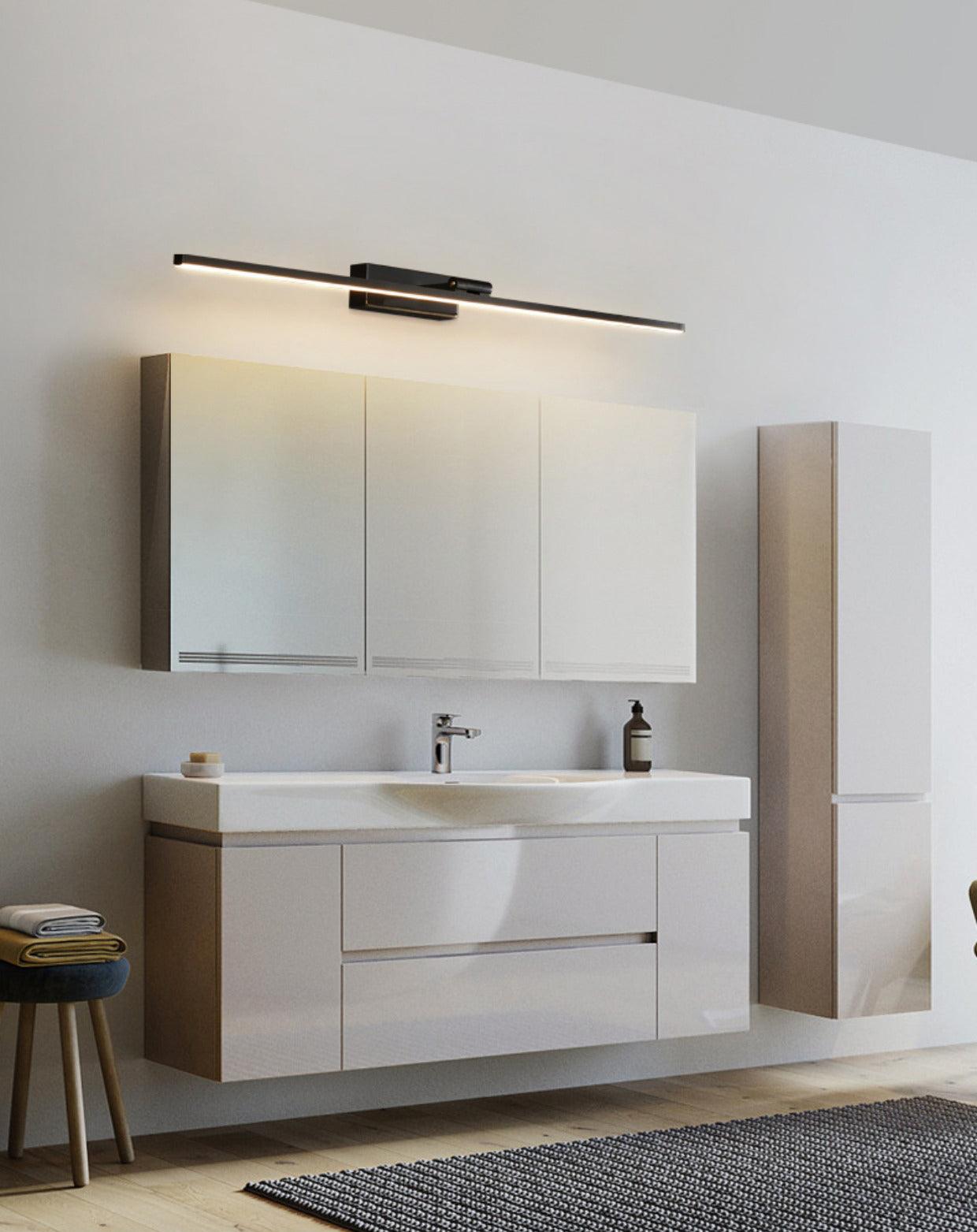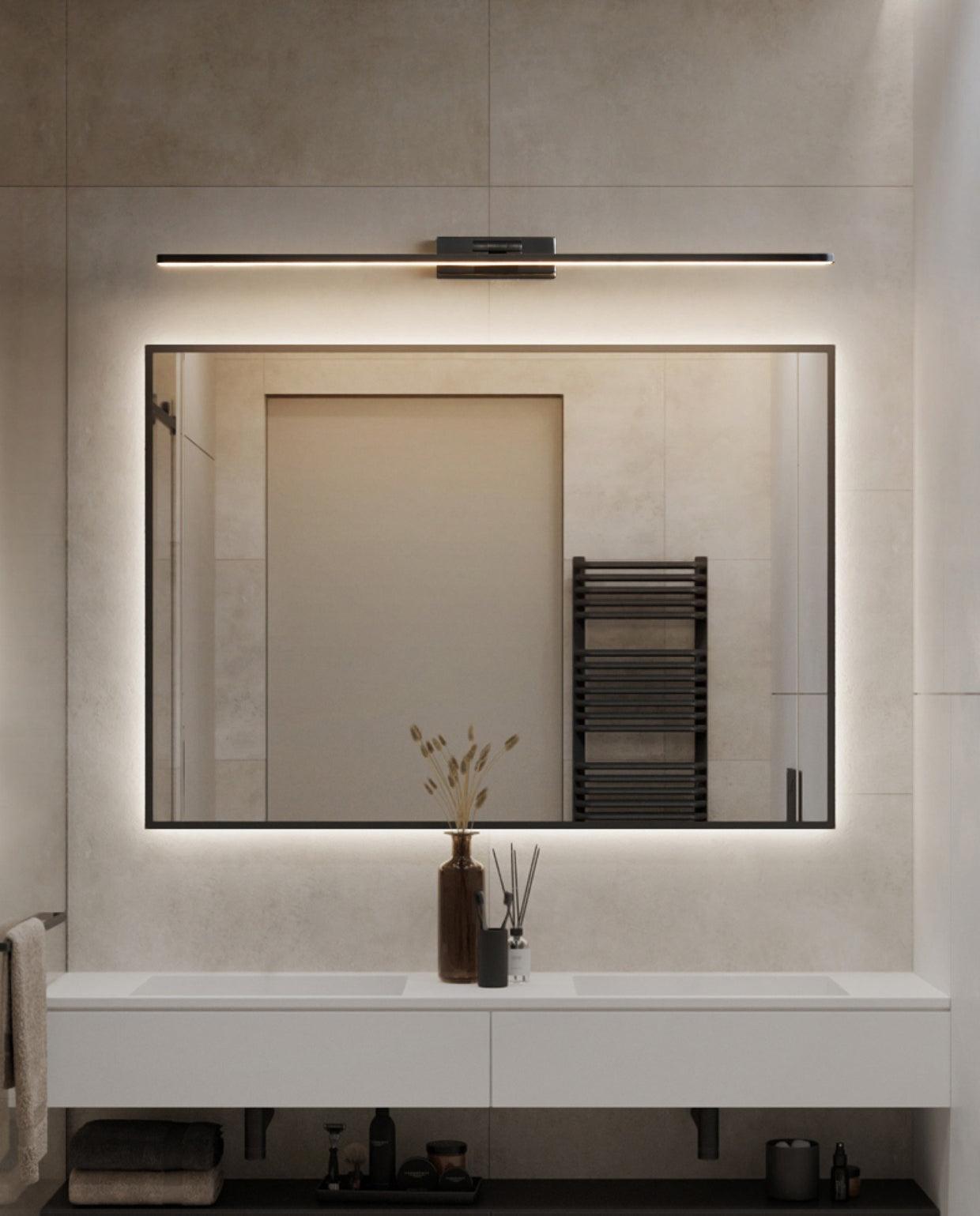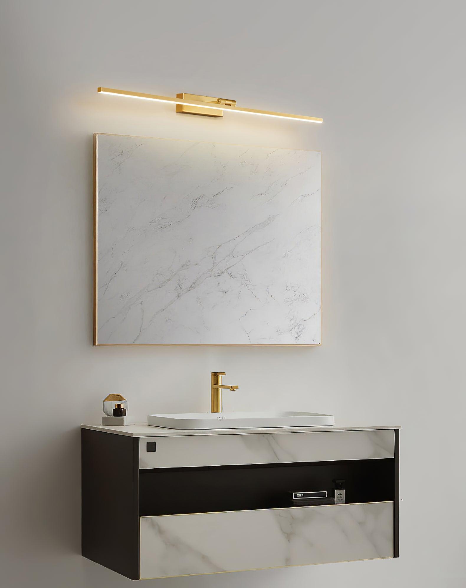 這款 LED 浴室梳妝台採用現代簡潔設計,前燈罩由亞克力製成,後面板由黃銅製成。線性浴室壁燈以其特殊的外觀設計而廣受歡迎。它發出的光溫暖舒適。水槽和浴室的理想選擇。