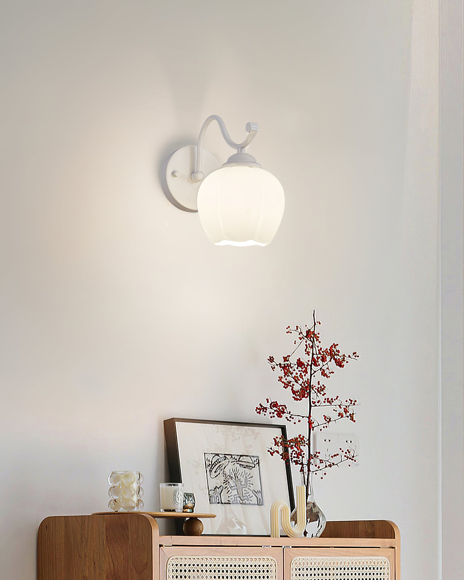 lomance百合壁燈具有簡約、自然、人性化的特點。表現出對傳統的尊重,對天然材料的欣賞,對形式和裝飾的克制,並為之奮鬥。形式與功能的統一。
