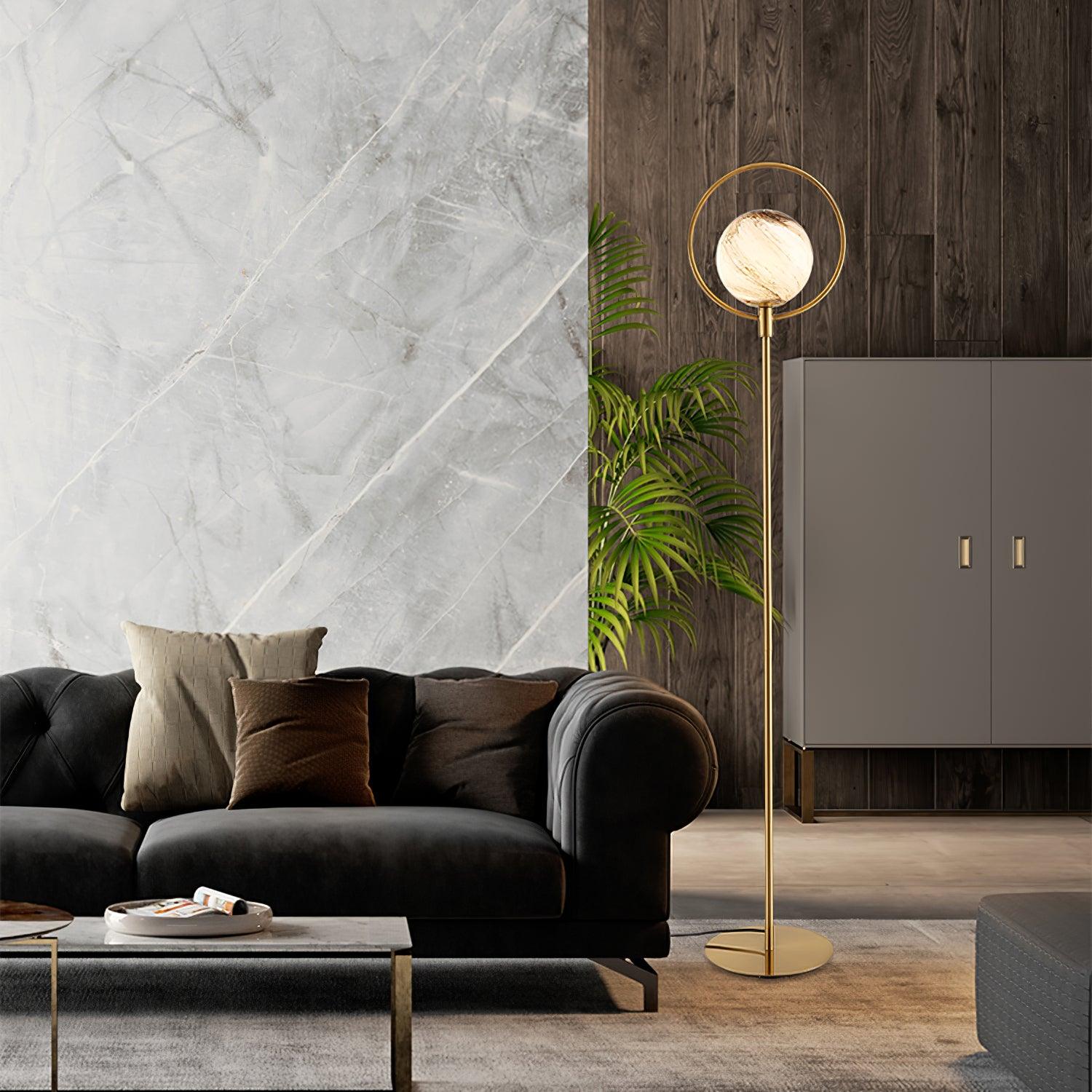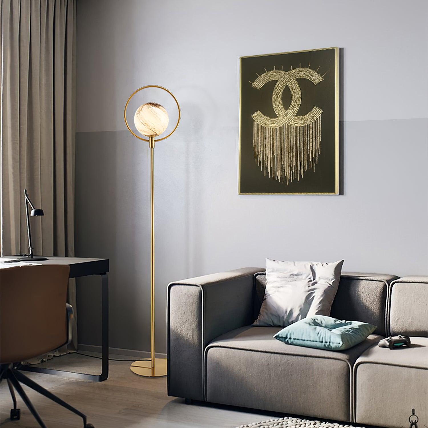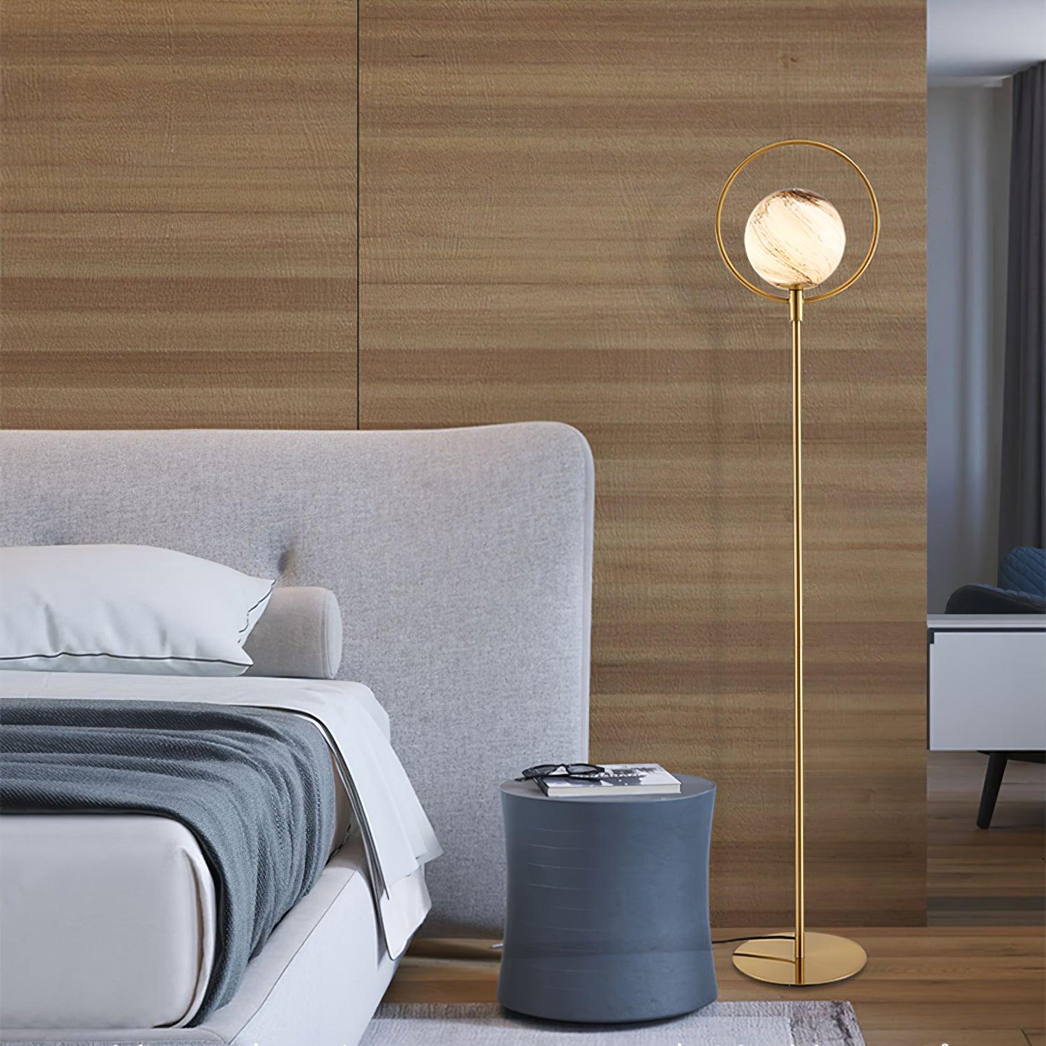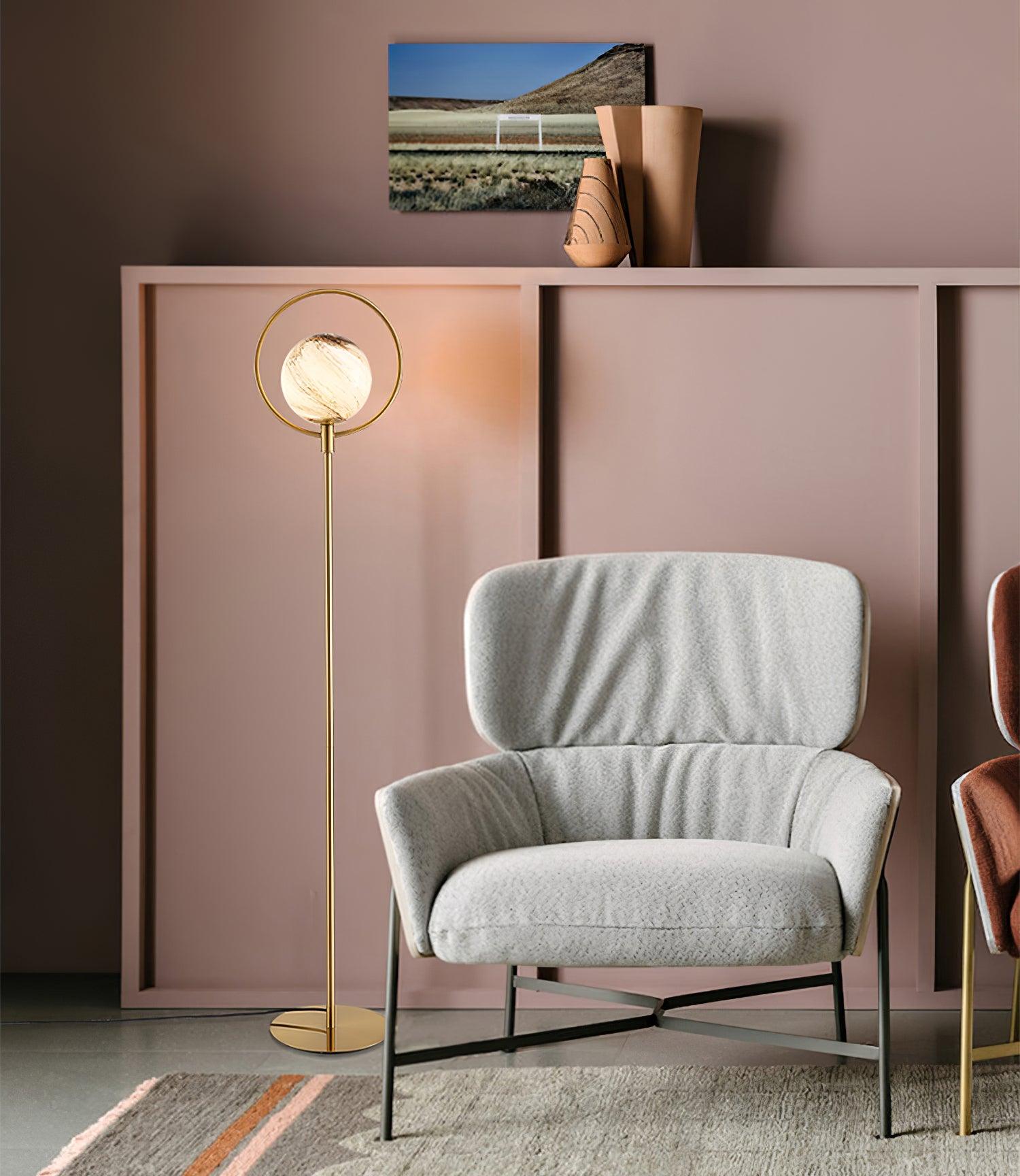 用 Moon Floor Lamp Lumi 的現代魅力點亮您的空間,採用時尚的金屬結構,支撐磨砂玻璃圓頂燈罩,框架內有圓形金屬裝飾。 Lumi Moon 落地燈非常適合辦公室、臥室、入口通道或起居區。