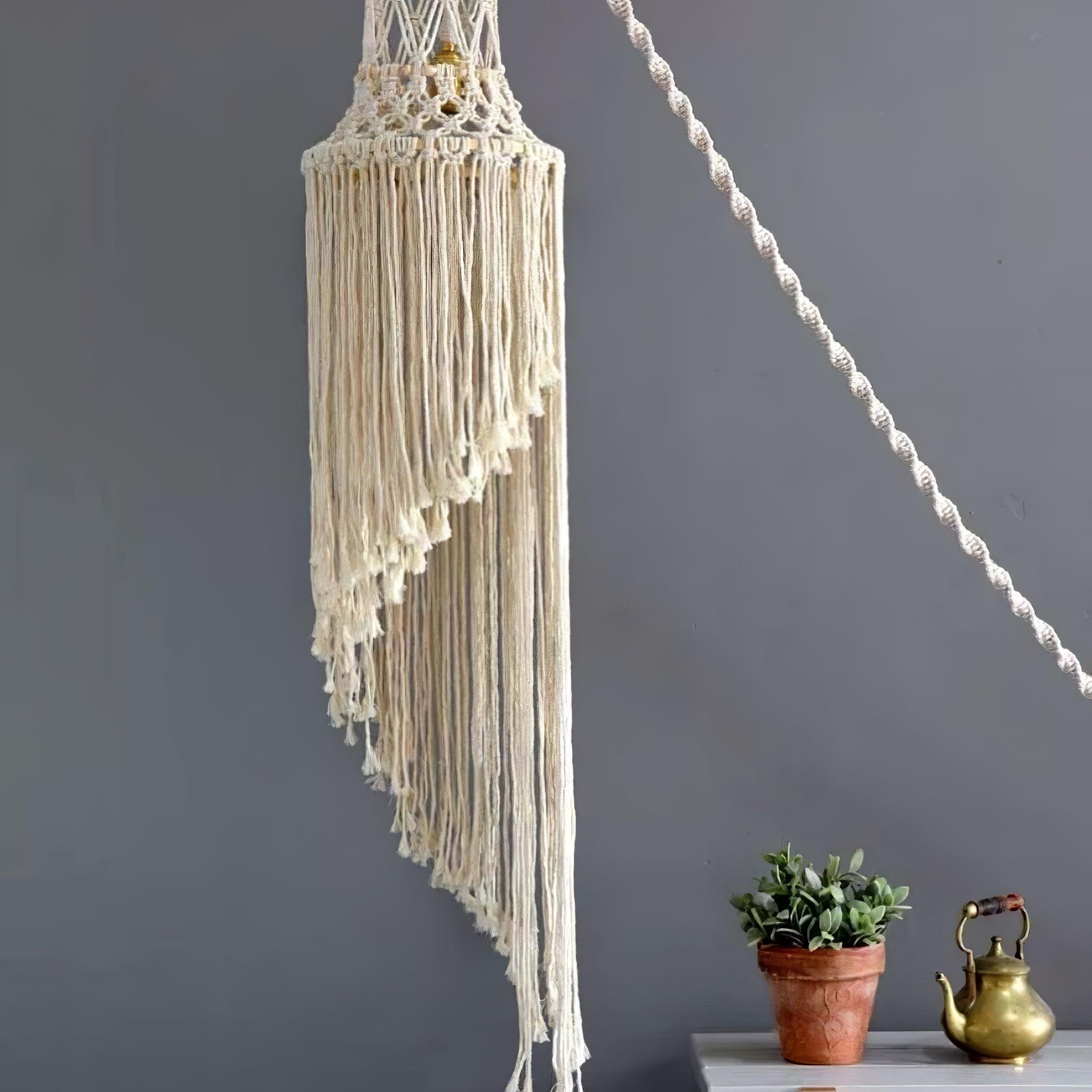 這款花邊螺旋吊燈由 100% 棉線和兩個木環手工製成,掛在一個小木環上。非常適合放在嬰兒床或床上,螺旋式旋轉時令人著迷!