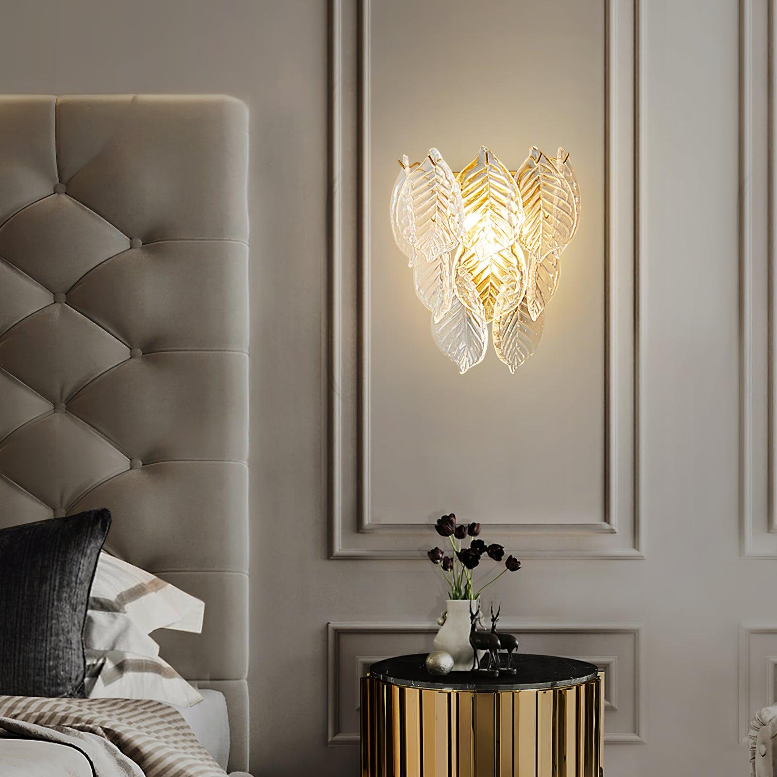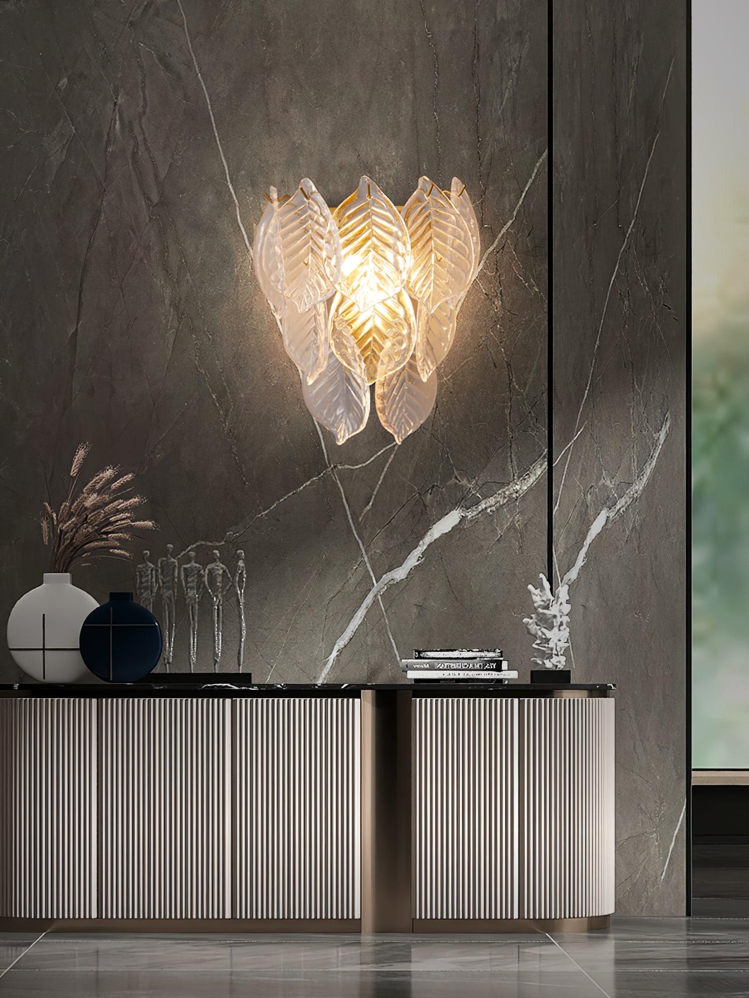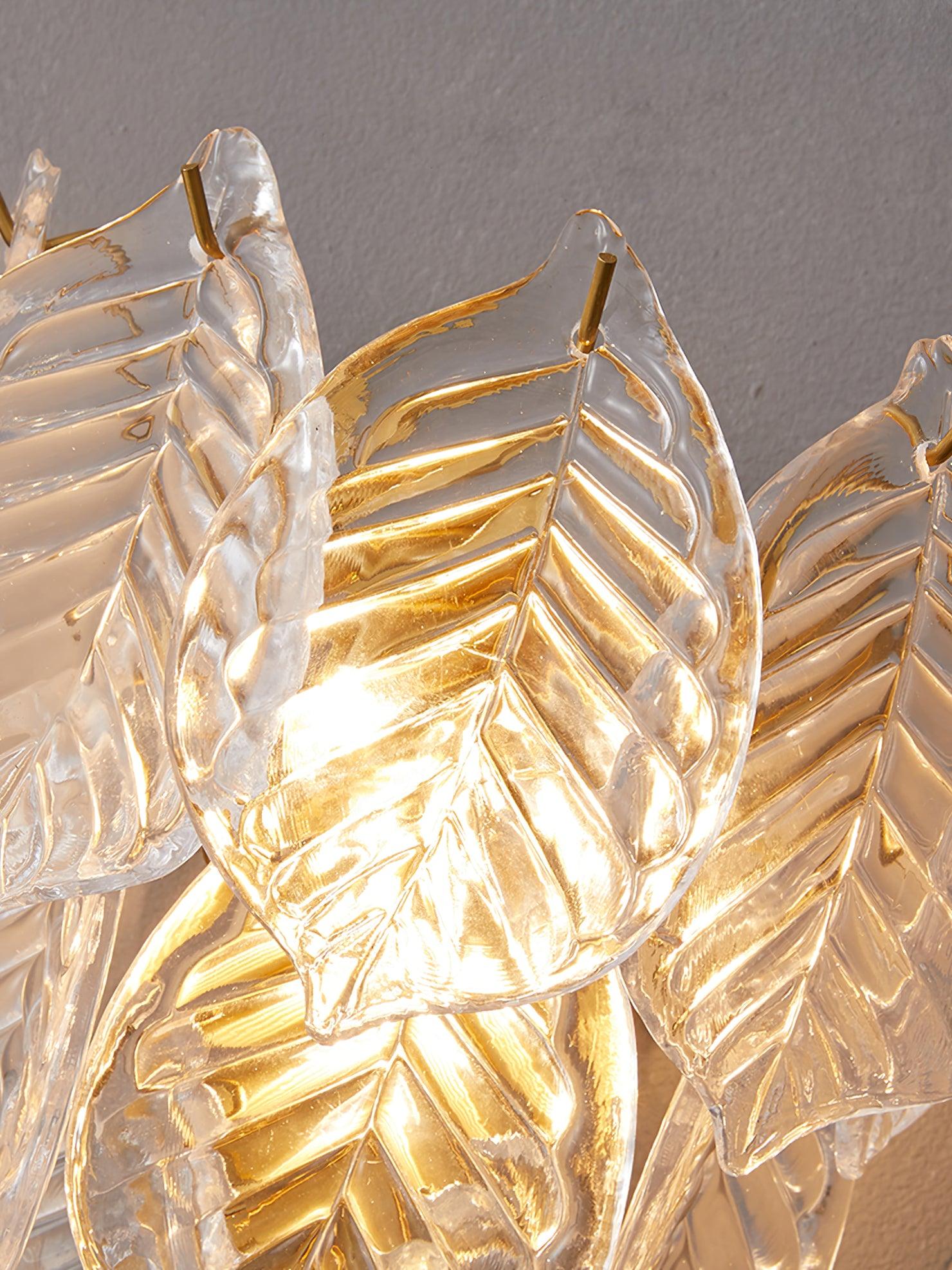 這對漂亮的壁燈由透明的磨砂玻璃葉子組成,懸掛在黃銅金屬結構上。一個罕見的設計對象,將美妙地照亮您的內部。