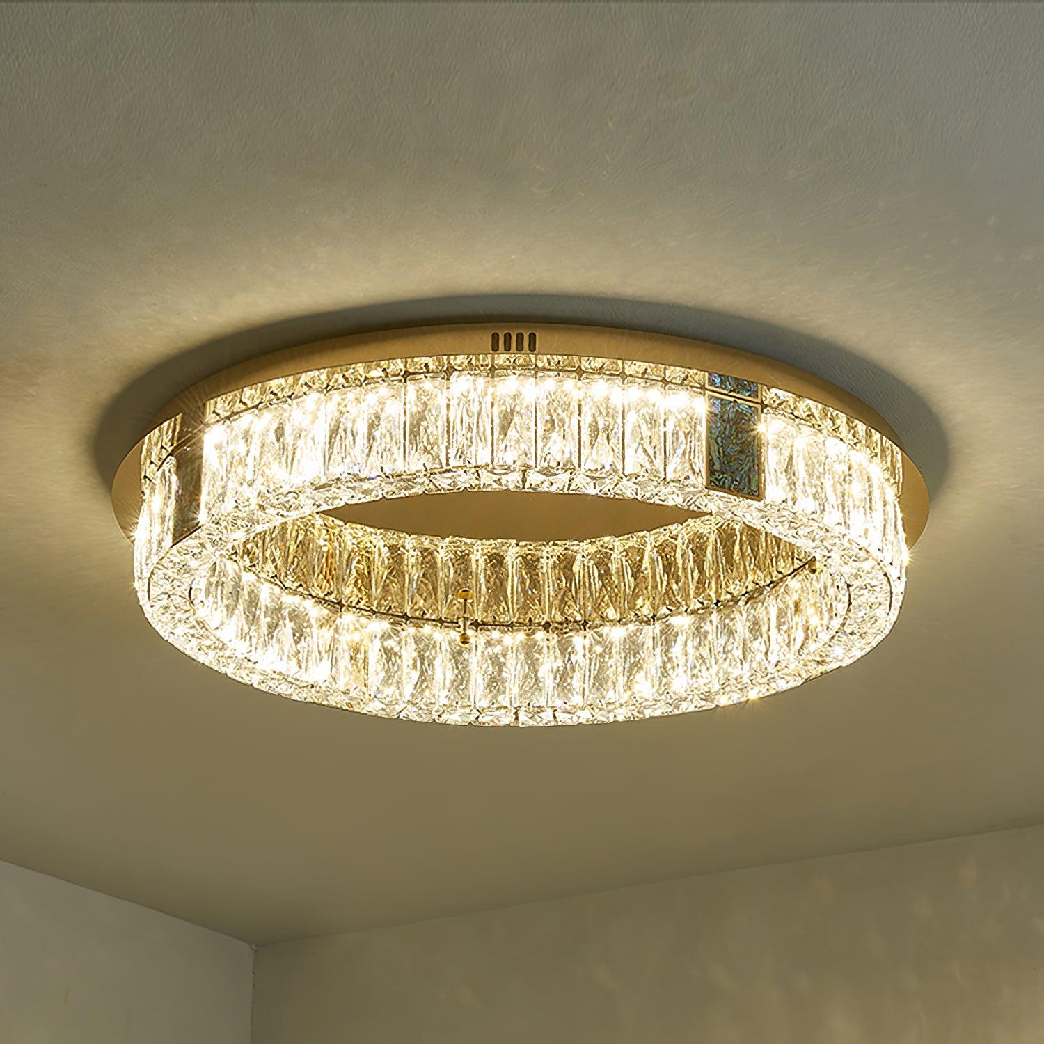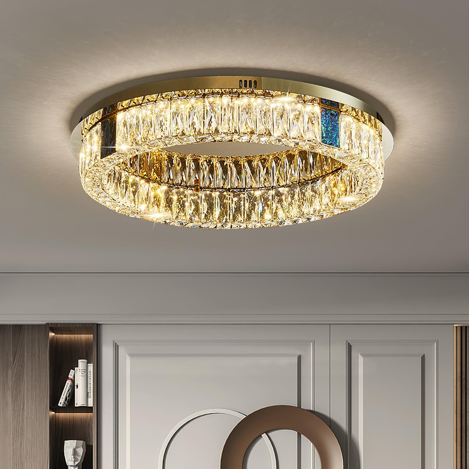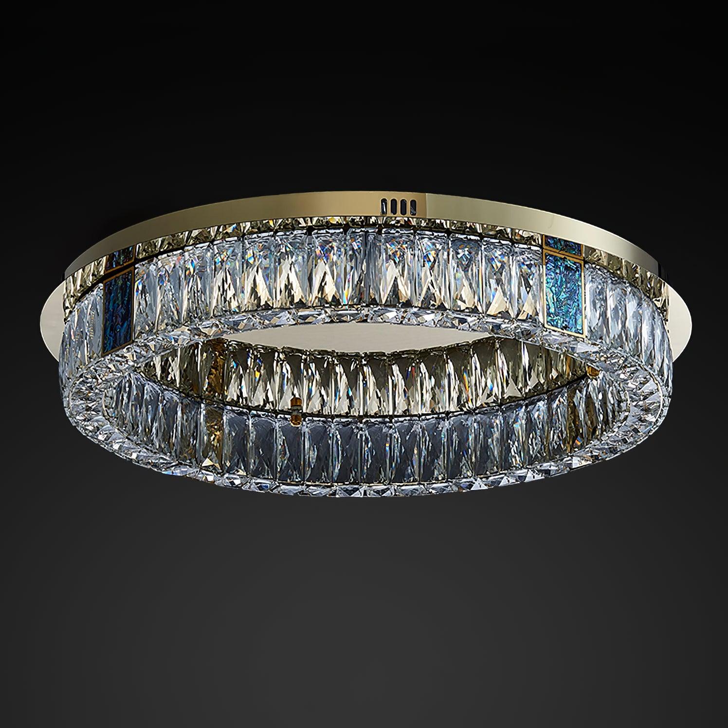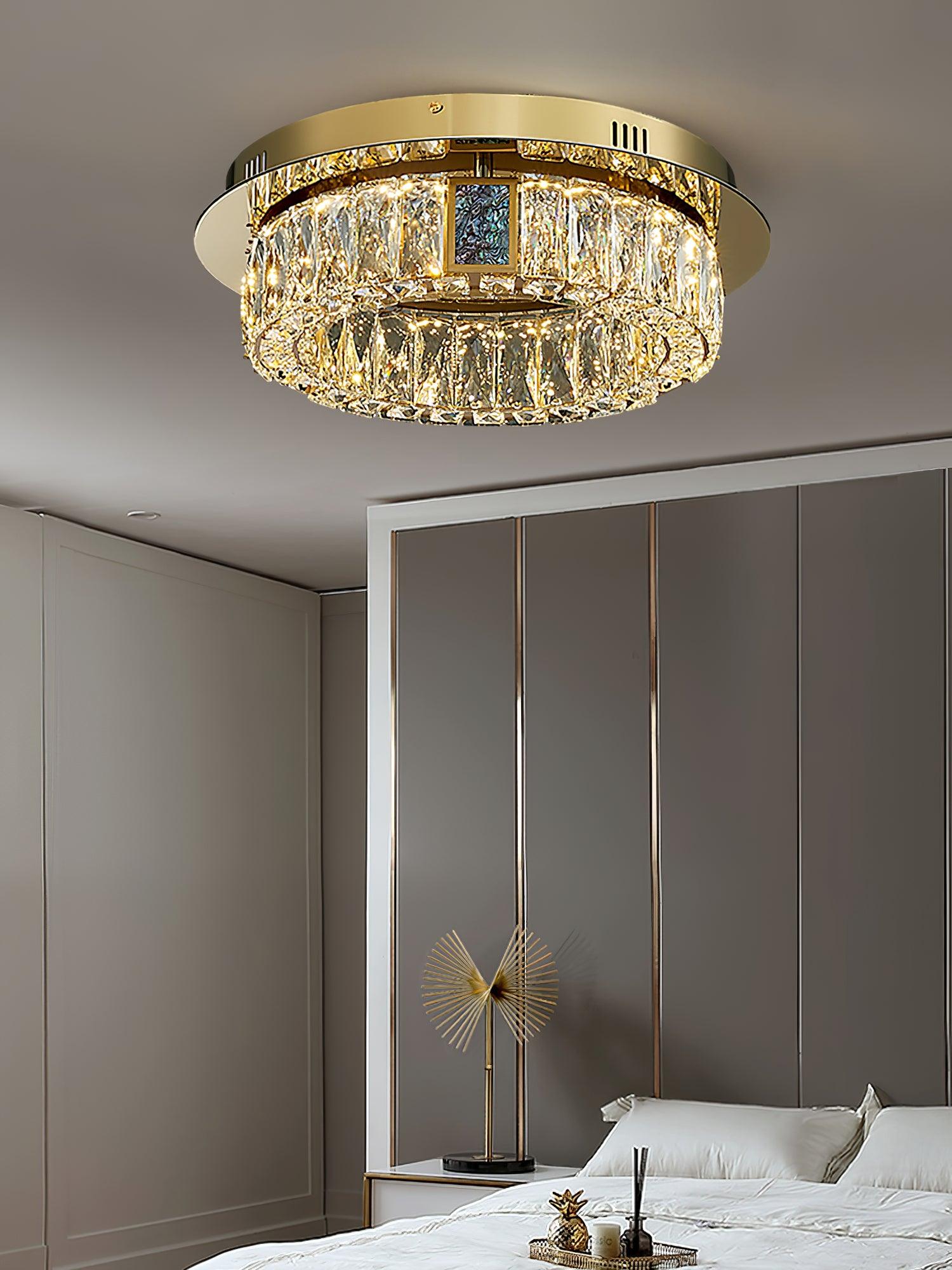 這款迷人的 Marcella 吸頂燈適用於天花板較低的新建住宅。這是我們的暢銷品 具有金色細節,並結合大矩形水晶和切割水晶鈕扣裙。大量鑲嵌在經過設計的底座上的水晶從各個角度都散發出精緻的光芒。