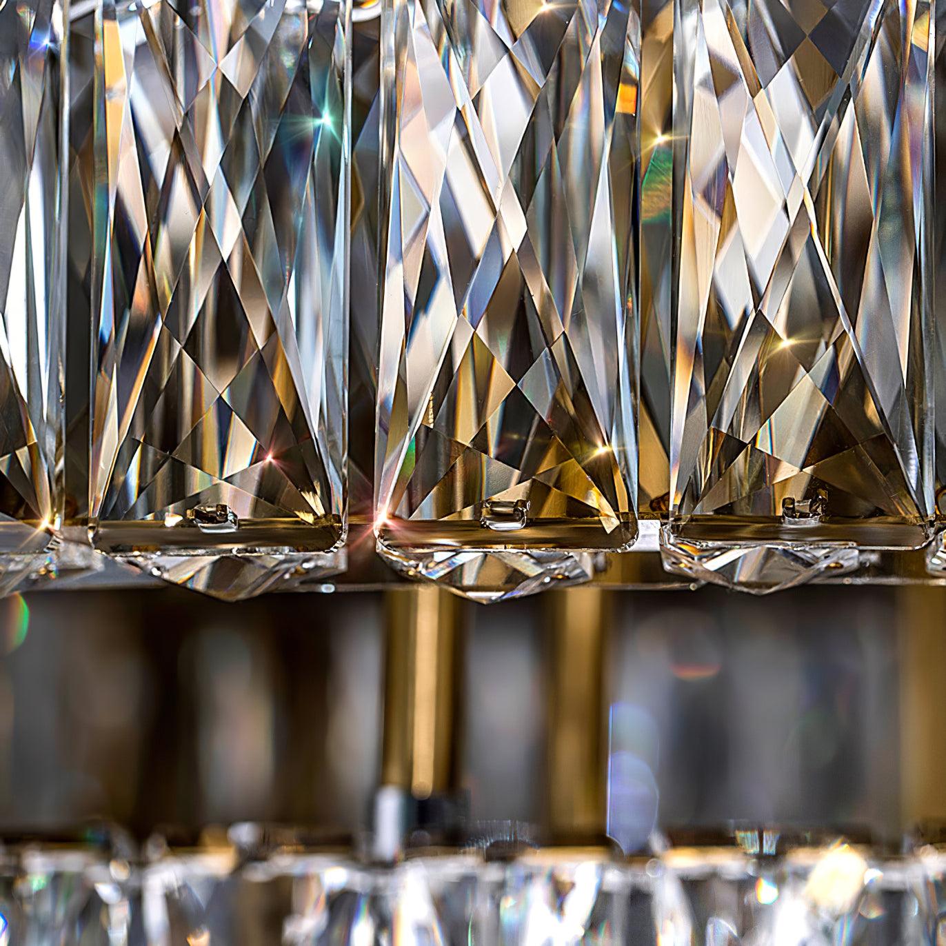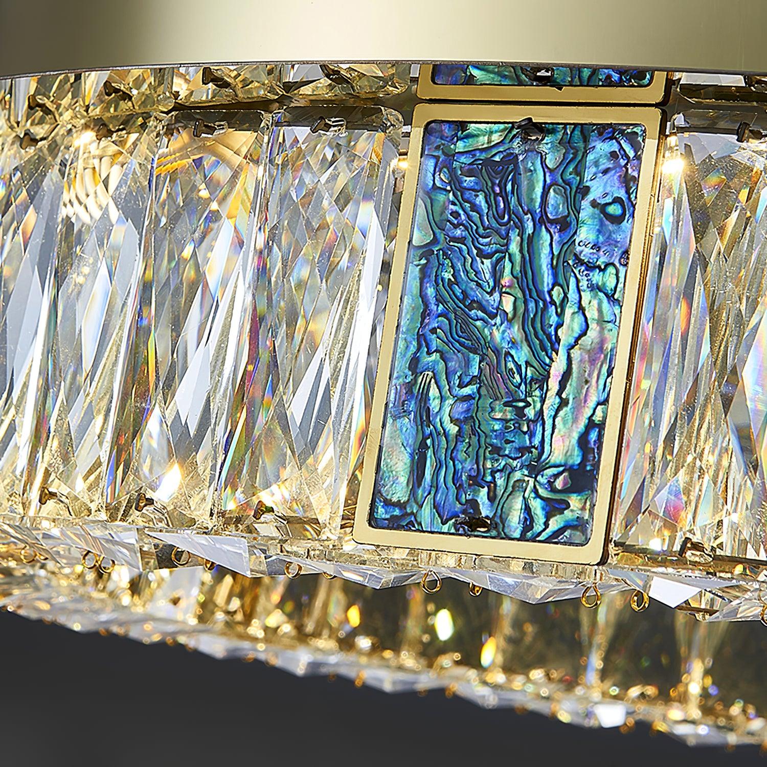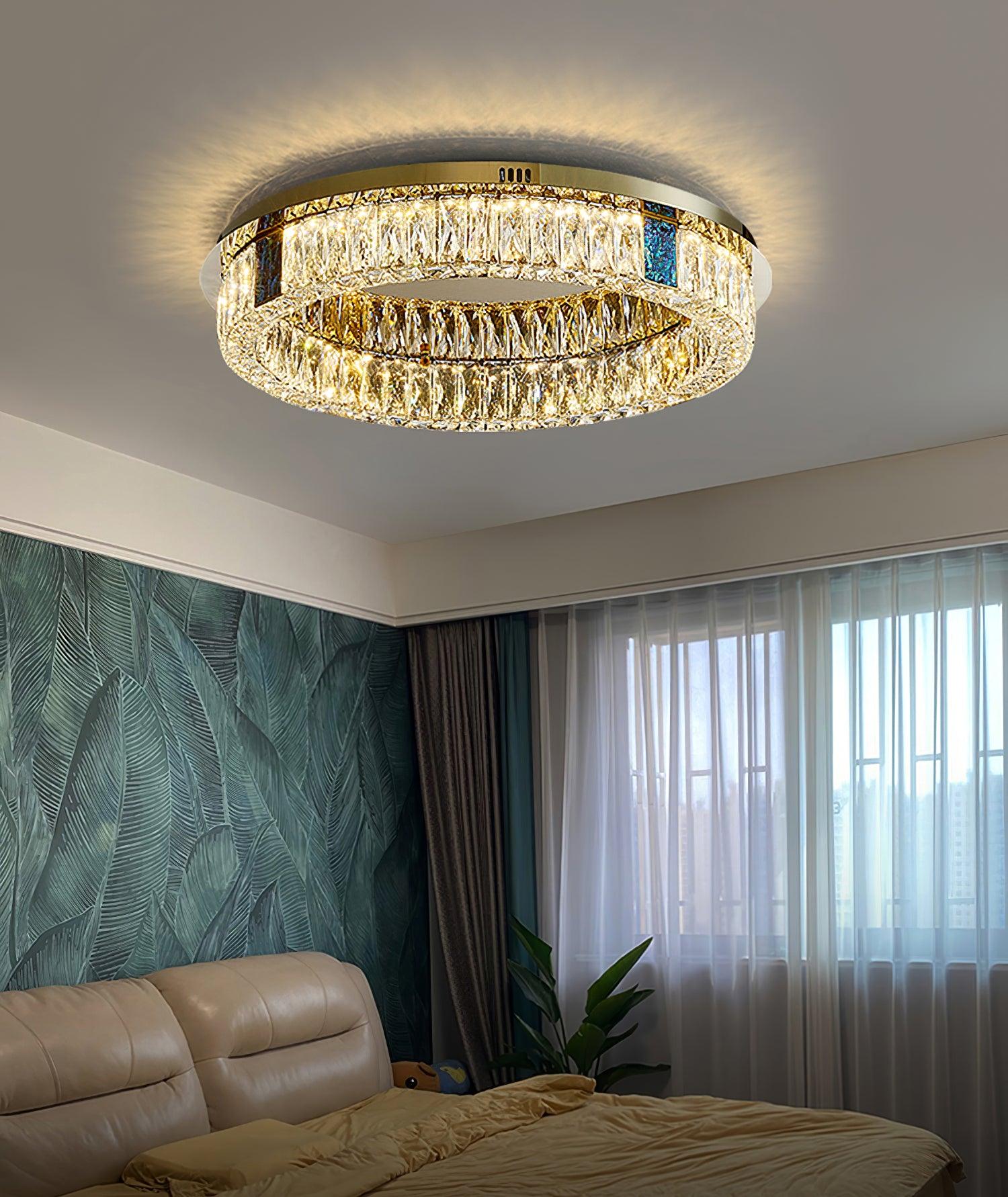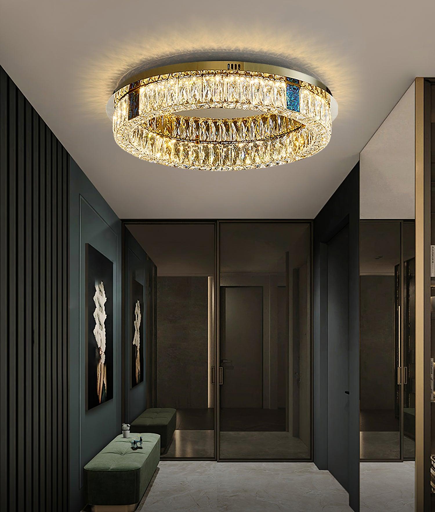 這款迷人的 Marcella 吸頂燈適用於天花板較低的新建住宅。這是我們的暢銷品 具有金色細節,並結合大矩形水晶和切割水晶鈕扣裙。大量鑲嵌在經過設計的底座上的水晶從各個角度都散發出精緻的光芒。