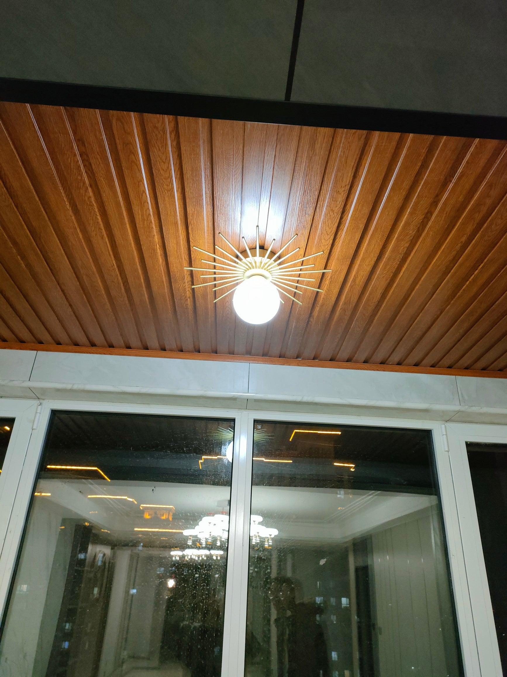 這盞燈的底座採用閃閃發光的金色飾面黃銅製成,與天花板齊平安裝,向外散發出華麗的金色燈條。圓形玻璃球經過磨砂處理,為設計增添了純粹優雅和創意的元素。這是給客人臥室的訪客留下深刻印象的完美燈具,當您在走廊上排列兩個或更多這些醒目的光源時,它看起來絕對令人嘆為觀止