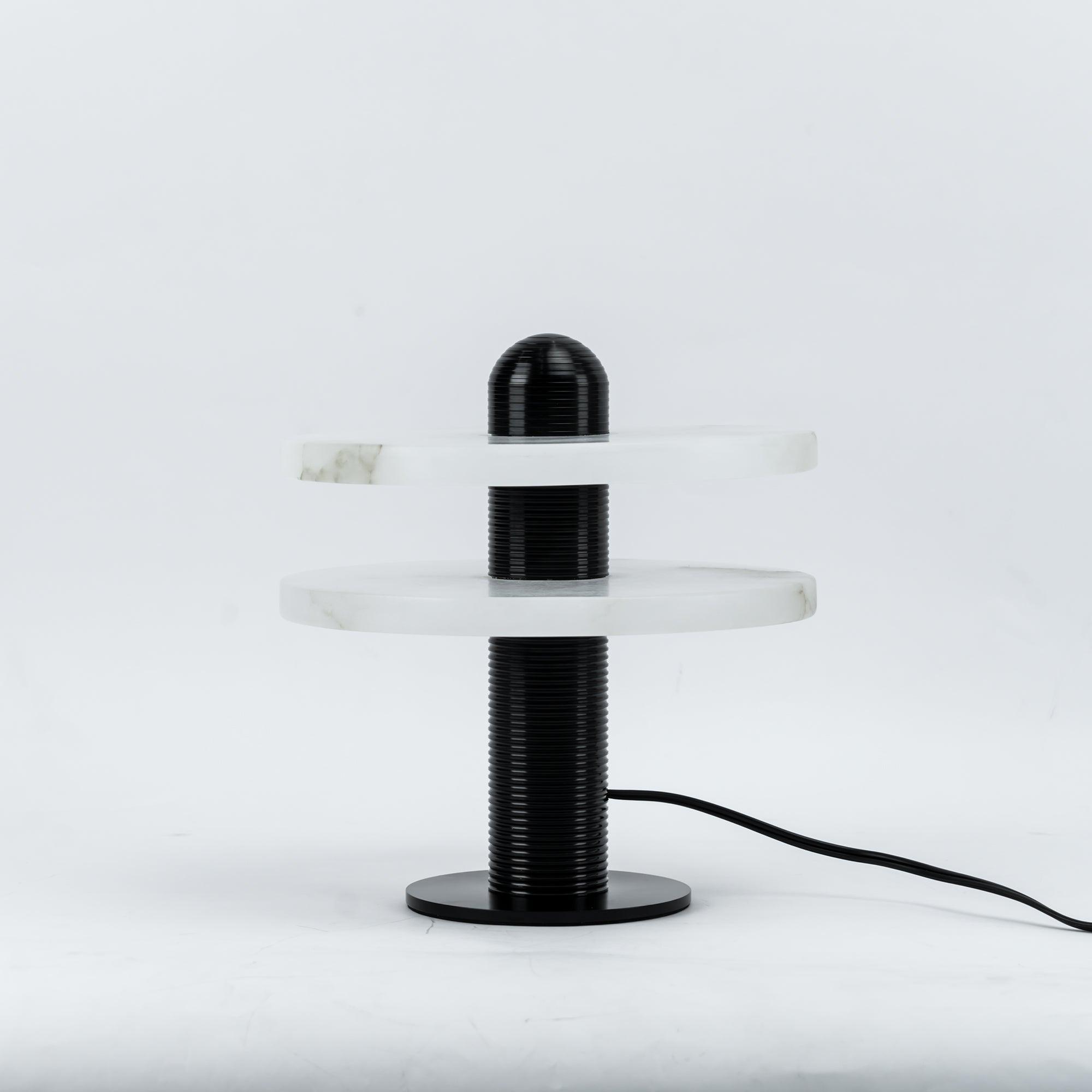 中間系列的半透明雪花石膏平面與帶凹槽的黃銅形狀相交,參考了傳統的中東珠寶,同時將其推向了未來主義的視角。石頭從保持隱藏的光源中發光,闡明了固體和可滲透性之間的關係。