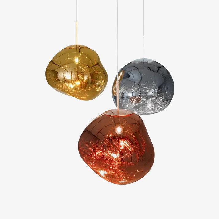 Melt 是一款精美的扭曲吊墜,採用現代銅飾面和相配的天花板玫瑰。這款吸頂燈發出迷人的輕度致幻光線,打開時會產生迷人的熔化熱吹玻璃效果,關閉時會產生鏡面效果。它發出一種有吸引力的、輕微的致幻光。熔體落地燈有銅、鉻和金三種顏色可供選擇。