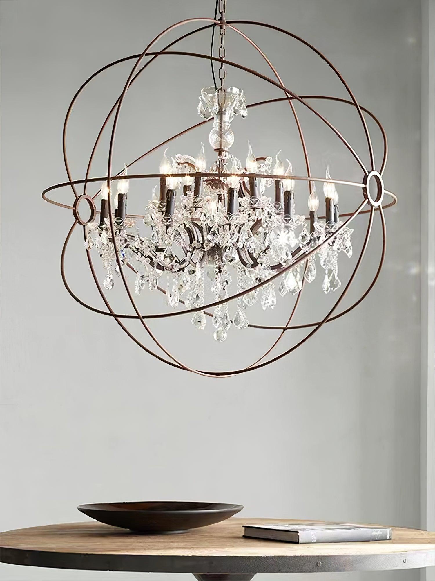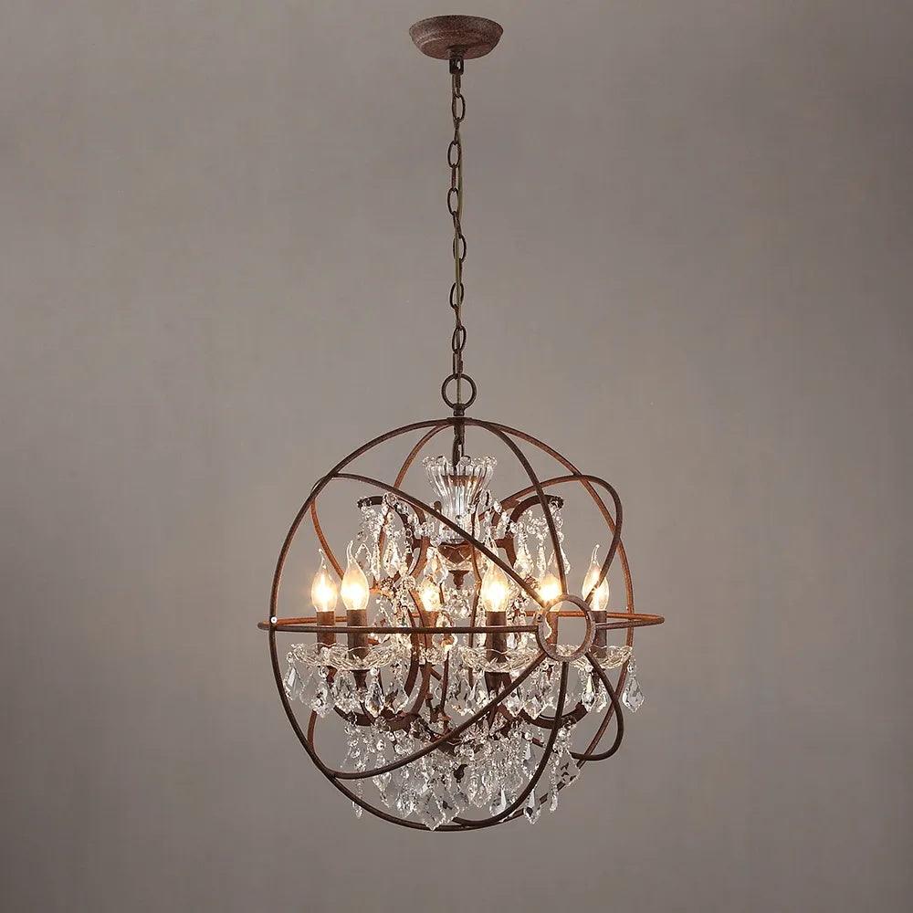 受復古發現的啟發,這款工業吊燈在每個細節上都獨一無二。工業別緻風格的生鏽金屬球體環繞著優雅的渦旋結構,在中央顯示屏上容納六個無遮光燈泡。水晶串提供了所需的閃耀和魅力,並增添了質樸的氣息。無論是否是工業愛好者,它都能讓您的家煥然一新。