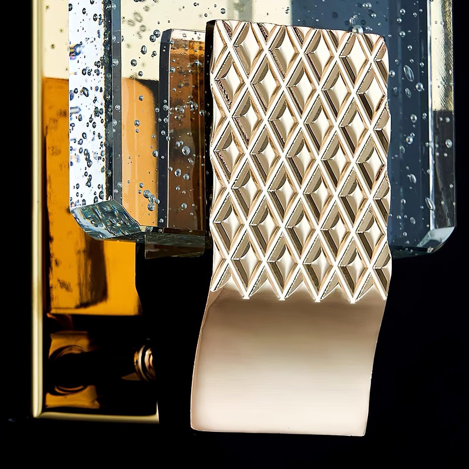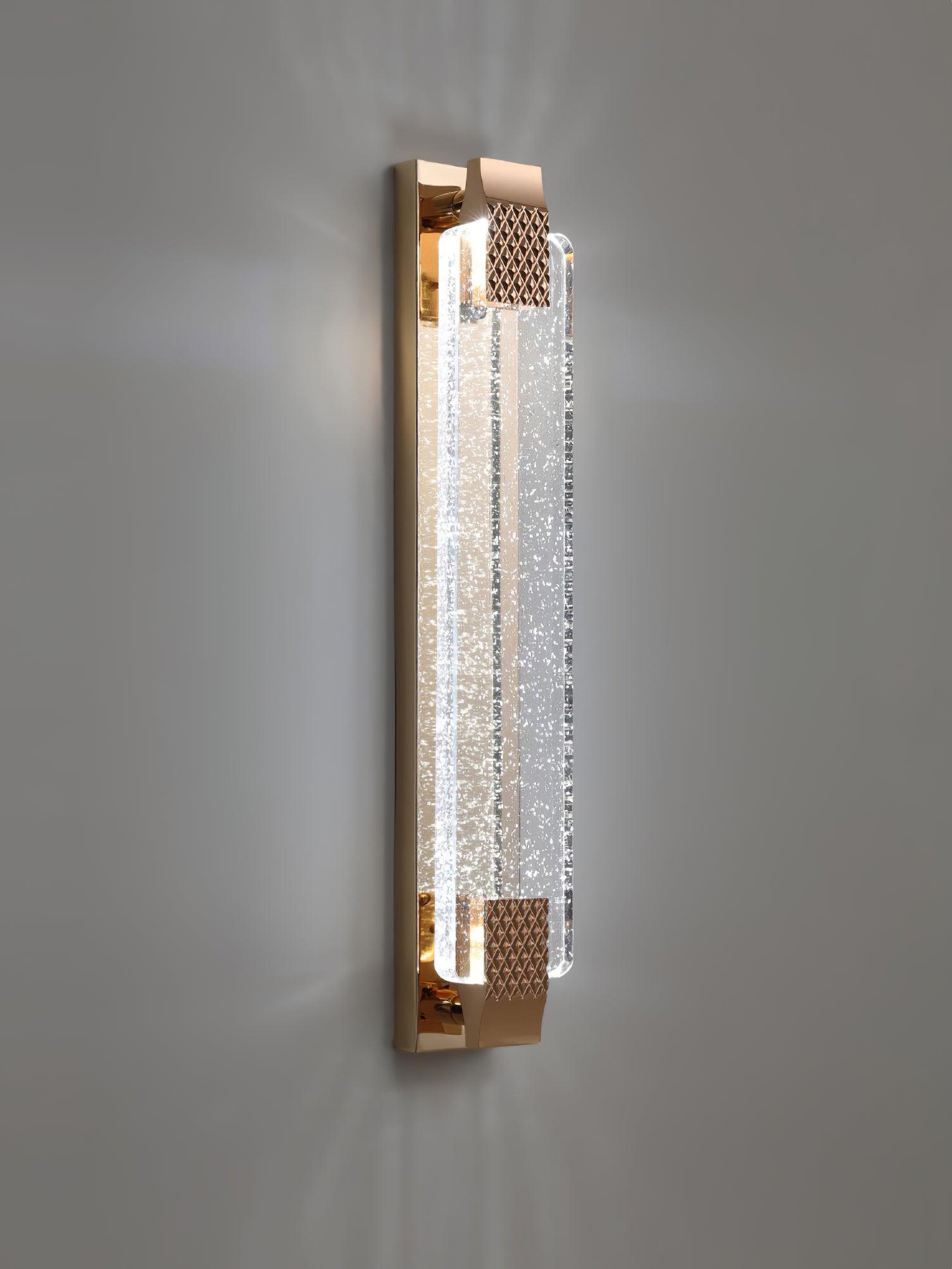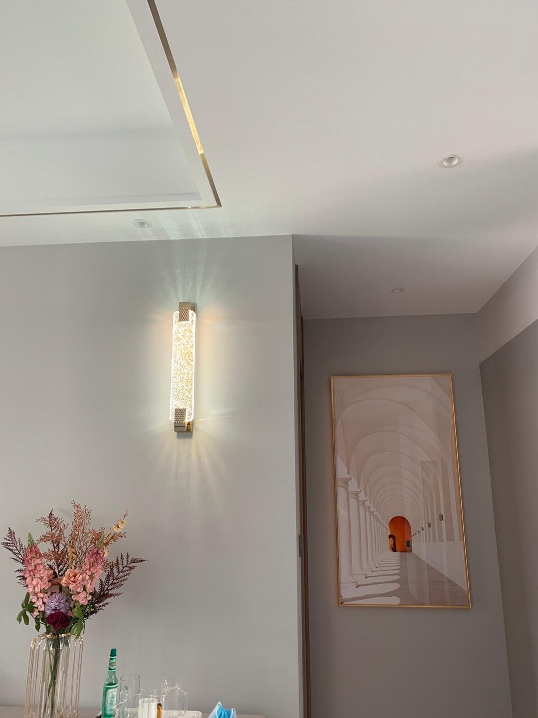 這種透明的裝飾玻璃處理在玫瑰金背板上感覺就像融化的冰。這款壁燈有兩種尺寸。它們可以放置在房子的任何房間,垂直或水平懸掛。