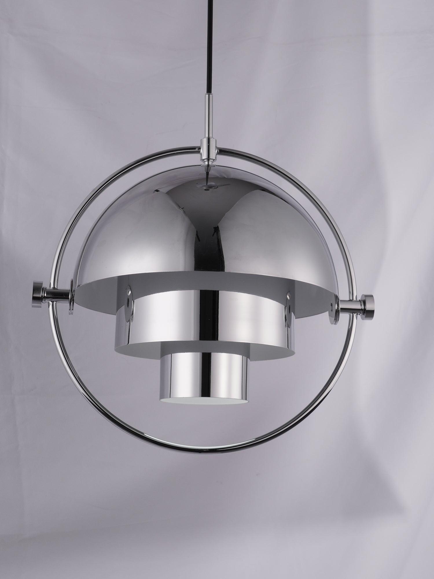 1972 年的 Multi-Lite 吊燈。設計的特點是獨特而俏皮的燈罩,反映了 Weisdorf 對多功能性的熱情:燈的底座由三個基本形狀組成 - 兩個不可移動的圓柱體和一個半球體 - 由一個薄環構成。是什麼讓它與眾不同?半球分為兩部分,因此兩半都是可移動的,邀請您玩轉形狀和光線。
