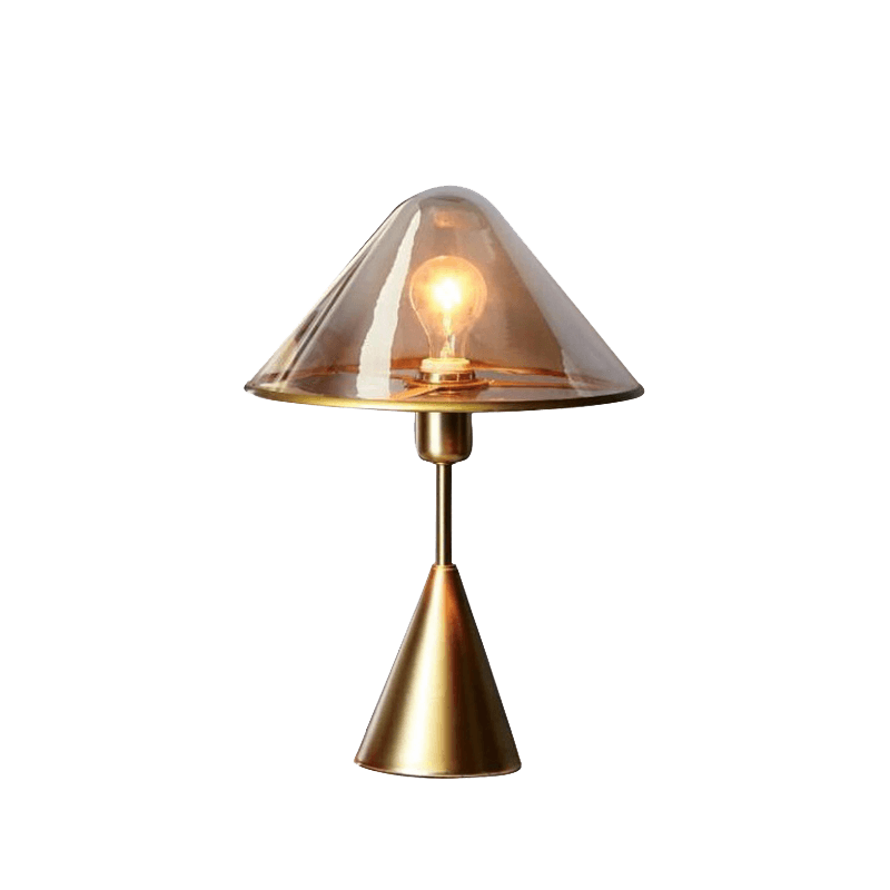 檯燈只是一種由玻璃和鋼製成的現代檯燈的黃銅色之美。它是適合任何工作空間的完美現代照明。