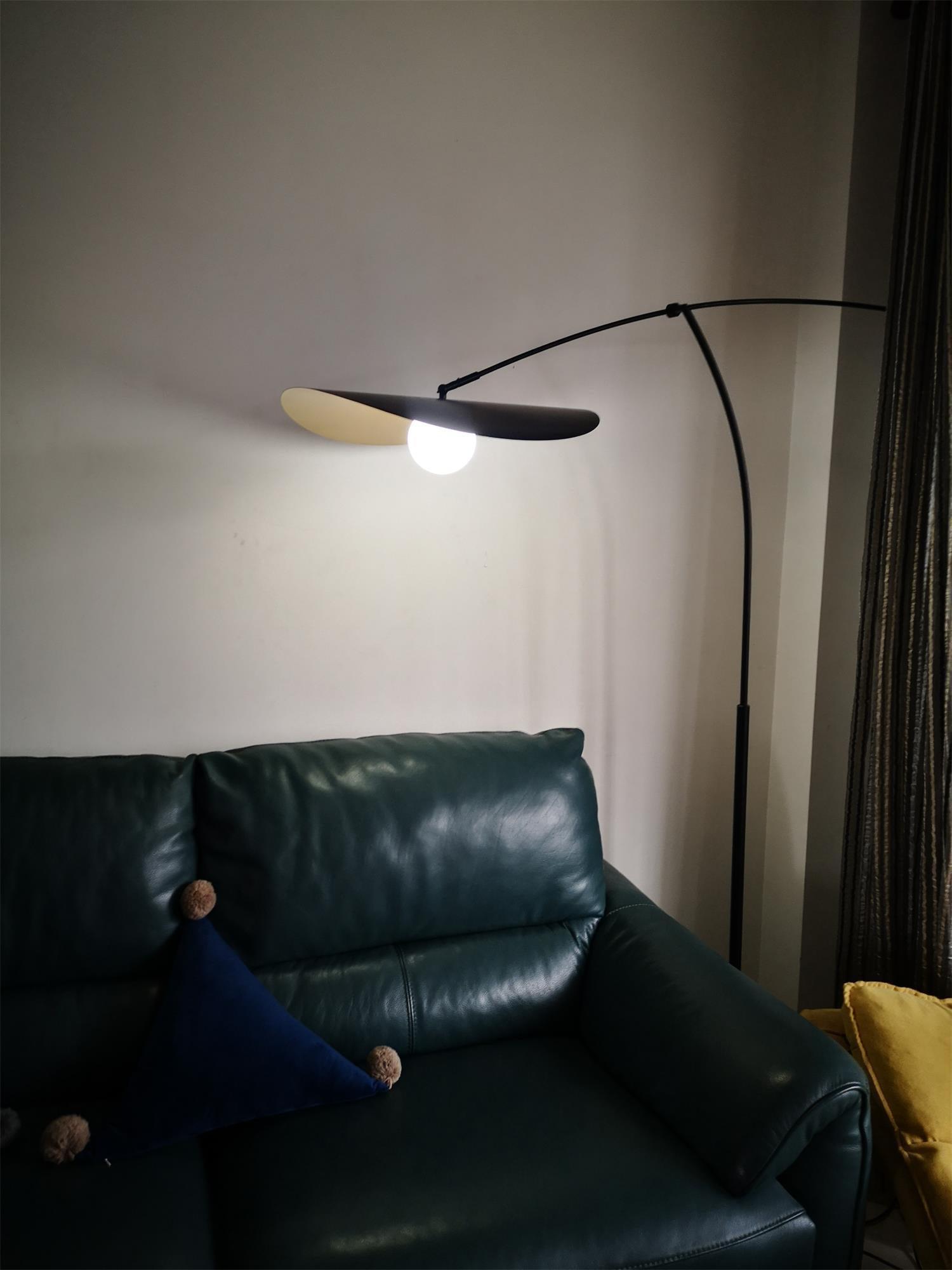Myrna 壁掛式燈是一個大型燈光雕塑,懸掛在牆上,並在鉸接式可調節臂上小心平衡。窗簾的高度可以簡單地通過沿著臂移動圓形配重來調整。該燈的大型穿孔反射燈罩和手工吹製的玻璃球體營造出柔和的光線和柔和的陰影,從而在燈周圍營造出微觀環境。