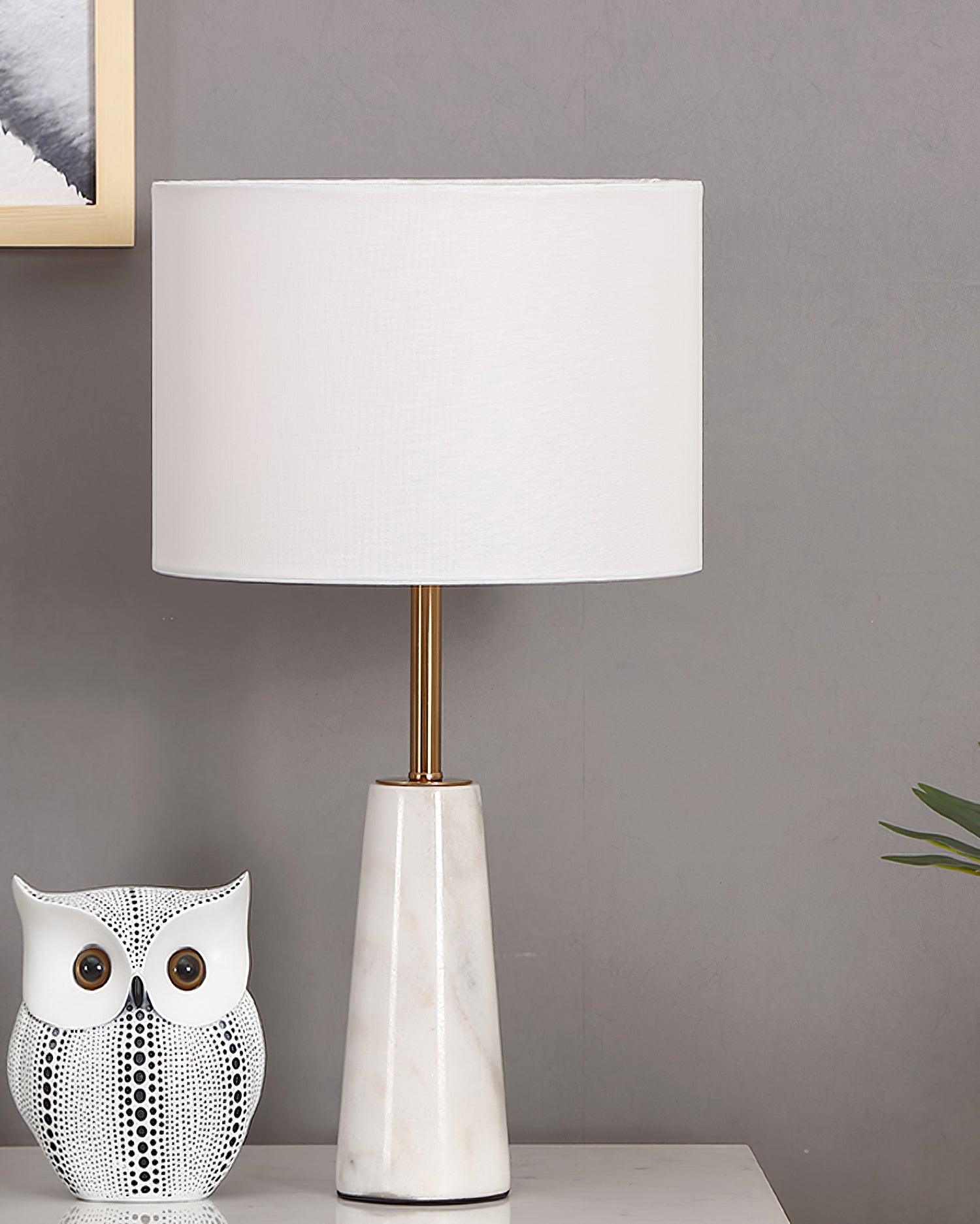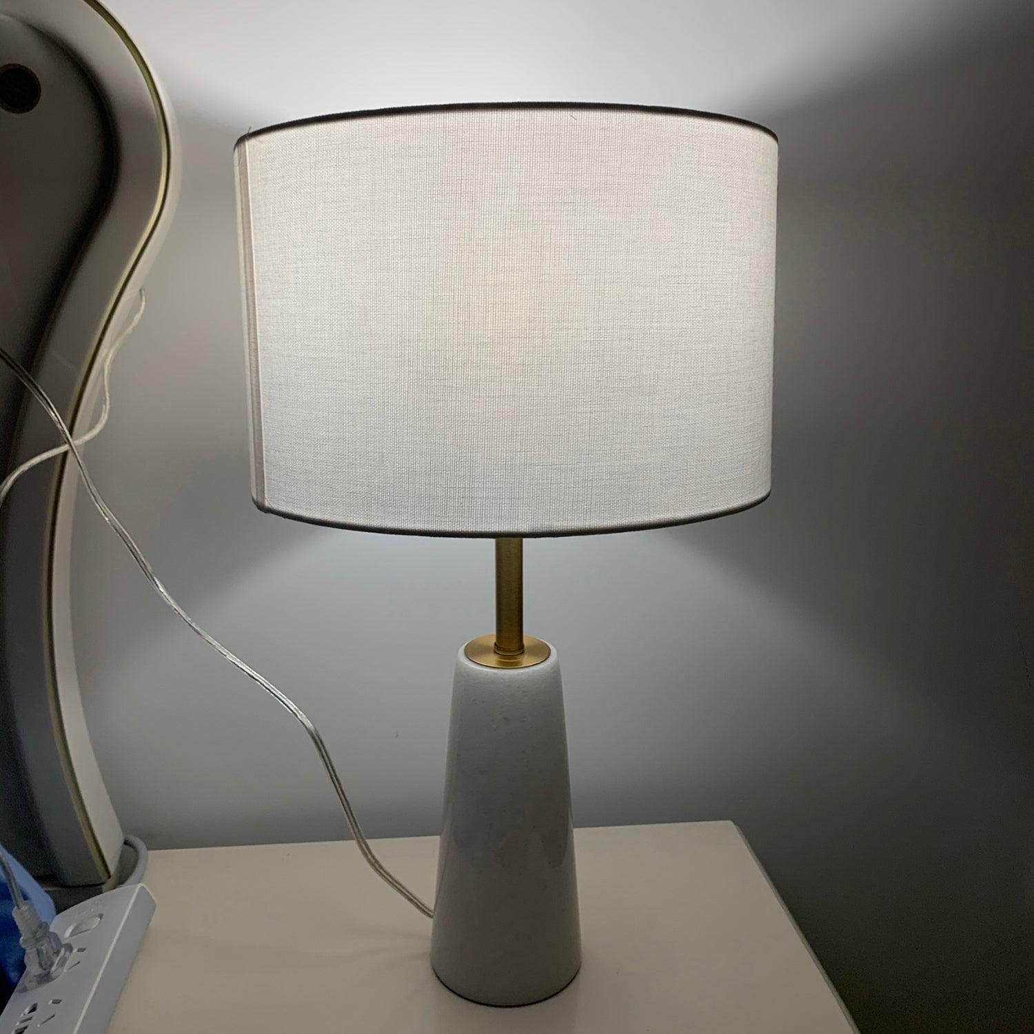 這款檯燈洋溢著優雅,以時尚的風格解決了照明問題。這款燈的精緻設計採用白色大理石底座、金屬金屬燈桿、鼓形燈罩和時尚的輪廓,在任何房間都是引人注目的特色。