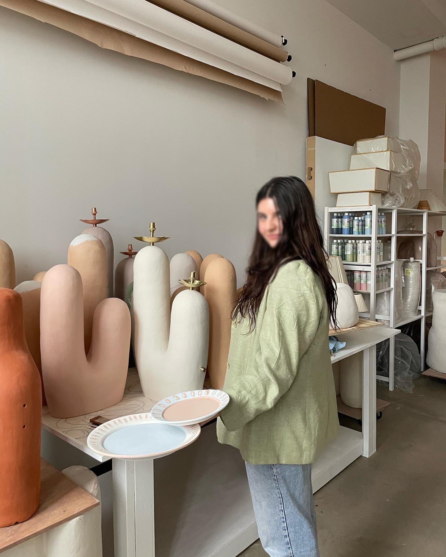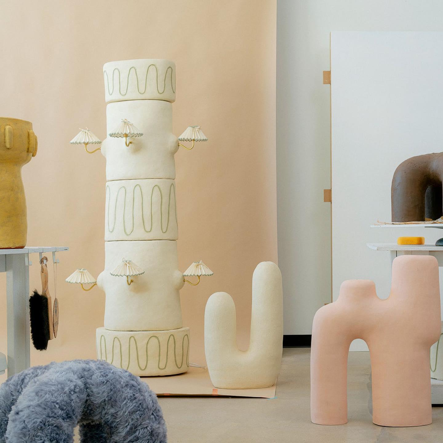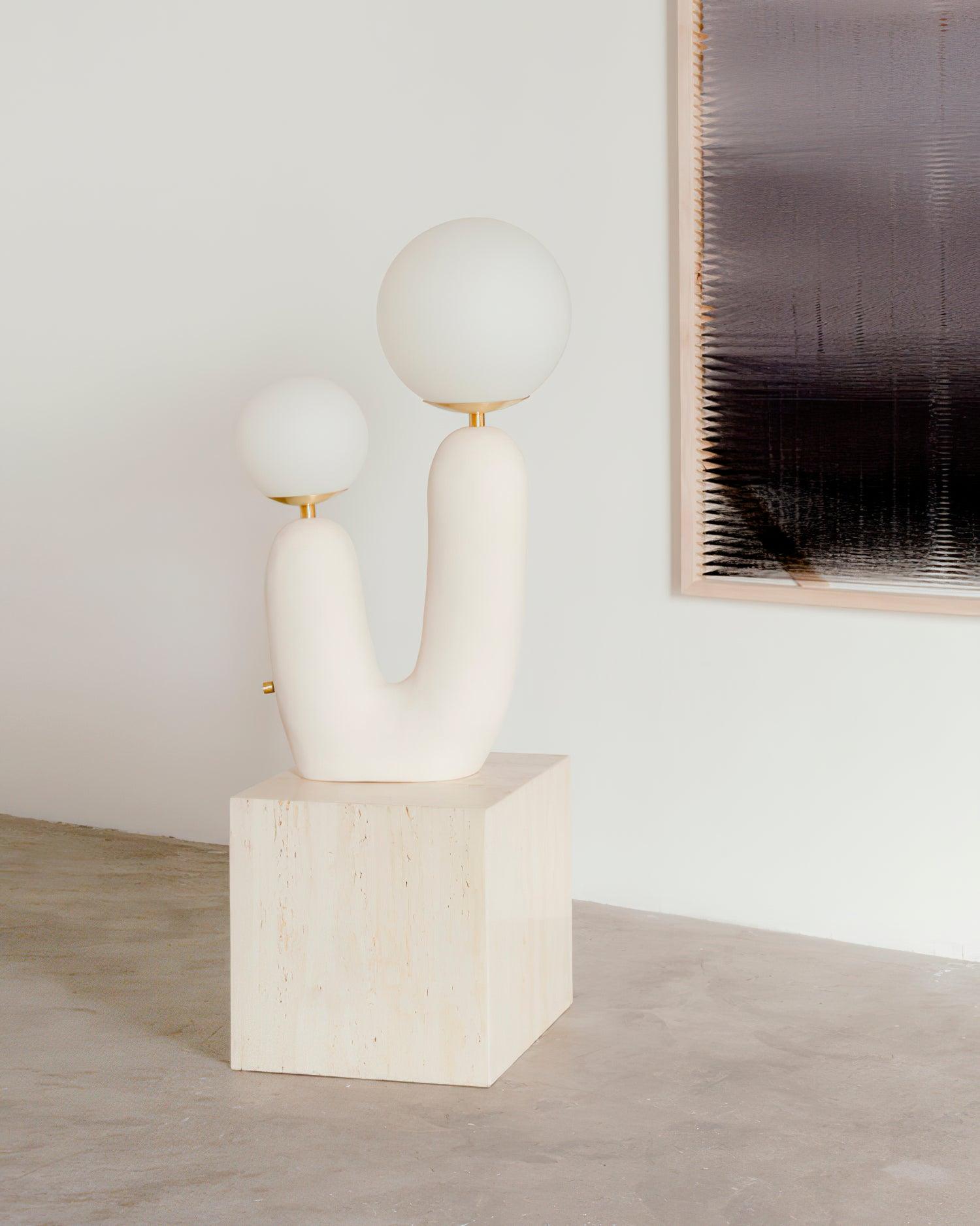 作為 First Hand Collection 的一部分,Oo Lamps 於 2018 年在國際當代家具展上首次亮相。這個陶瓷底座是手工打造的,帶有銅質細節,包括底部的調光盤。