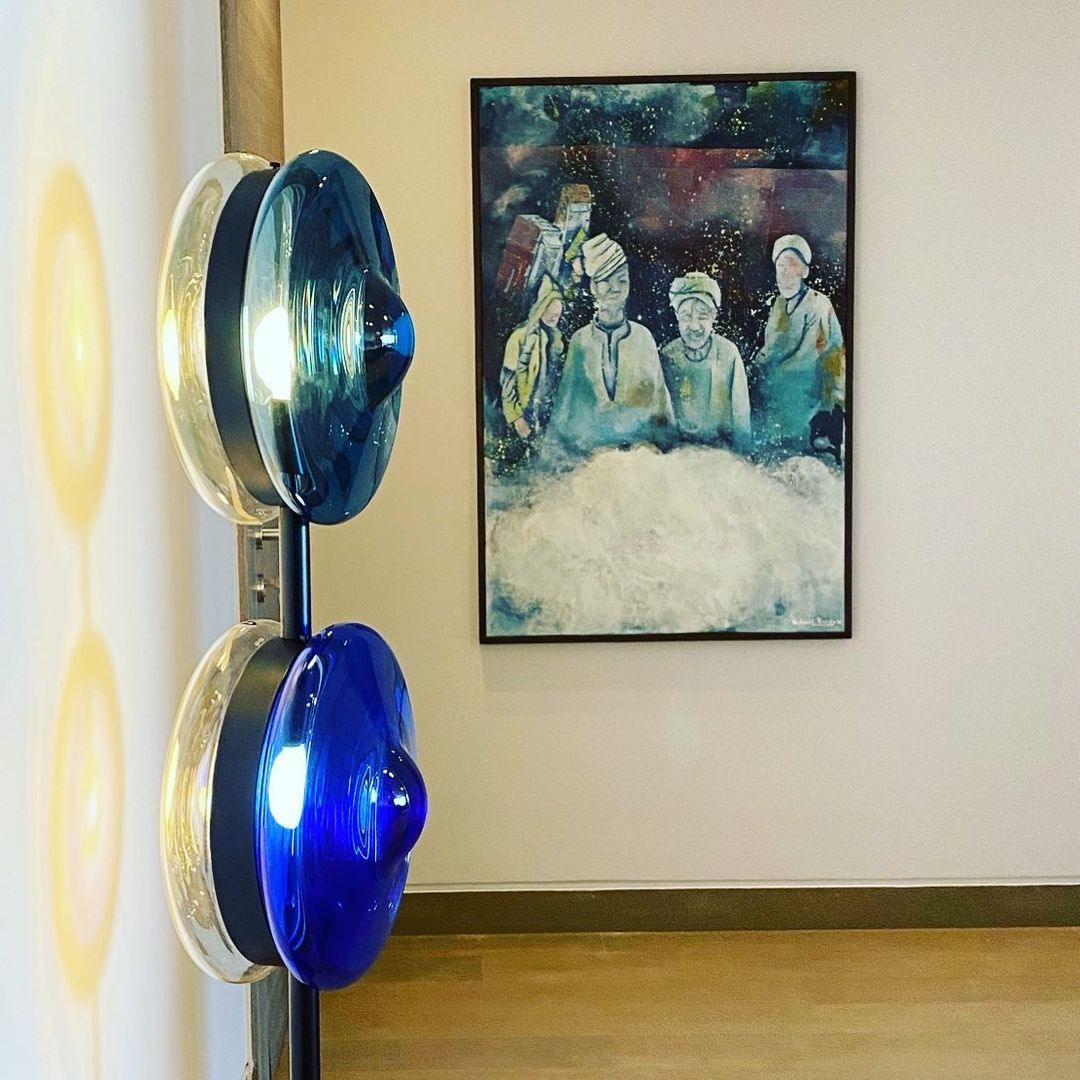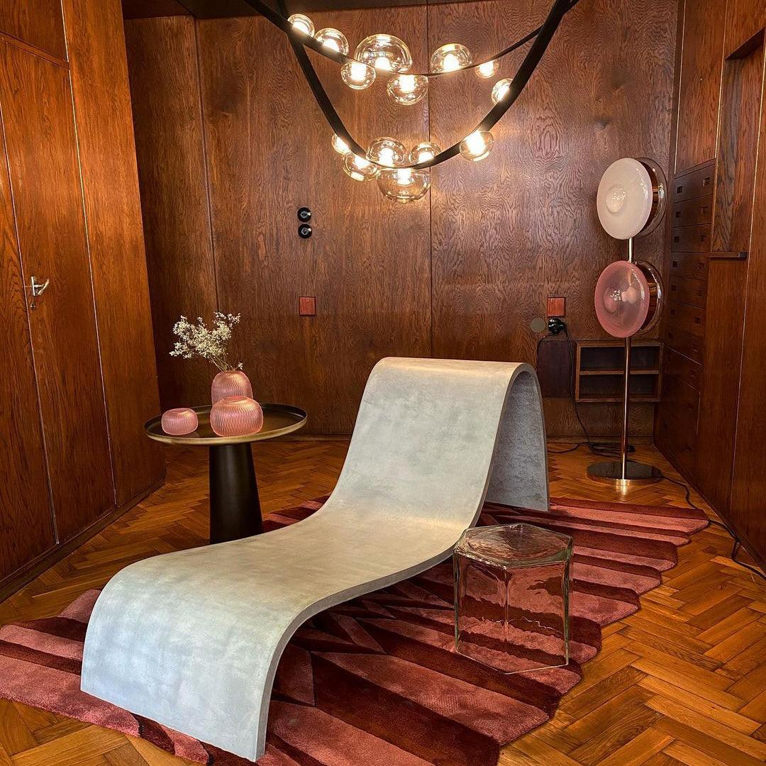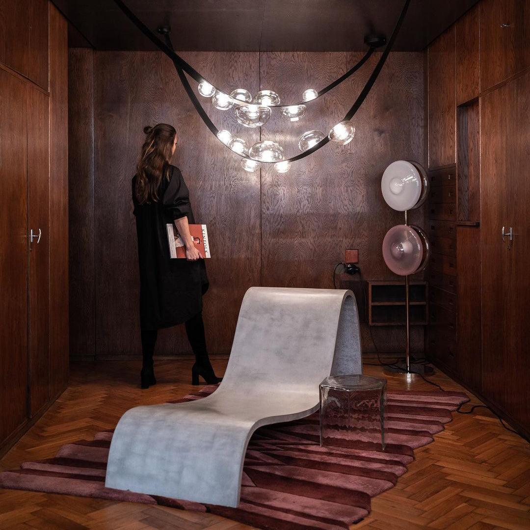軌道追踪五顏六色的天體的路徑,這些天體發出催眠般的熾熱核心。這種巧妙的口吹玻璃鏡片設計,由金屬支架固定在一起,從許多不同的角度創造出迷人的視覺體驗。我們獨特的月光透明、柔和的粉紅色、海藍色和神秘的黑色照明對象為任何精緻的室內裝飾增添了真正神奇的氛圍。