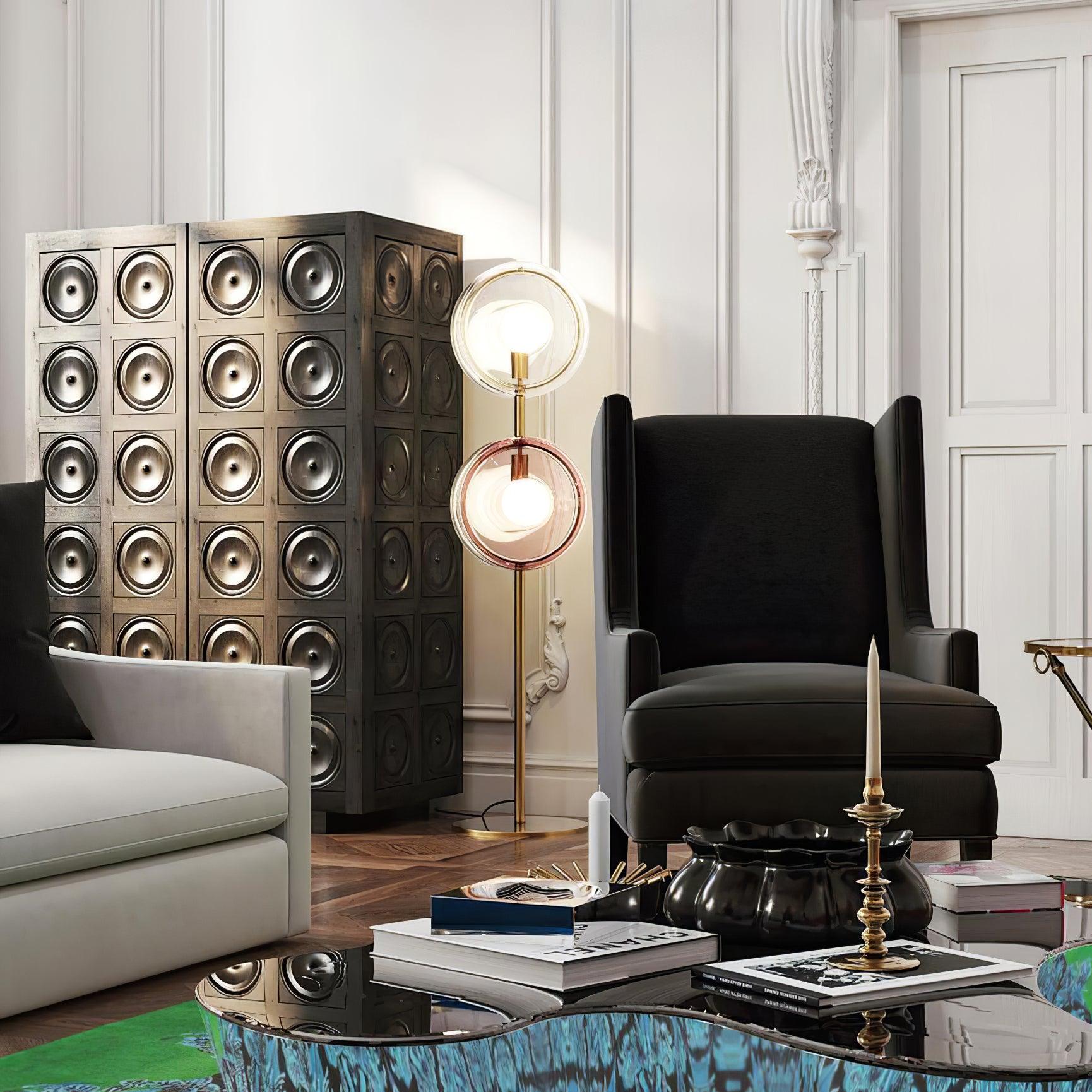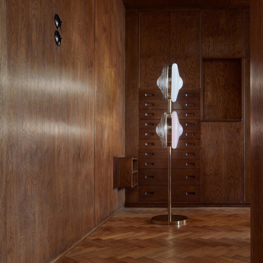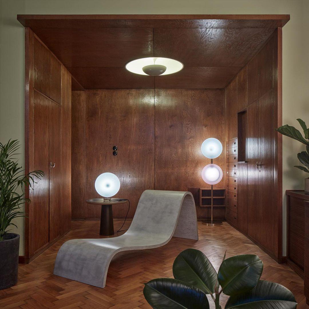 軌道追踪五顏六色的天體的路徑,這些天體發出催眠般的熾熱核心。這種巧妙的口吹玻璃鏡片設計,由金屬支架固定在一起,從許多不同的角度創造出迷人的視覺體驗。我們獨特的月光透明、柔和的粉紅色、海藍色和神秘的黑色照明對象為任何精緻的室內裝飾增添了真正神奇的氛圍。