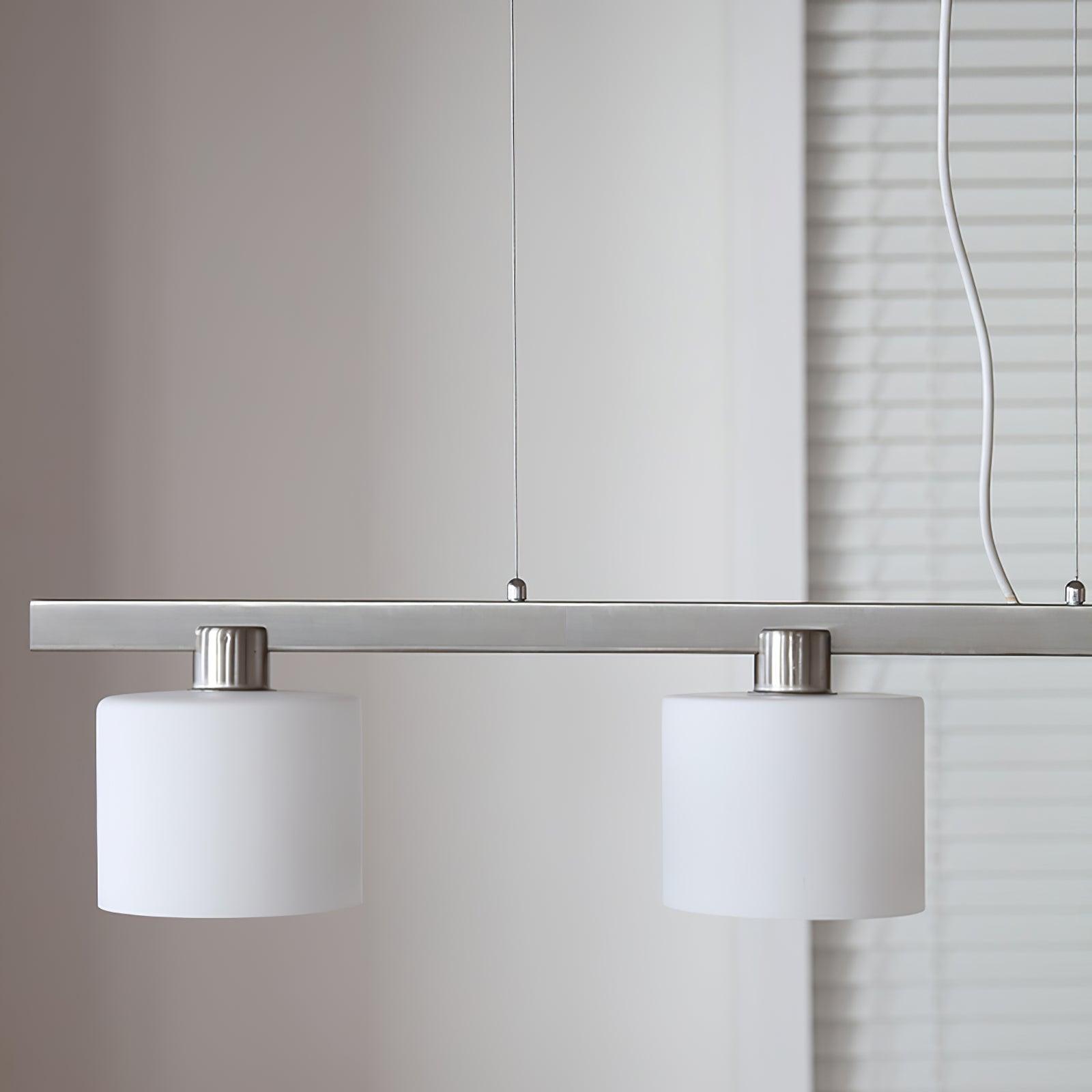 Oron 吊燈外觀時尚百搭,線條簡潔。採用鍍鉻飾面,經久耐用,可調節設計可適應各種天花板高度,並易於按照隨附的說明進行安裝。光滑的金屬外殼與白色玻璃燈罩相得益彰,可為任何空間提供柔和的照明,尤其是廚房島上方的理想選擇。