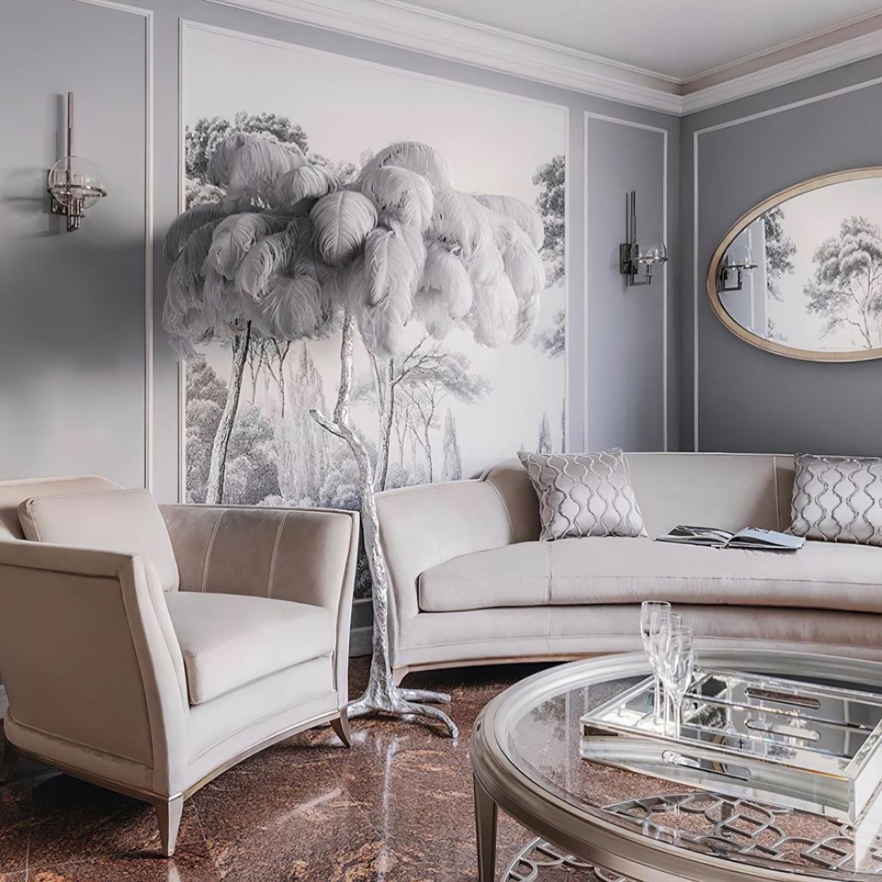 羽毛落地燈是一棵發光的棕櫚樹,精緻的鴕鳥羽毛葉子熠熠生輝,在任何豪華環境中都佔據中心位置,並為好萊塢攝政時期的裝飾帶來終極的 midas 觸感。作為立燈中的佼佼者,這款照明藝術作品以其精緻的設計和復雜的工藝吸引了人們的注意。
