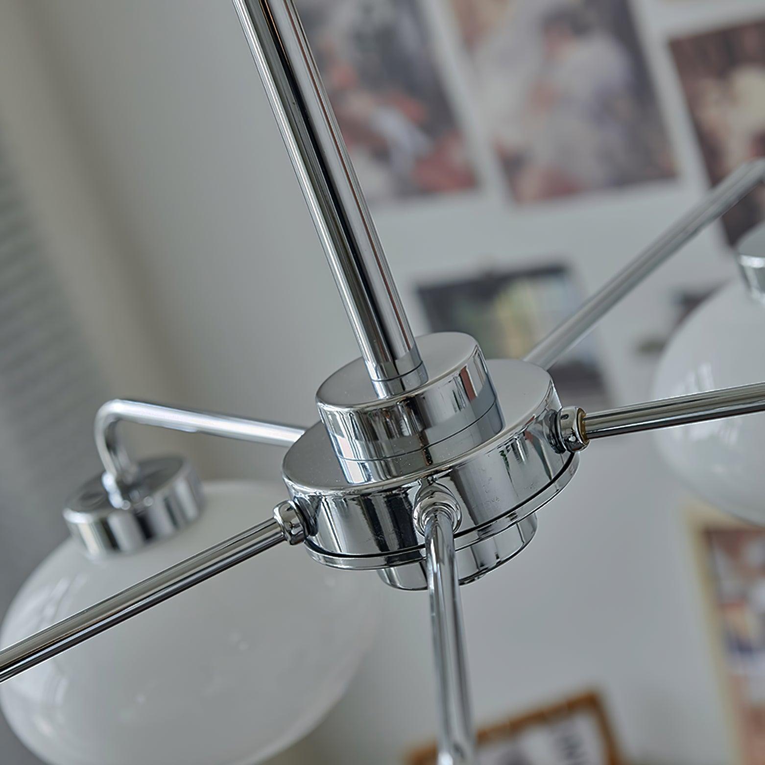 這款優雅的 1960 年代鍍鉻枝形吊燈具有經典的外觀和漂亮的幾何結構:它純粹、簡單,鍍鉻框架上有 5 個玻璃燈泡,發出美麗的光線。這盞枝形吊燈將提升您空間的外觀,就像掛在牆上的一件藝術品。