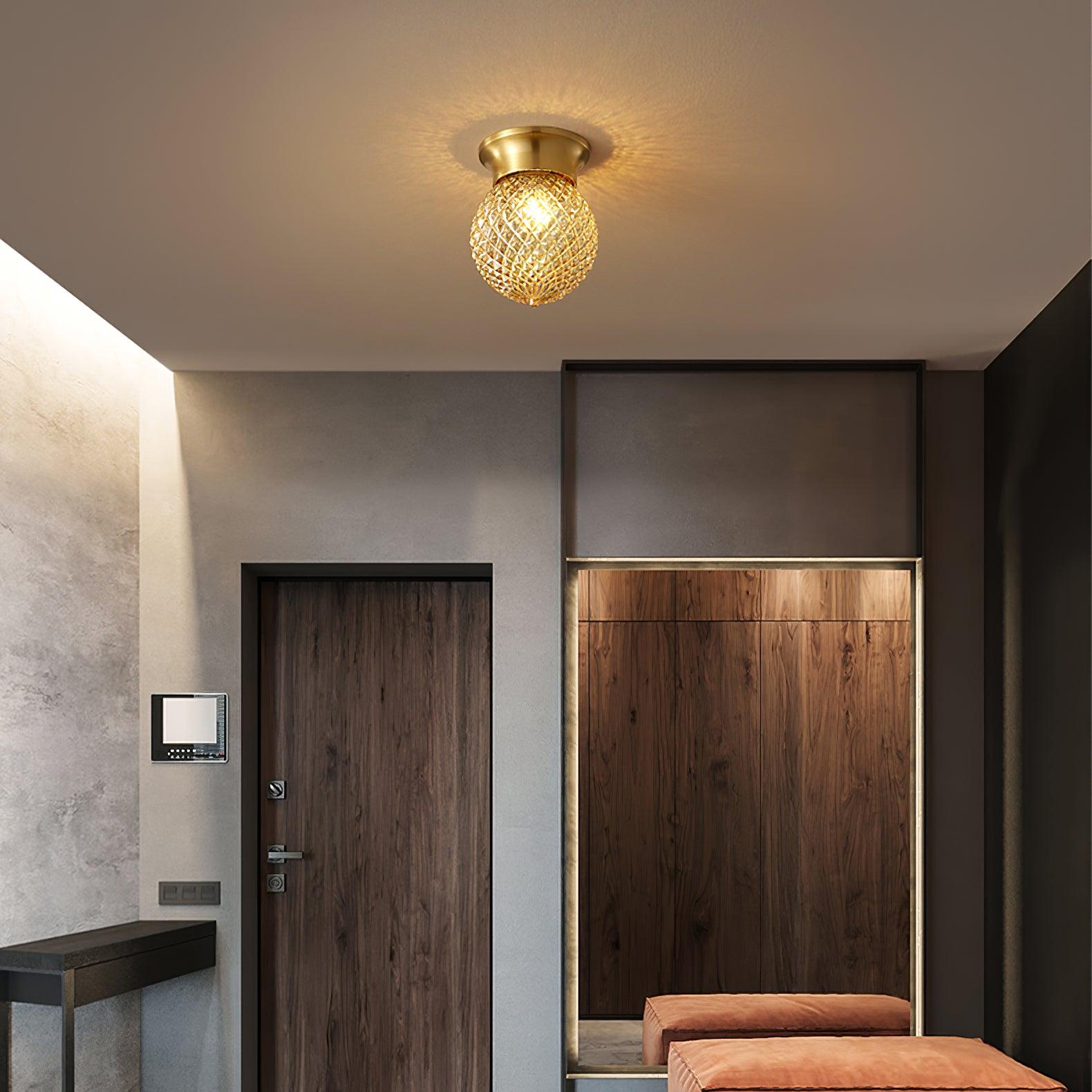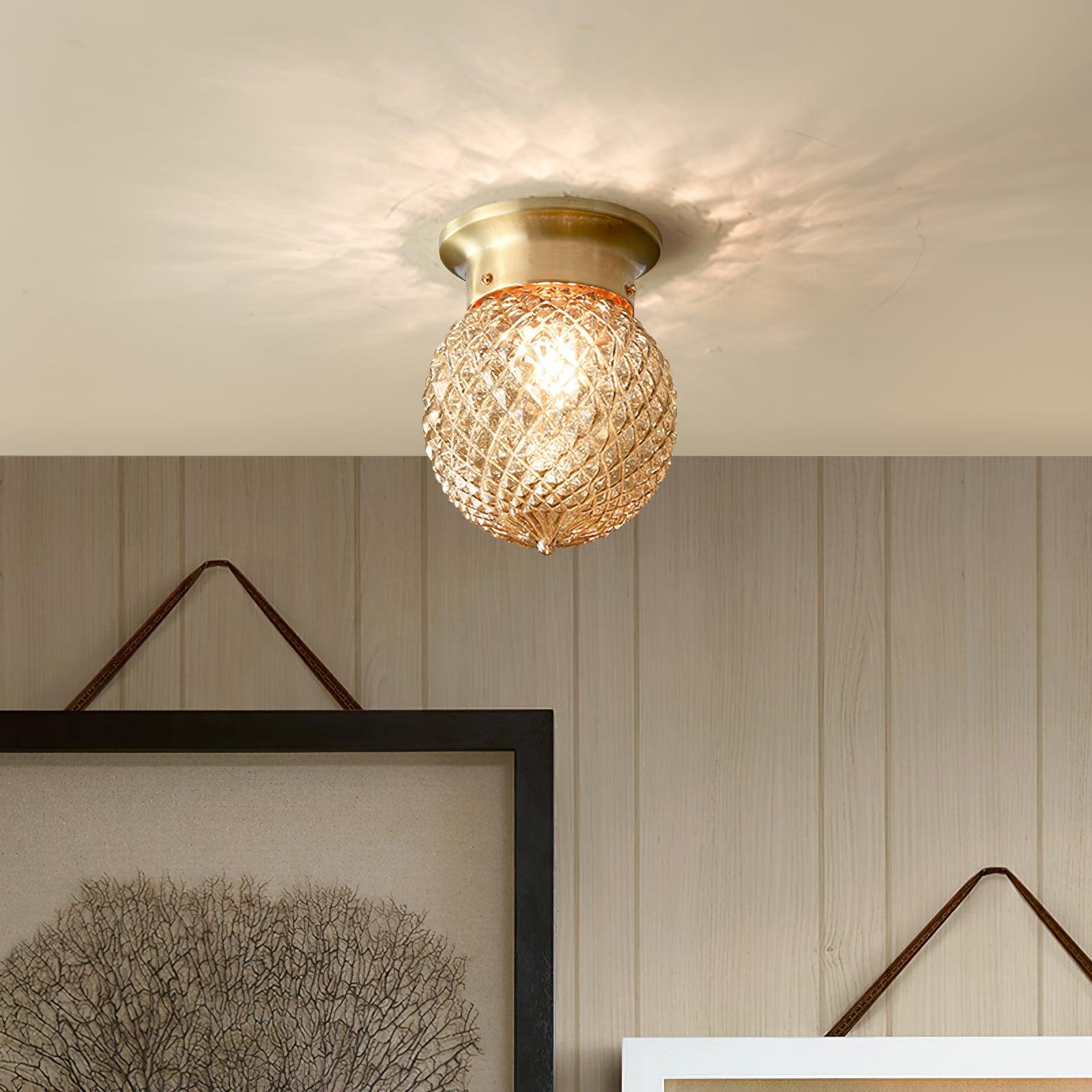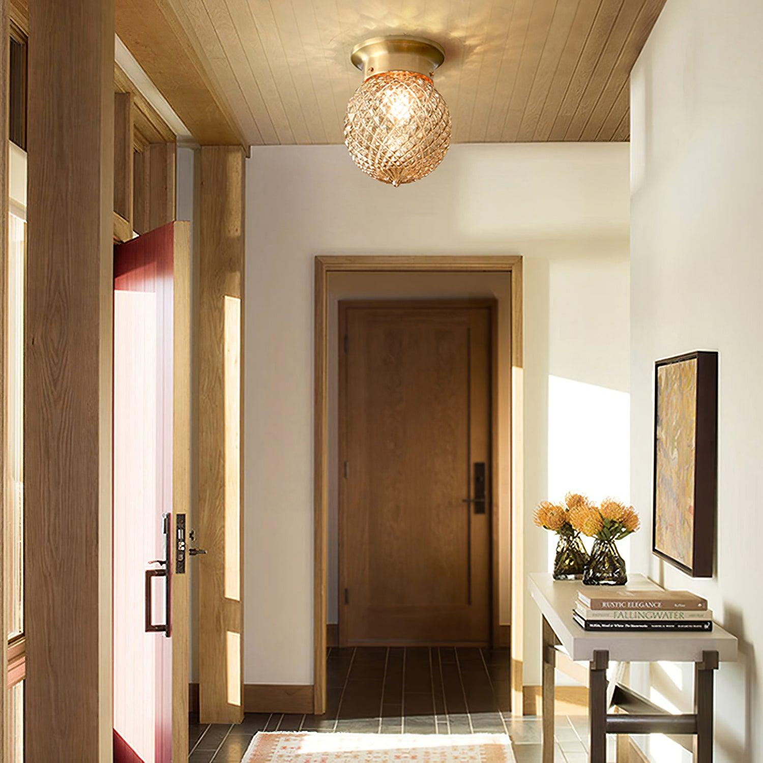 一盞迷人的小吸頂燈,由壓制玻璃製成,外觀浪漫。該模型的靈感來自過去。壓制玻璃早在 1830 年代就傳入中國,至今仍很受歡迎。古董黃銅配件與燈的風格完美匹配。
