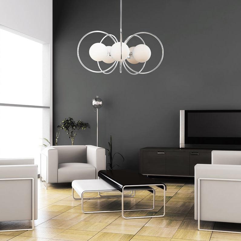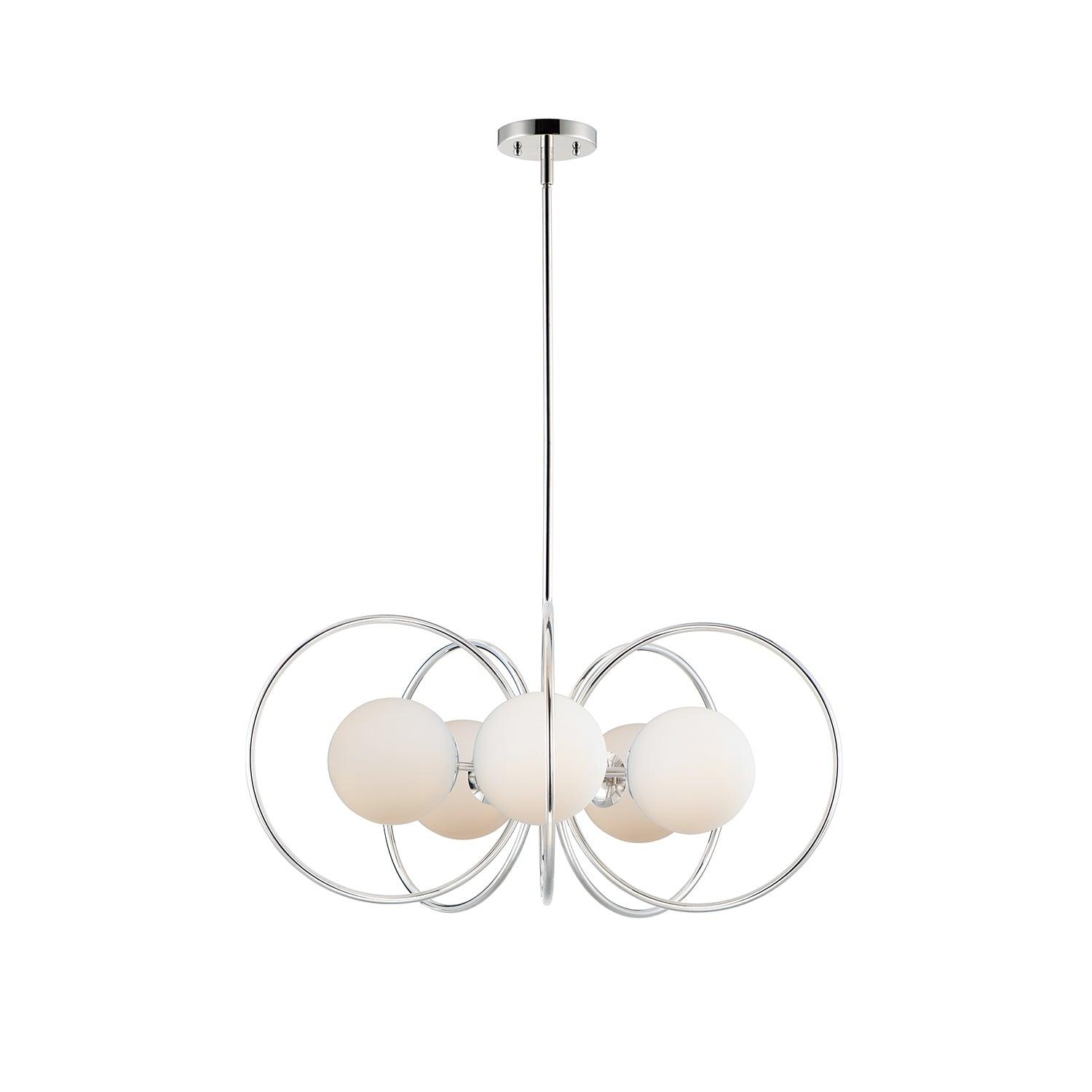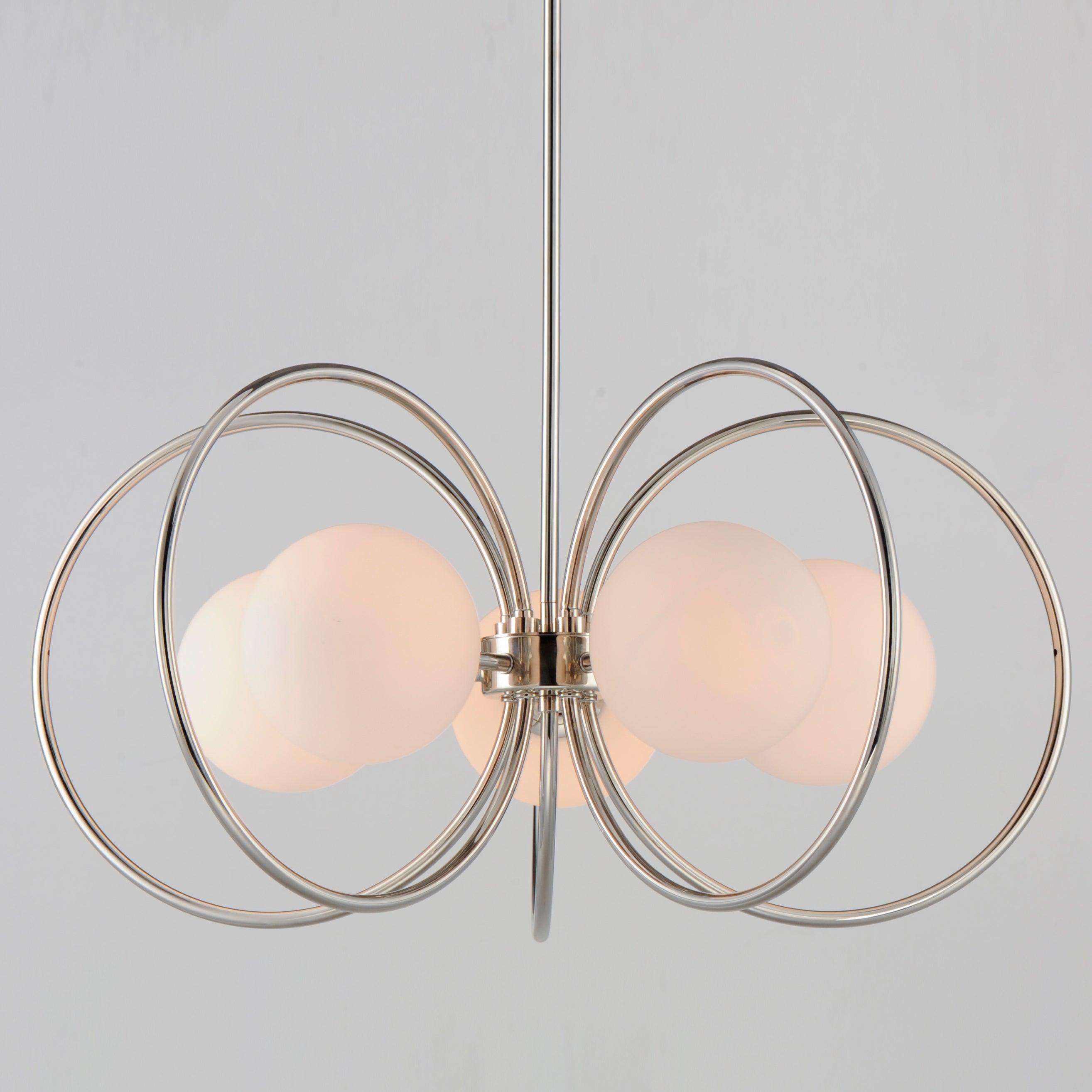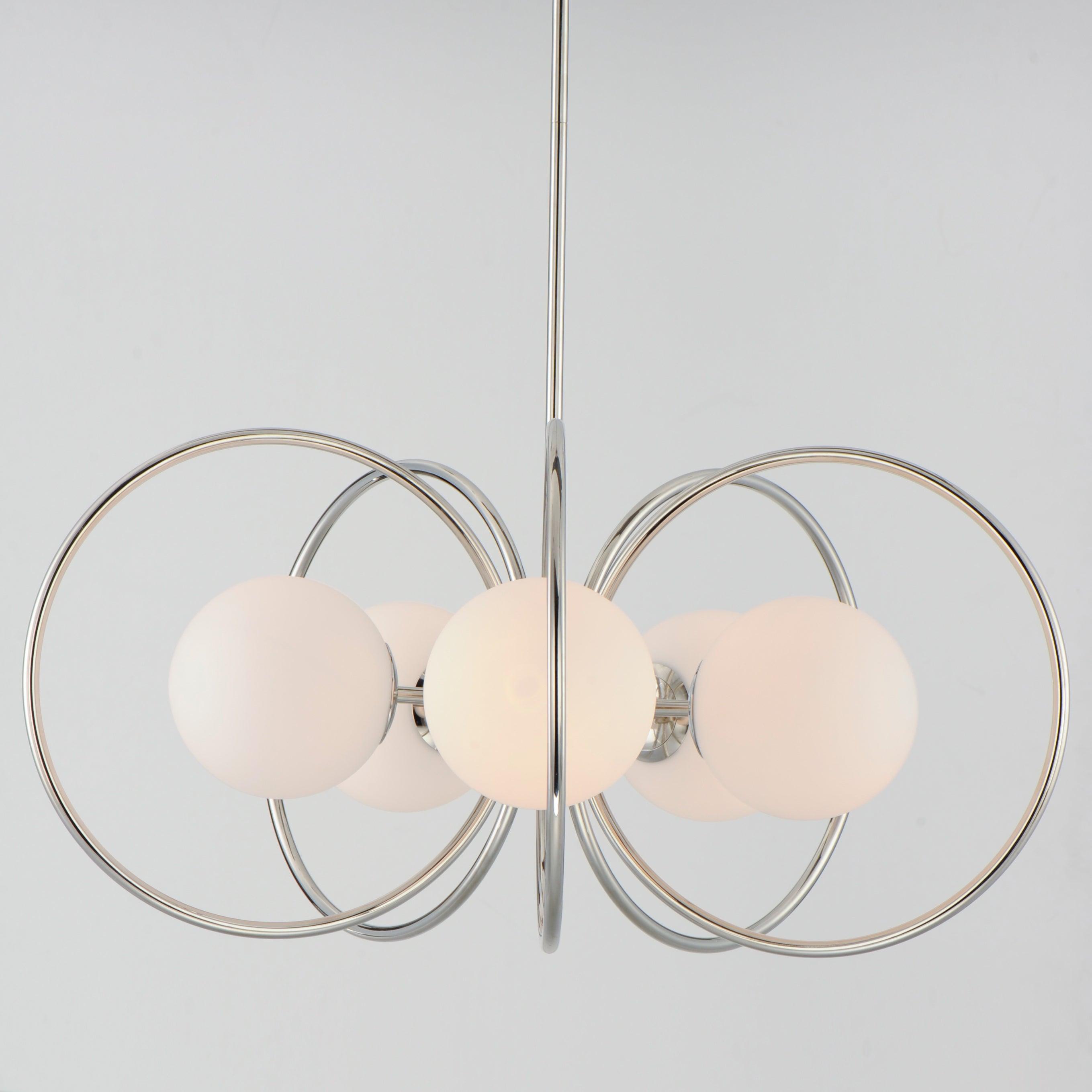 拋光鎳環環繞著緞光白玻璃球,營造出這種清爽乾淨的現代設計。當前的設計趨勢與現代和過渡美學相得益彰。