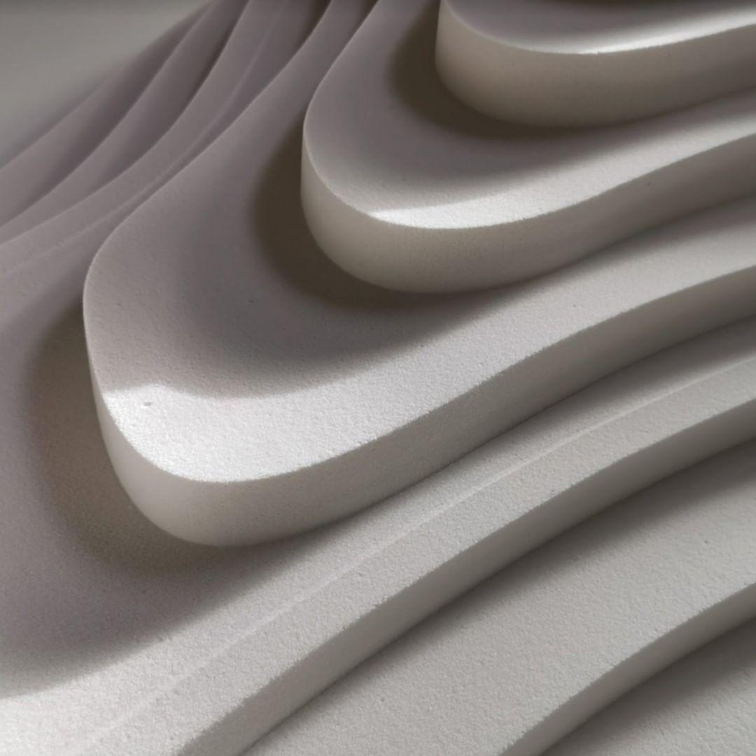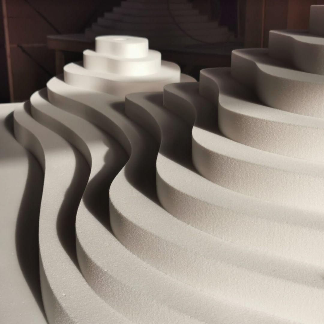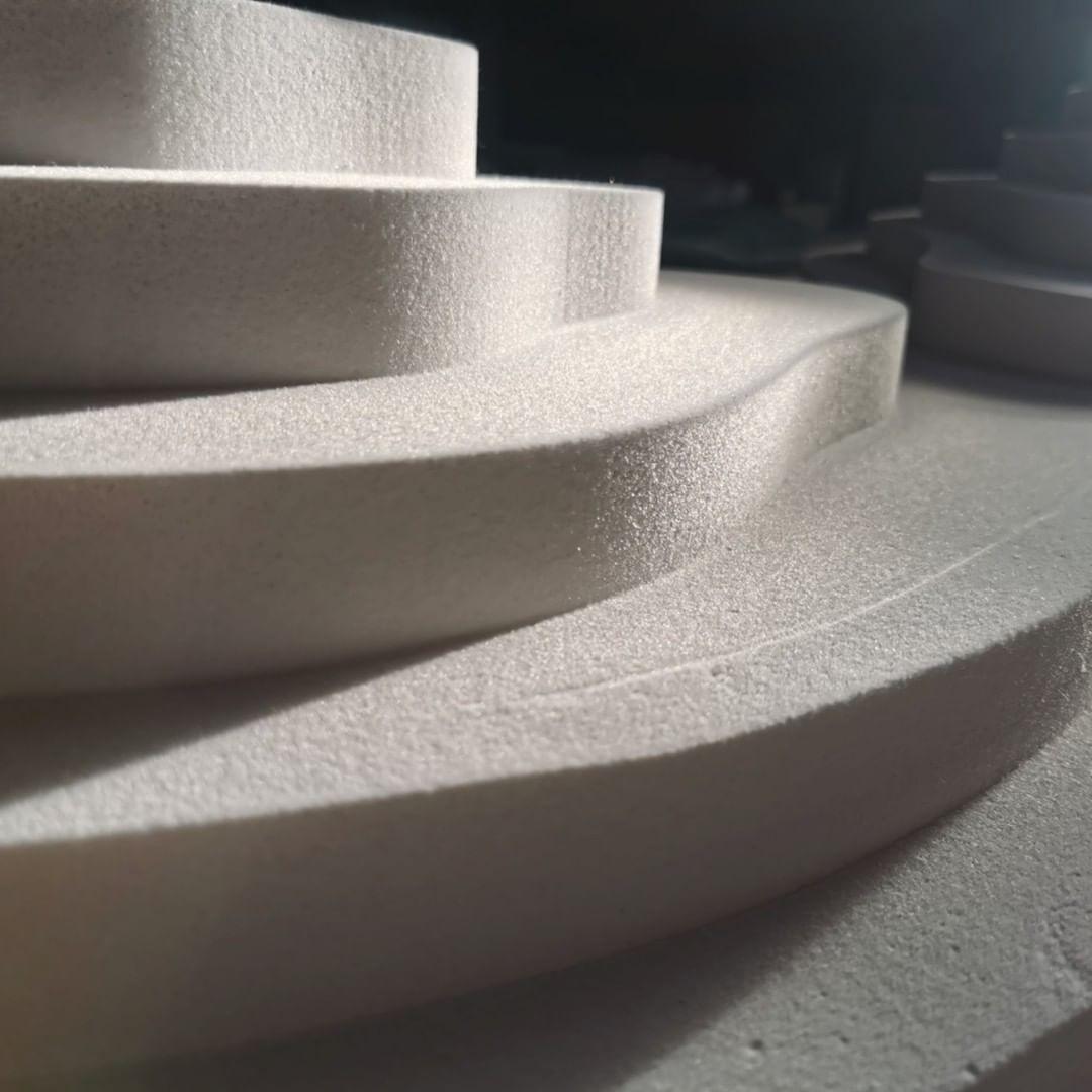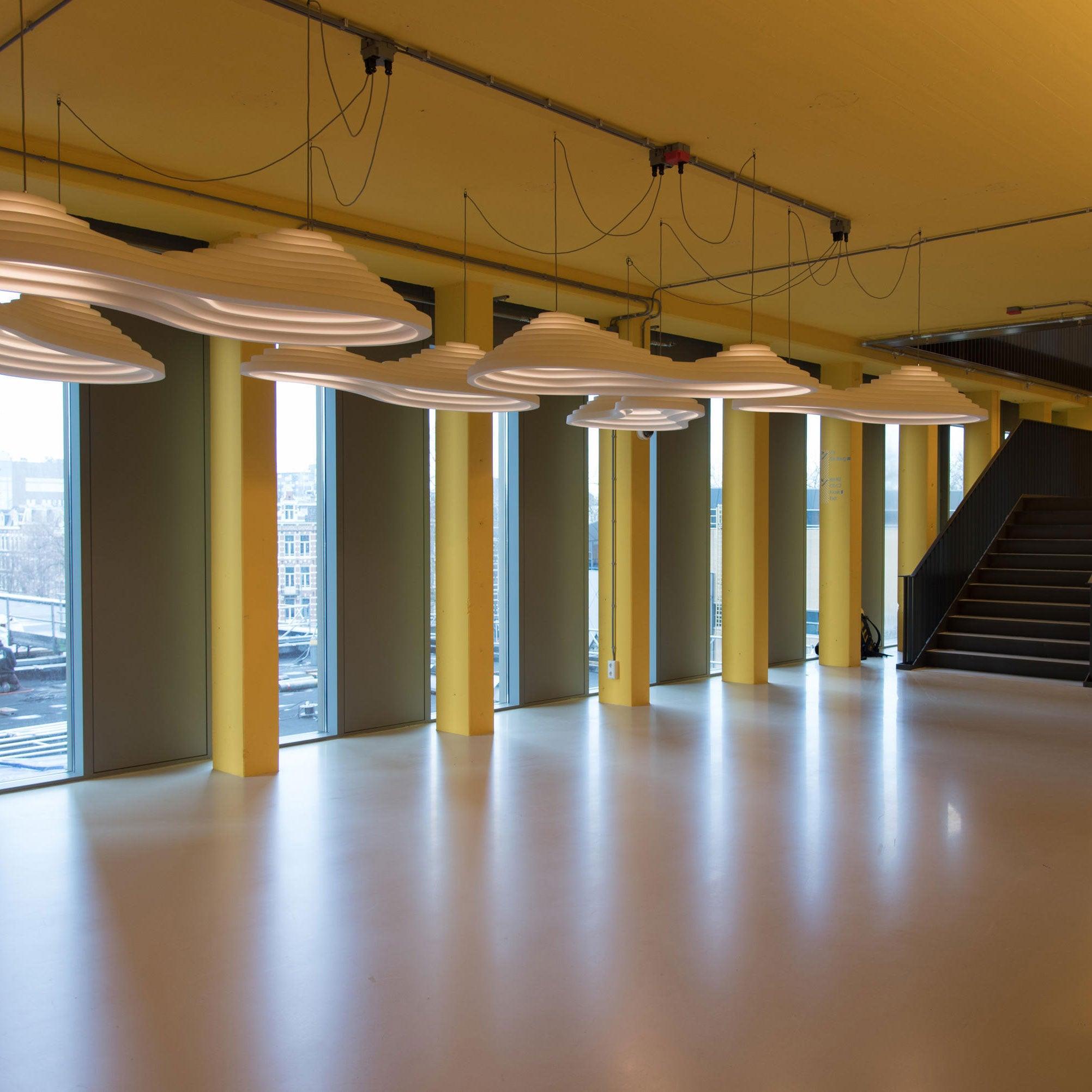 由於燈的特殊形狀,三聚氰胺吸音泡沫的表面幾乎增加了一倍,因此稻田具有出色的吸音效果。特別高效的生產方法和使用的 LED 照明也使這款燈成為可持續產品。