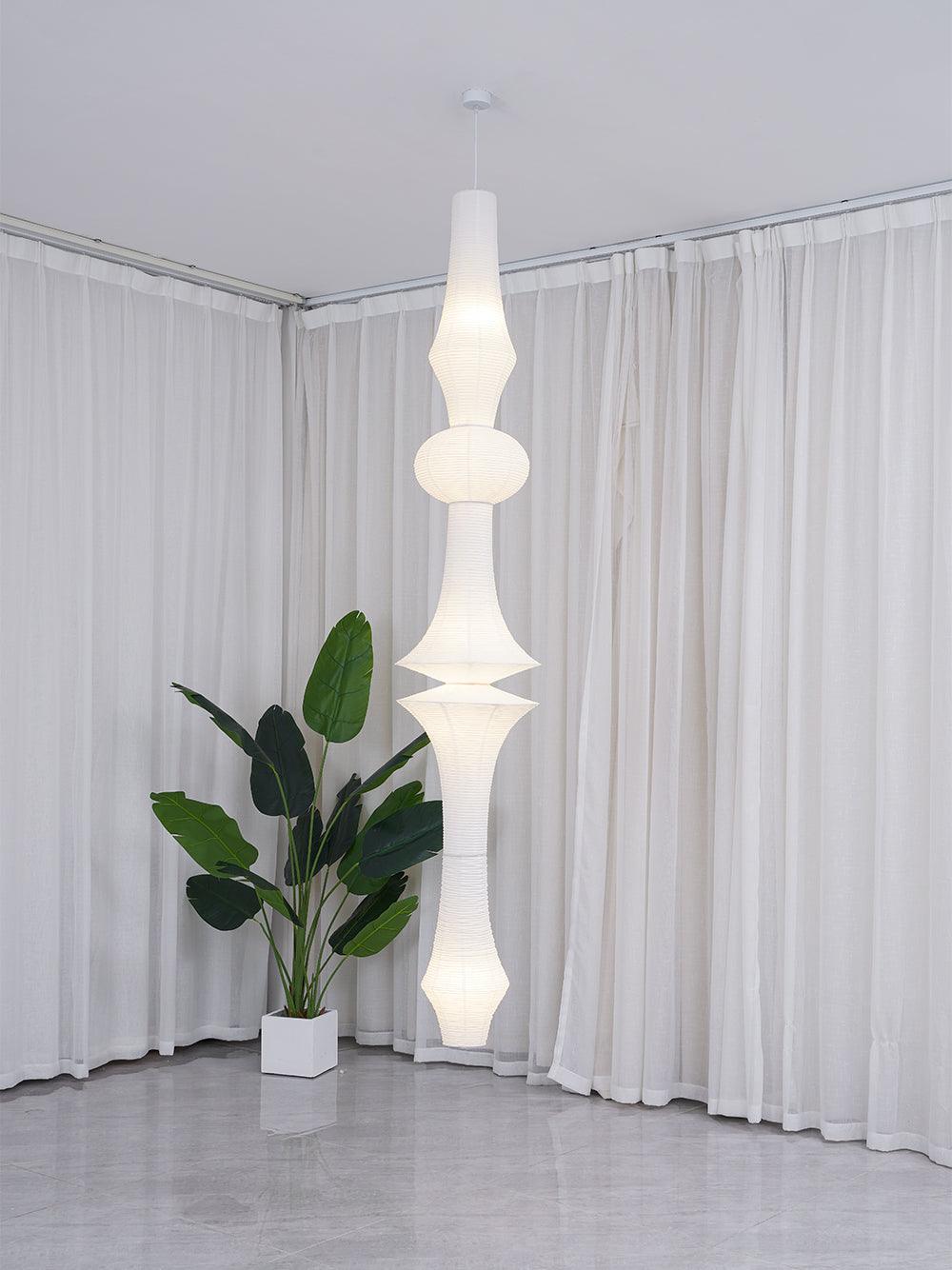 Akari 燈是用半透明和紙手工製作的,這種紙是由桑樹的內層樹皮製成的。設計師將 Akari 的光線與透過傳統紙門過濾的陽光進行了比較——燈光雕塑營造出溫暖的光芒和宜人的氛圍。
