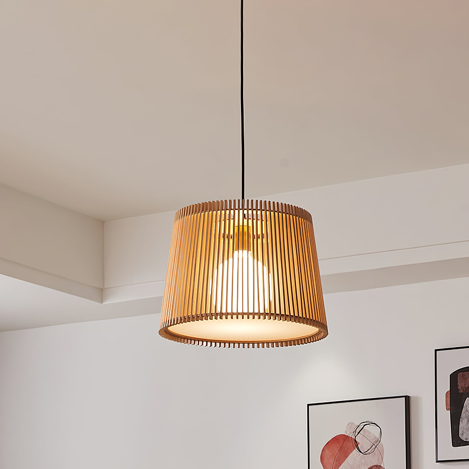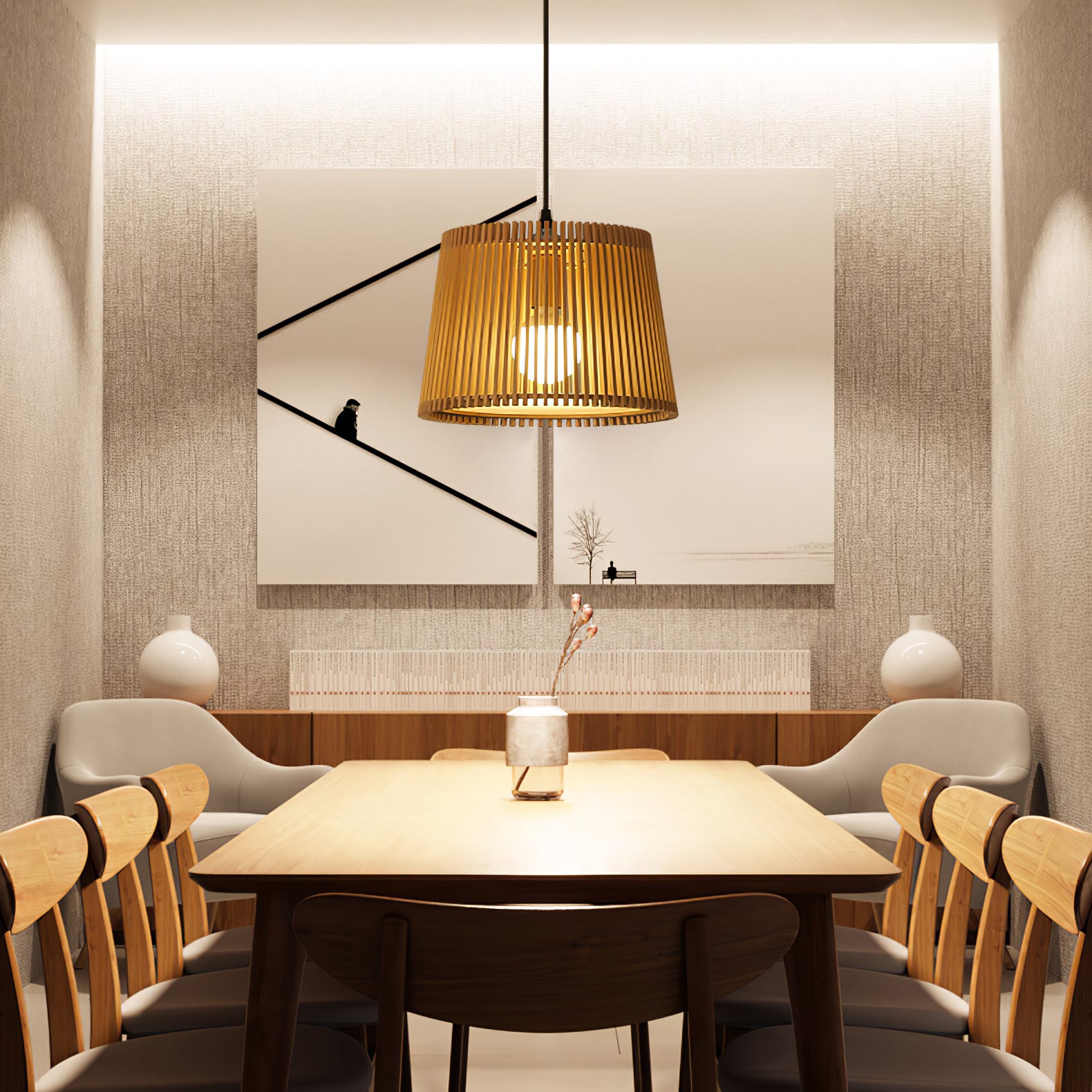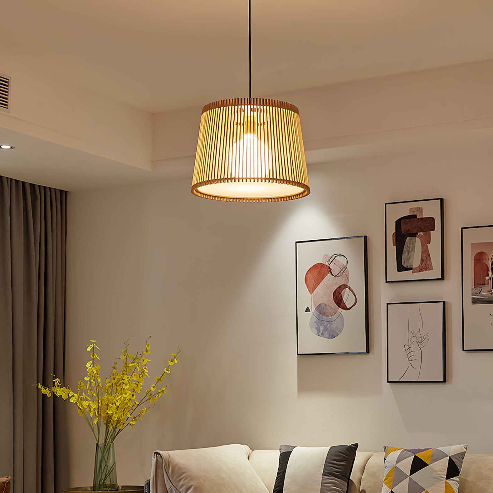 Samantha 燈一旦打開,木板條就會在天花板上營造出迷人的光影效果。吊燈與當前的自然和波西米亞風趨勢無縫融合,以其天然材料營造出迷人的氛圍,並為客廳或餐廳提供舒適的照明。