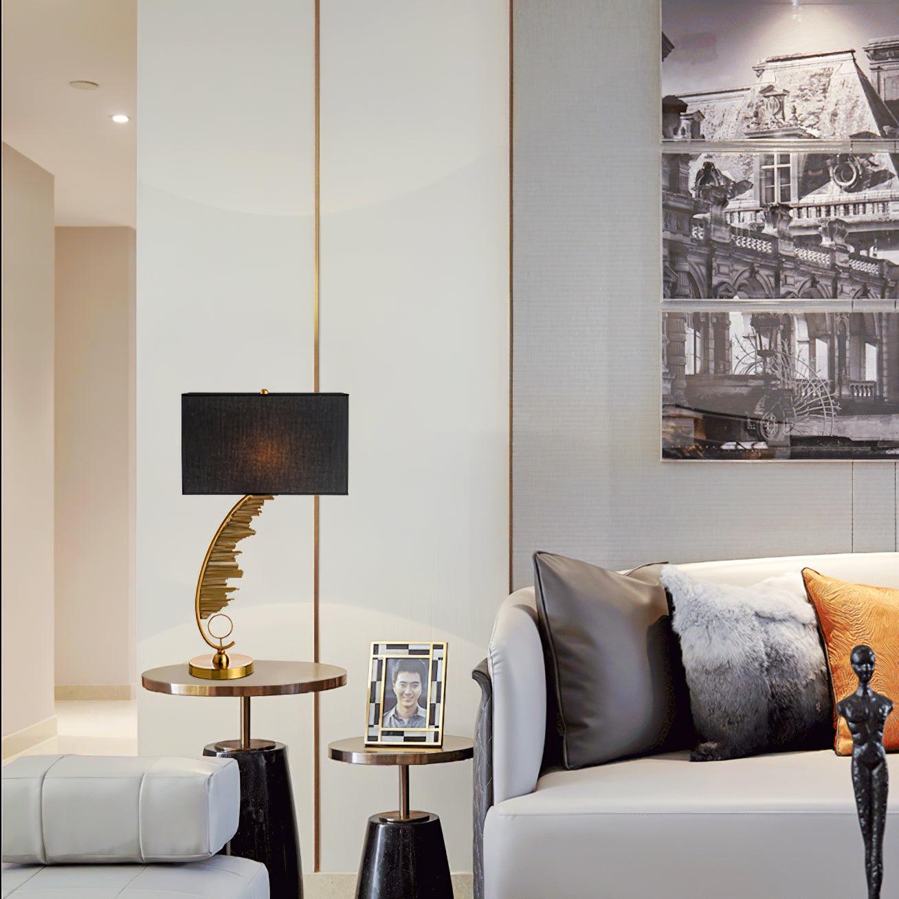 雕塑金屬檯燈採用手工製作的鐵元素獨特地連接在一起,形成了這種“雕塑羽毛”設計。