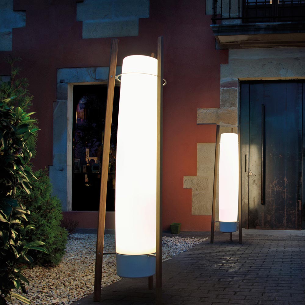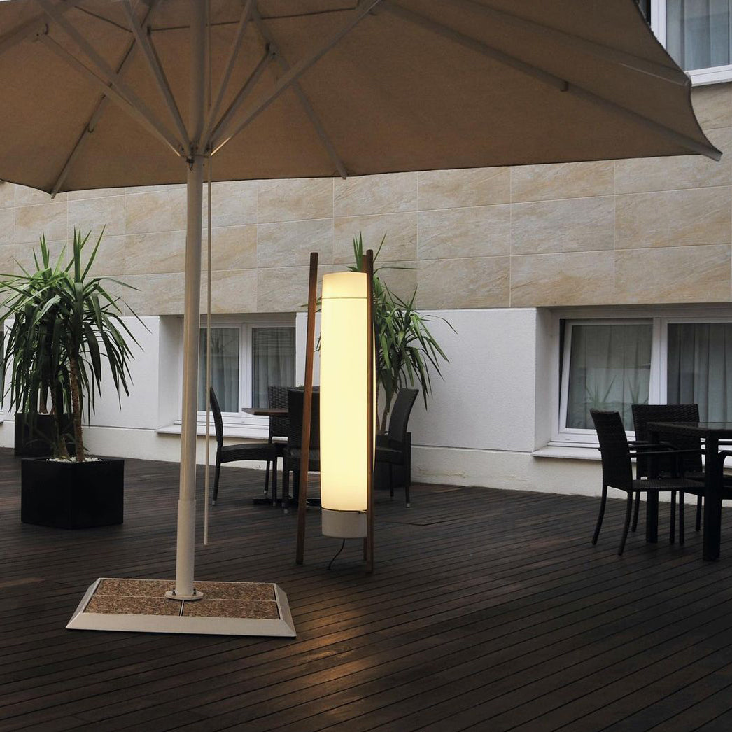側 LED 落地燈採用柱式輪廓和莊嚴的禪宗風格。這款節能落地燈專為融入元素而設計,擁有白色燈罩,遮蔽在三個輪廓分明的木帶內,為外部空間呈現出可愛的光芒。