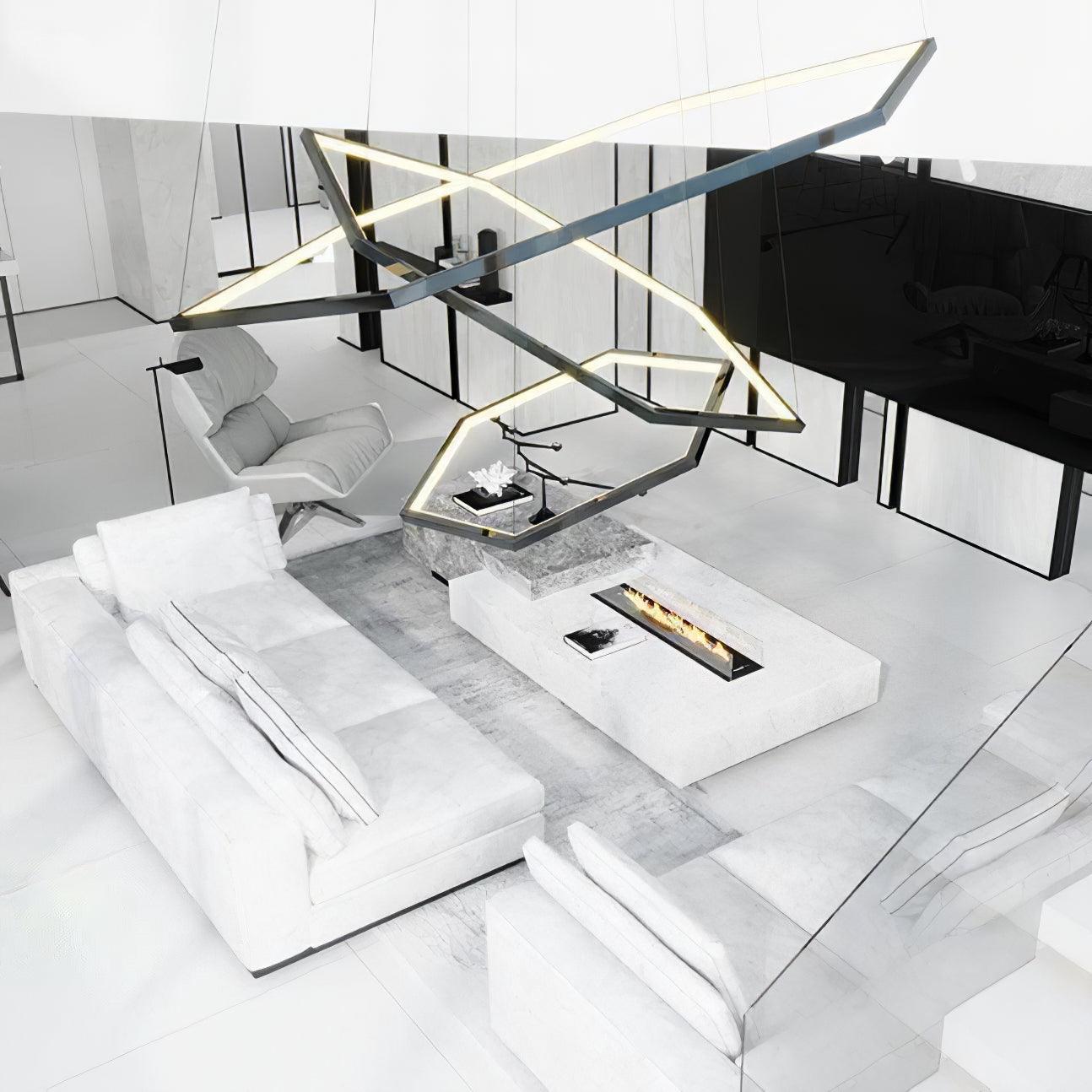 不規則六邊形。標準型材尺寸:W 20 x H 20mm / W 0.78″ x H 0.78″。提供定制選項。最多 6 層。直徑從 40 到 120 厘米。一體式 LED 照明。
