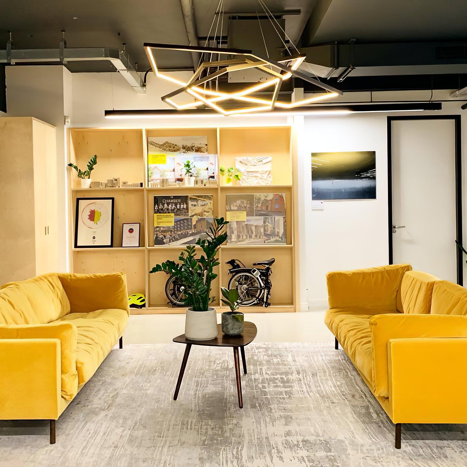 Vesanto 可作為單層或最多八層使用,通過沿每個六邊形內側放置的珠光漫射器發光。微妙的懸掛電纜可調節,以根據需要個性化懸掛配置。