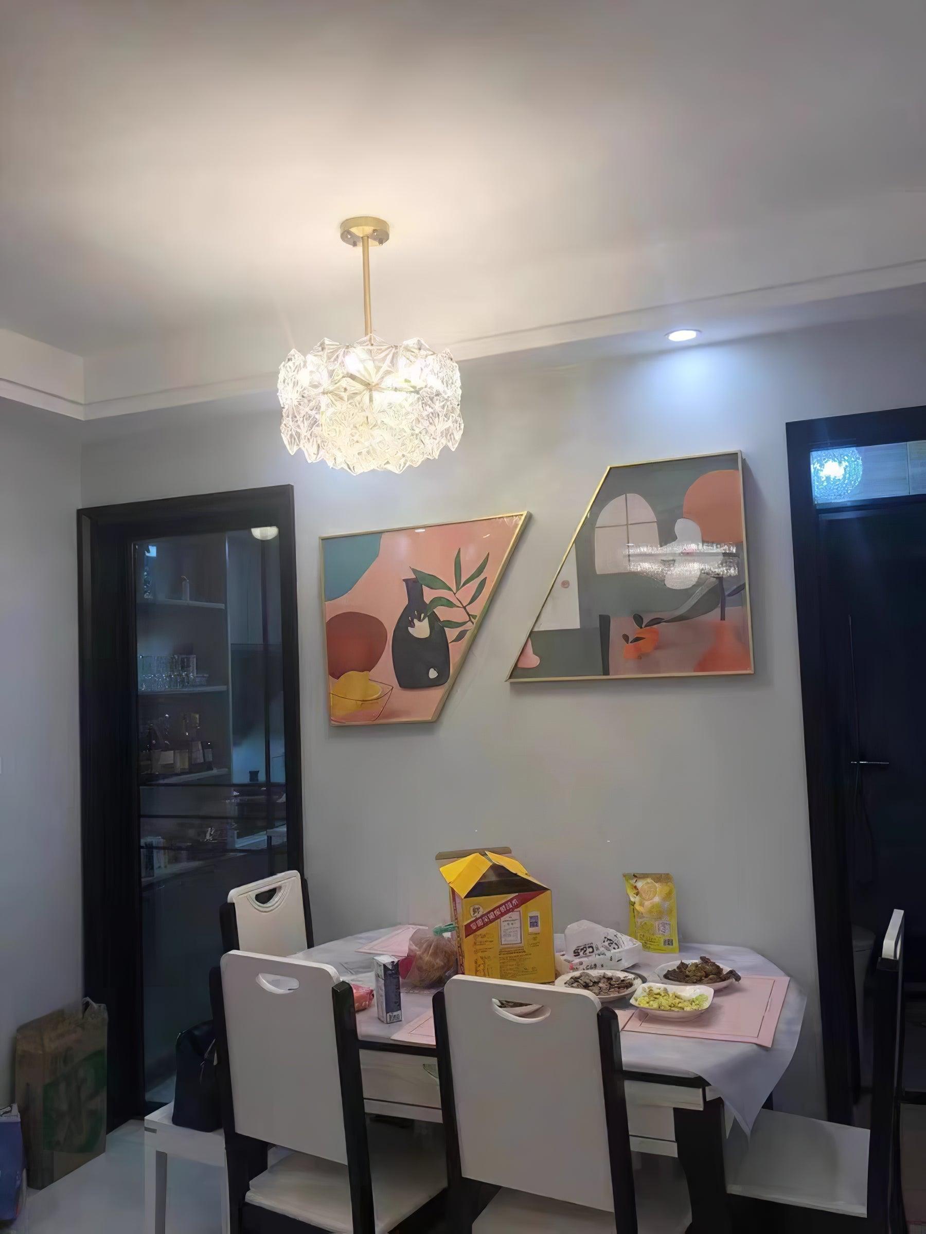 雪花玻璃枝形吊燈是大量使用方形和矩形玻璃的滿載照明燈具。精心計算的玻璃以系統的方式懸掛,以提供出色的效果。框架已保持在最低限度,以創造出這個壯觀的系列,並取得出色的效果。玻璃燈罩像雪花,像鑽石在天花板上閃耀。多層反射閃閃發光。