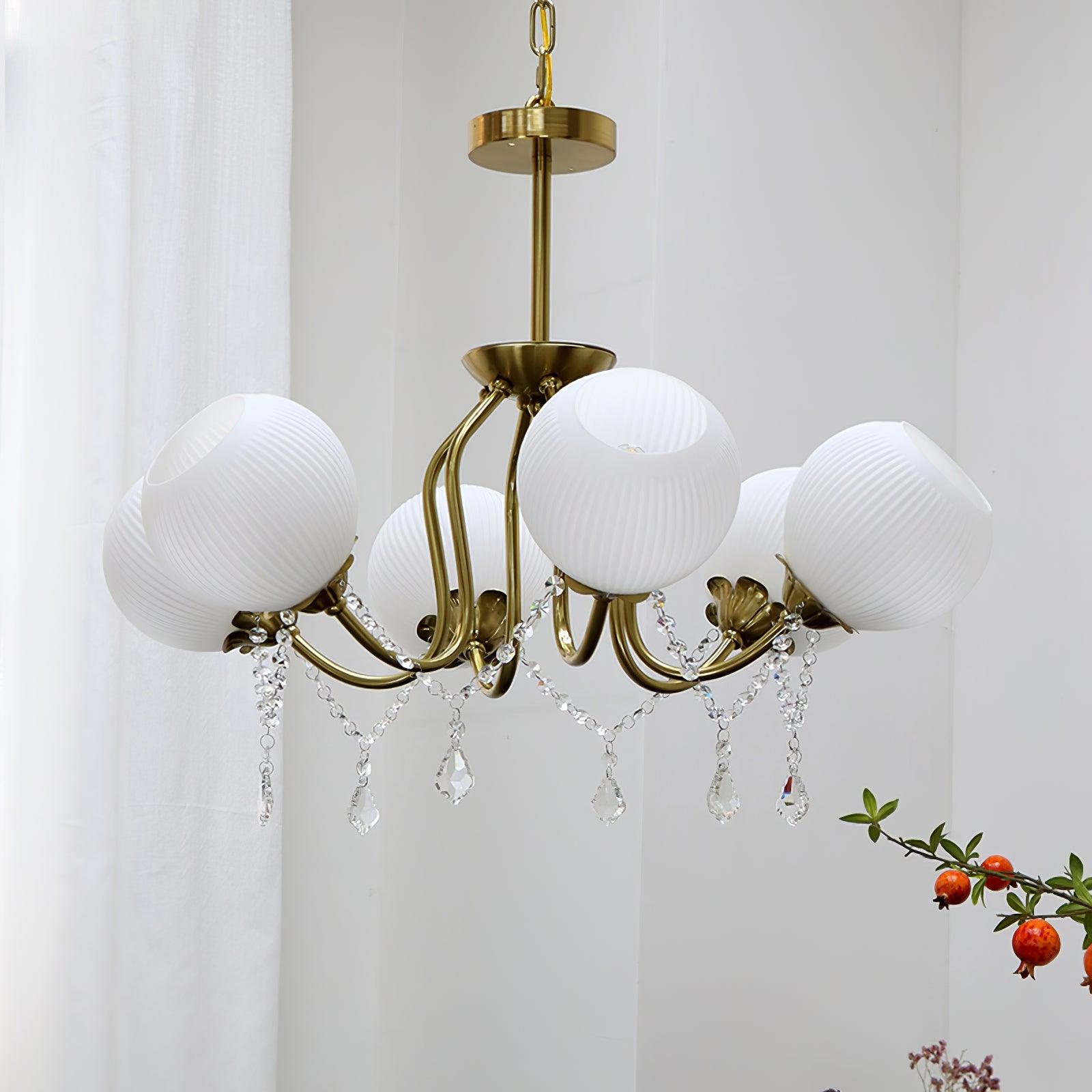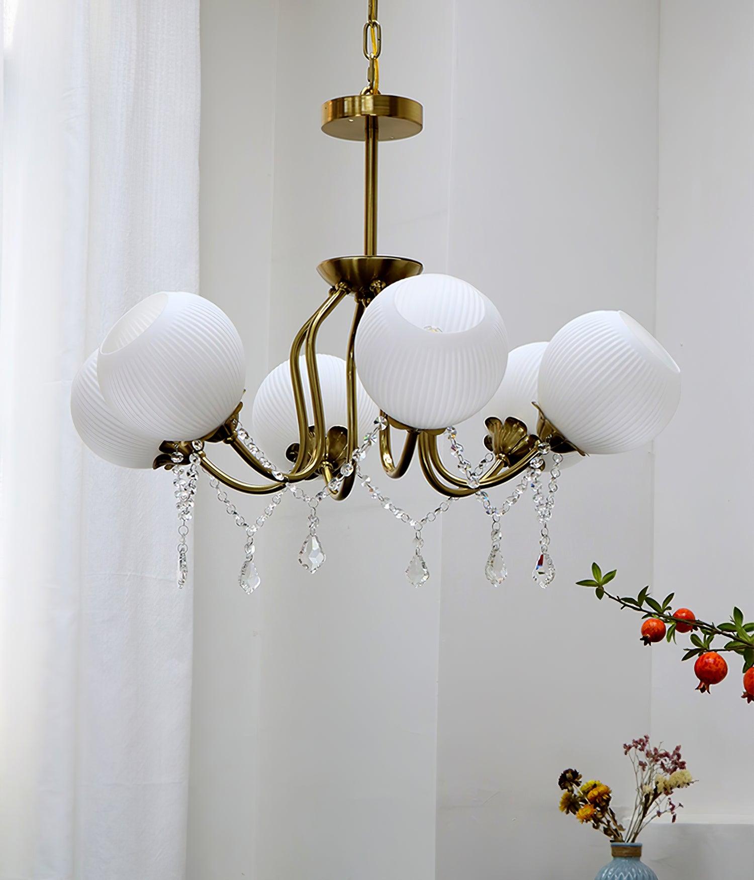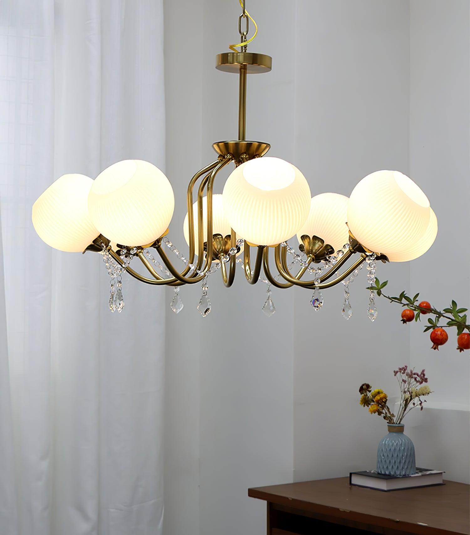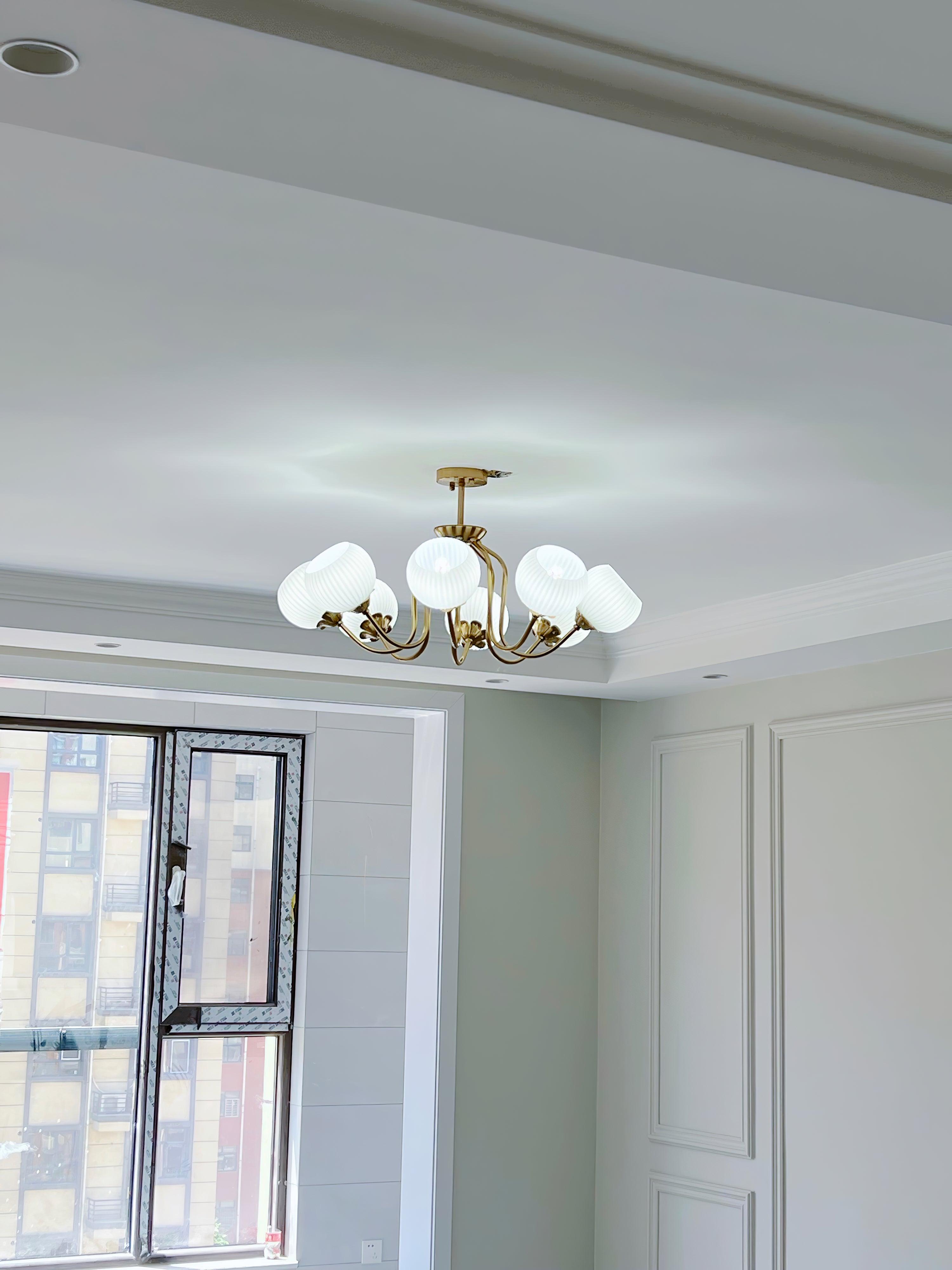 一盞唯美浪漫的花蕊吊燈,採用精緻美觀的玻璃、銅製成的吊燈,盡顯奢華,為您的居室增添溫馨的氣氛。