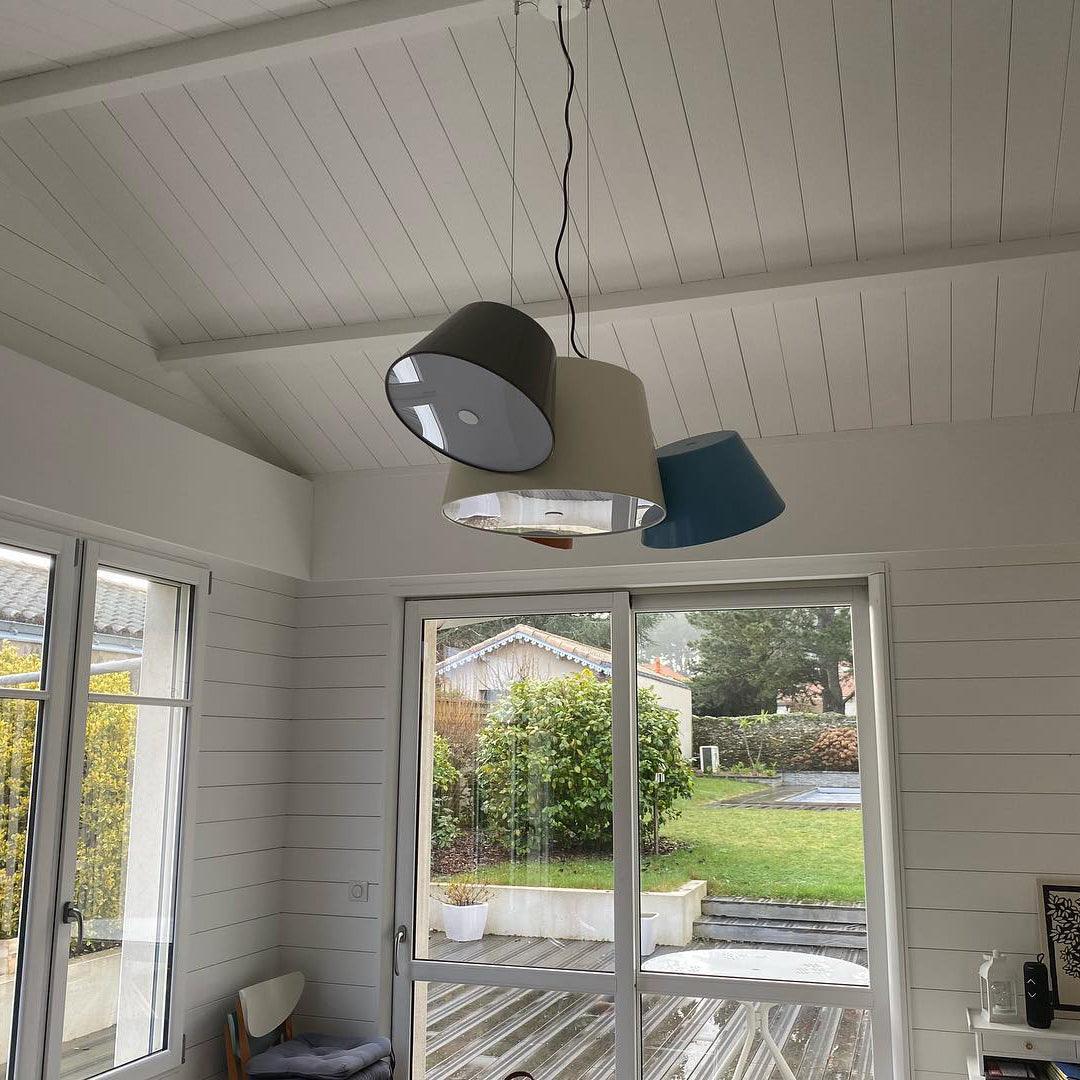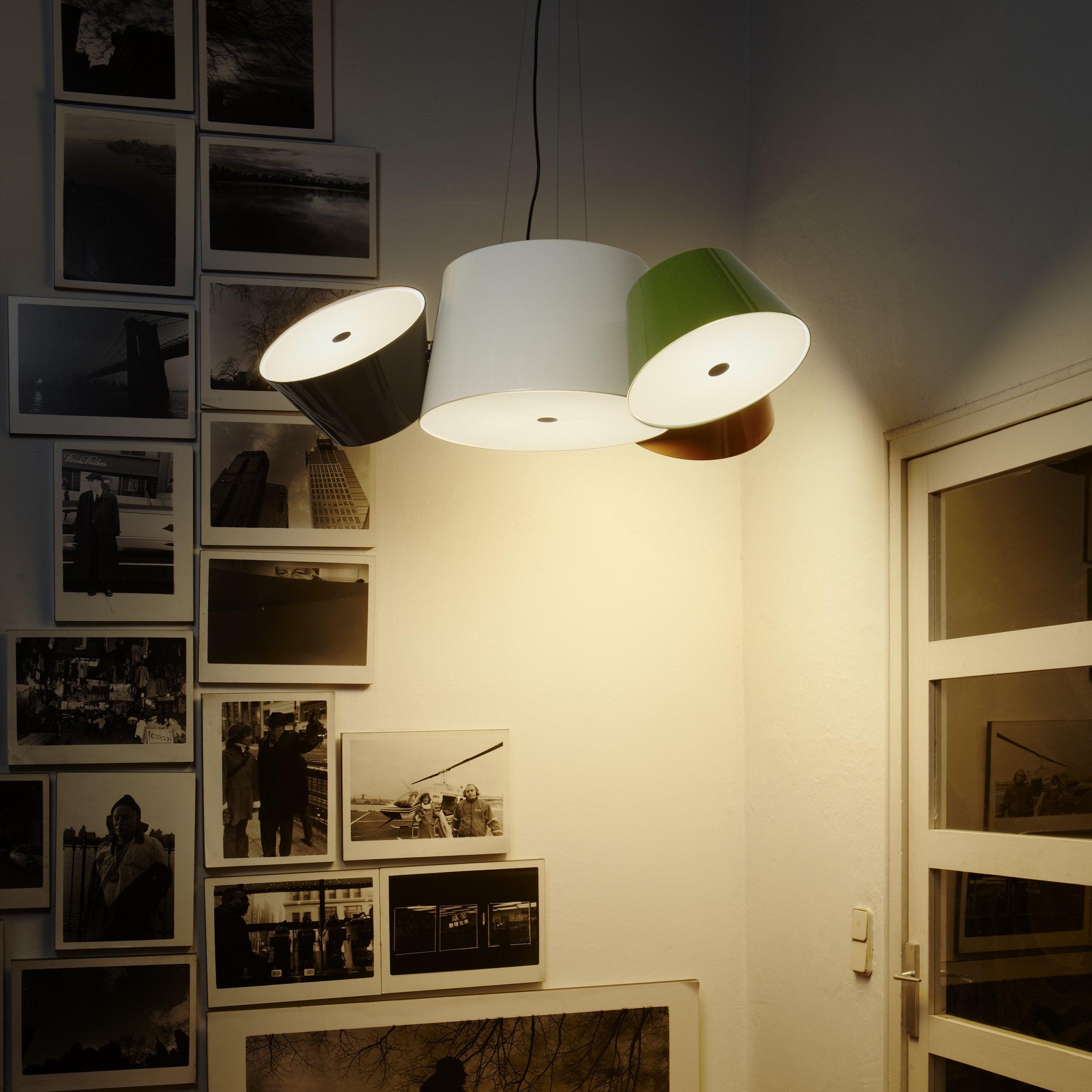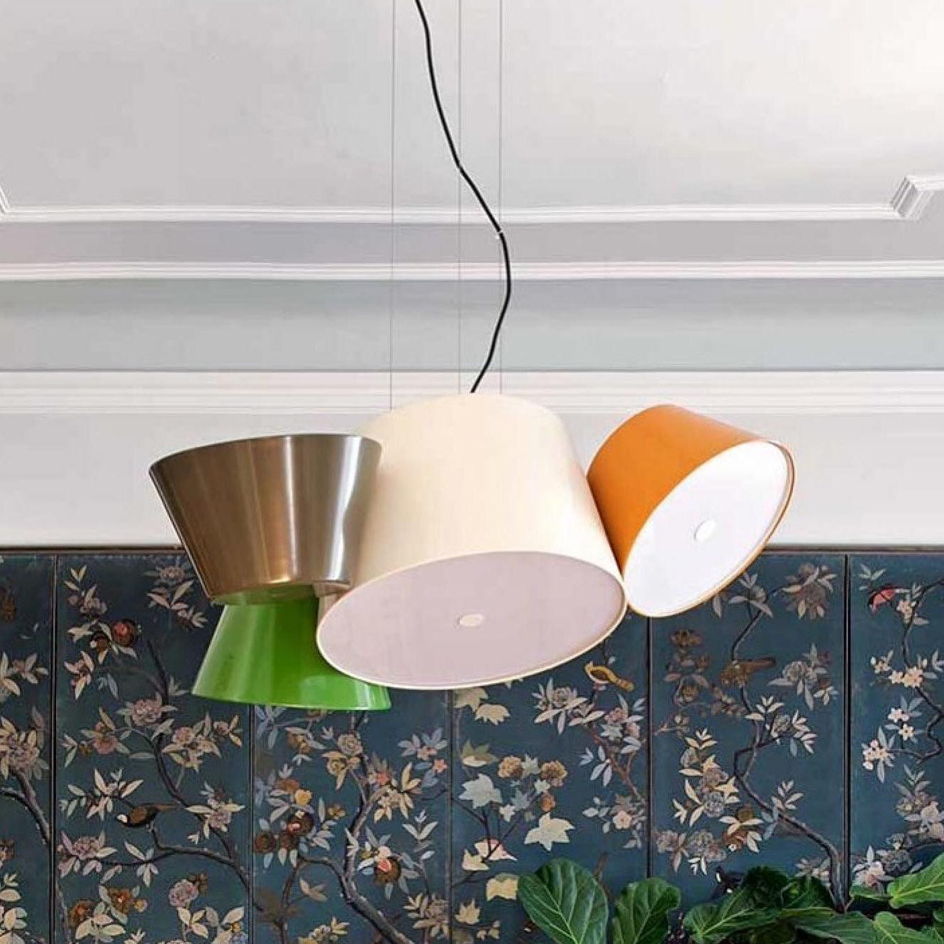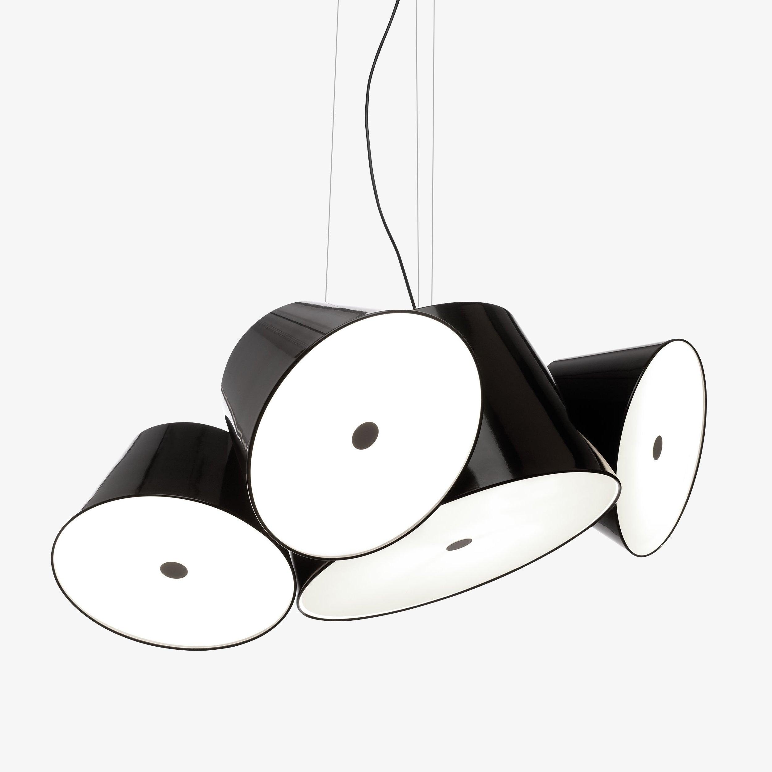 Tam Tam 由一個漆鋁中央組成,上面附有各種衛星燈罩,可以通過旋轉機構旋轉 360º。開口端上方的乳白色甲基丙烯酸酯漫射器柔化了光線。