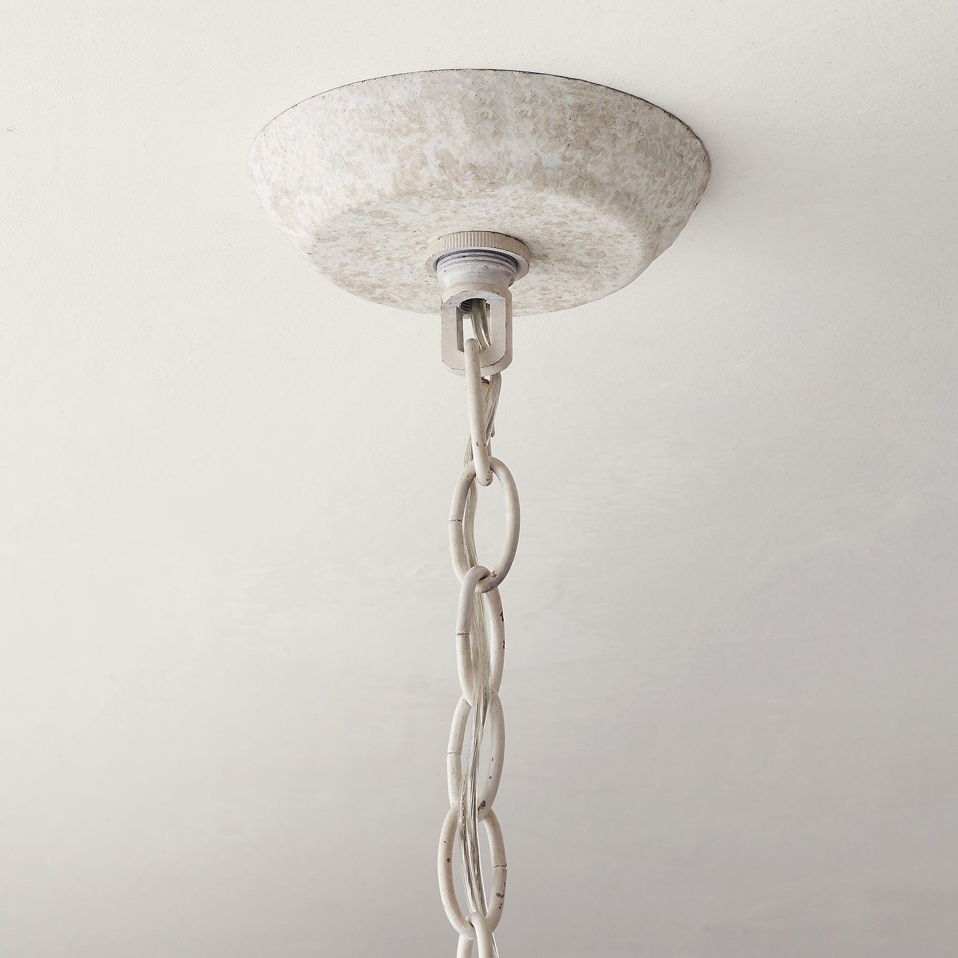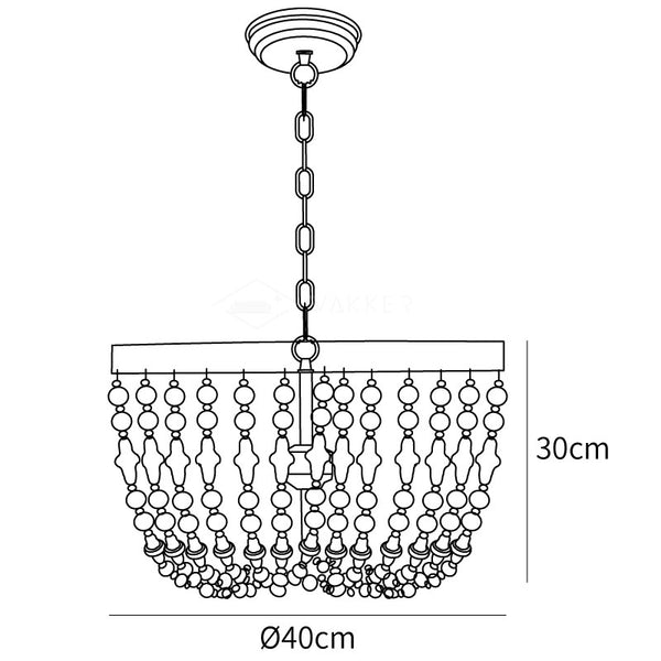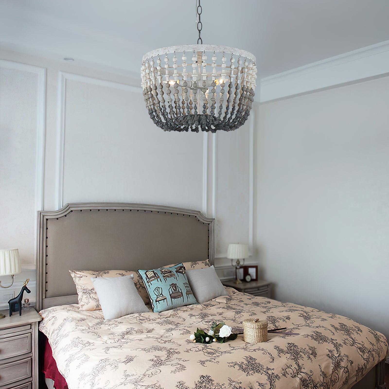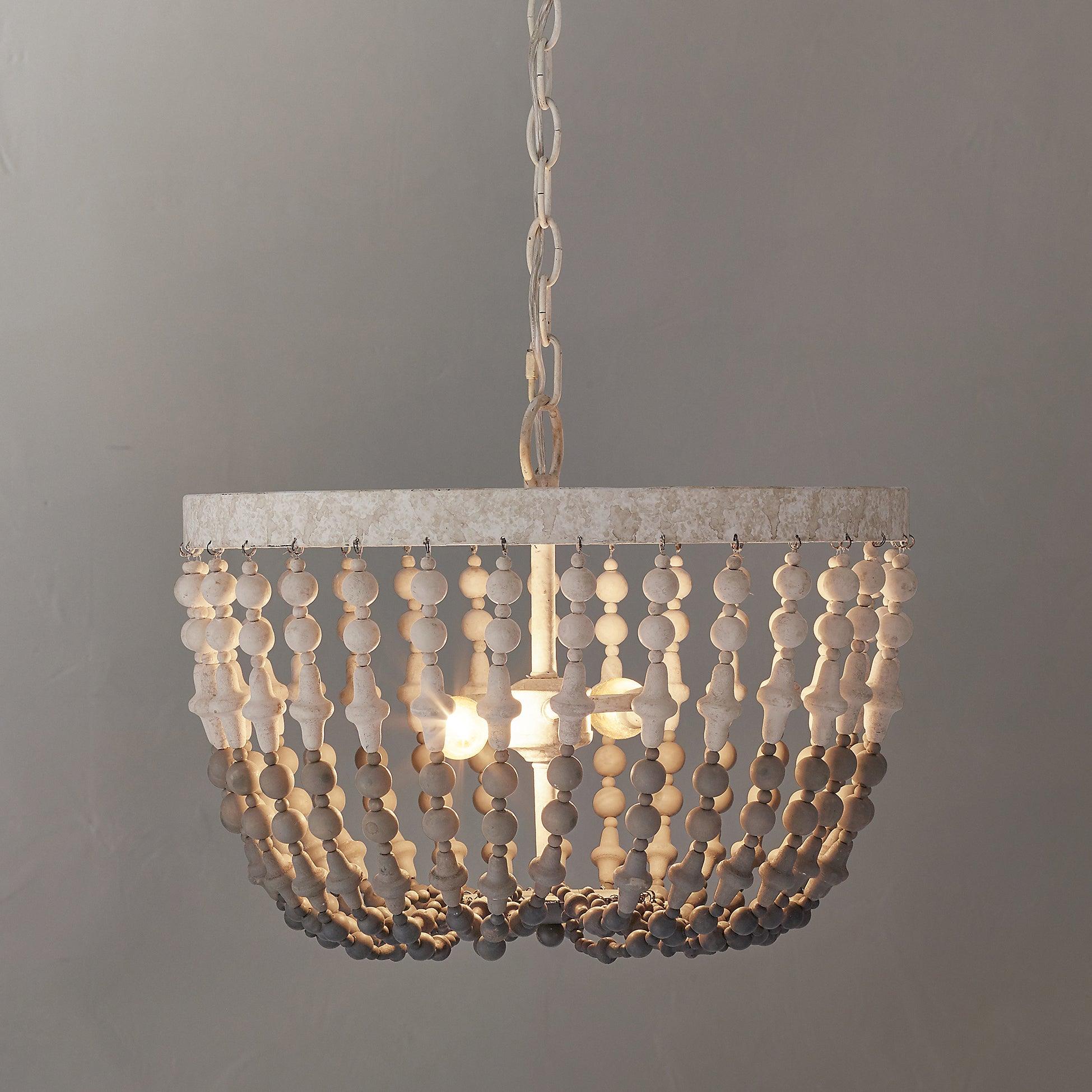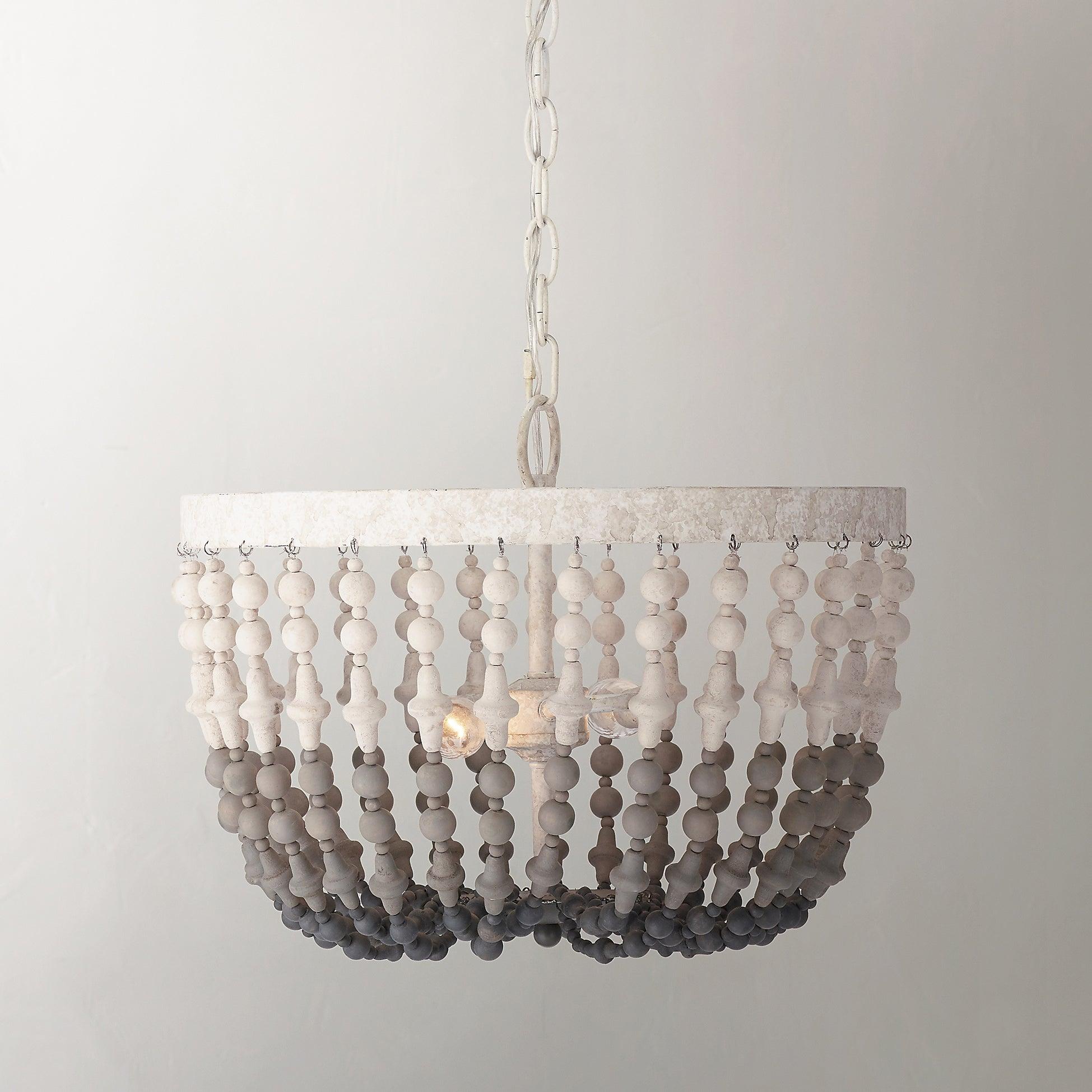 柔和的灰色和白色色調的圓形和車削木珠串從質樸的白色金屬框架上垂下,形成漸變效果。從鄉村農舍到復古和鄉村風格,這款木珠懸掛式燈具將為您的房間設計增色不少。