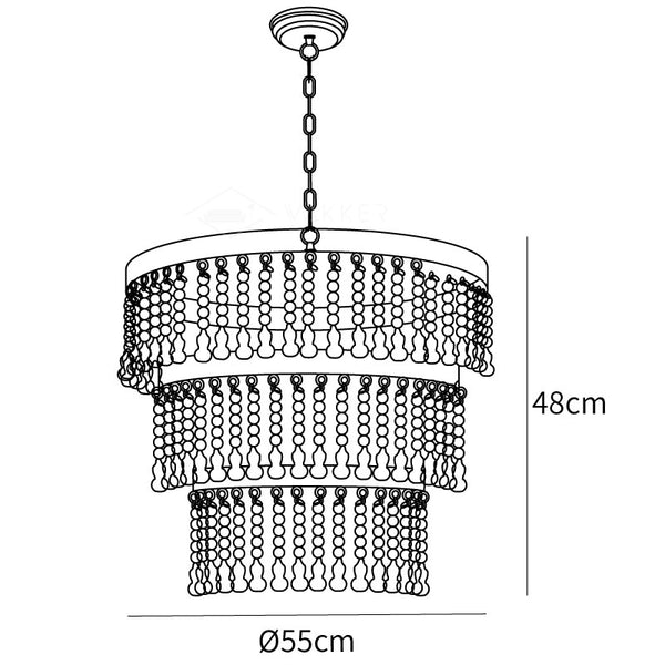 以波西米亞風格為靈感的經典枝形吊燈,無論是在入口處迎接客人還是照亮餐桌,這種設計都一定會吸引眼球。這款三層燈具由金屬和木材製成,在其圓形輪廓上展示了一系列懸掛的珠子,為這款獨特的設計增添了微風、悠閒的氣息。