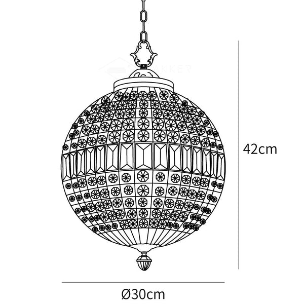 用這款迷人的單燈吊墜為您的餐廳、臥室或玄關帶來絢麗的風格。我們喜歡將這件作品單獨懸掛或以多個形式懸掛,以獲得更引人注目的外觀。它採用金色金屬製成,配有可調節鏈條和華麗的包頭,底部飾有相配的裝飾品。球形燈罩採用籠形設計,上面覆蓋著一排排透明水晶,在光線下閃閃發光。
