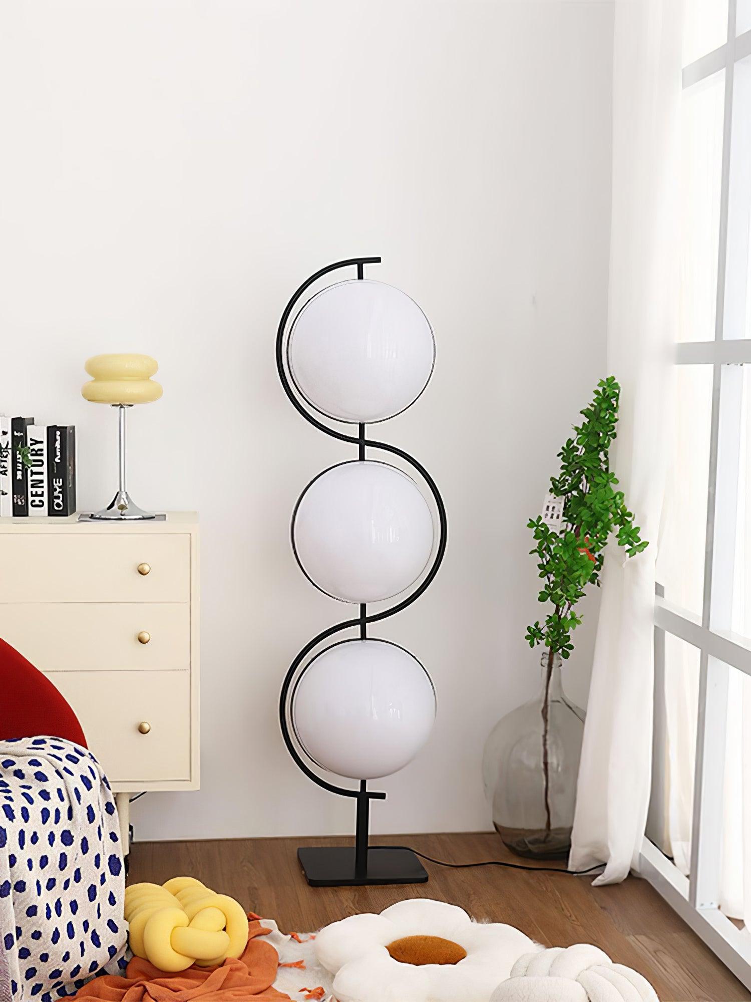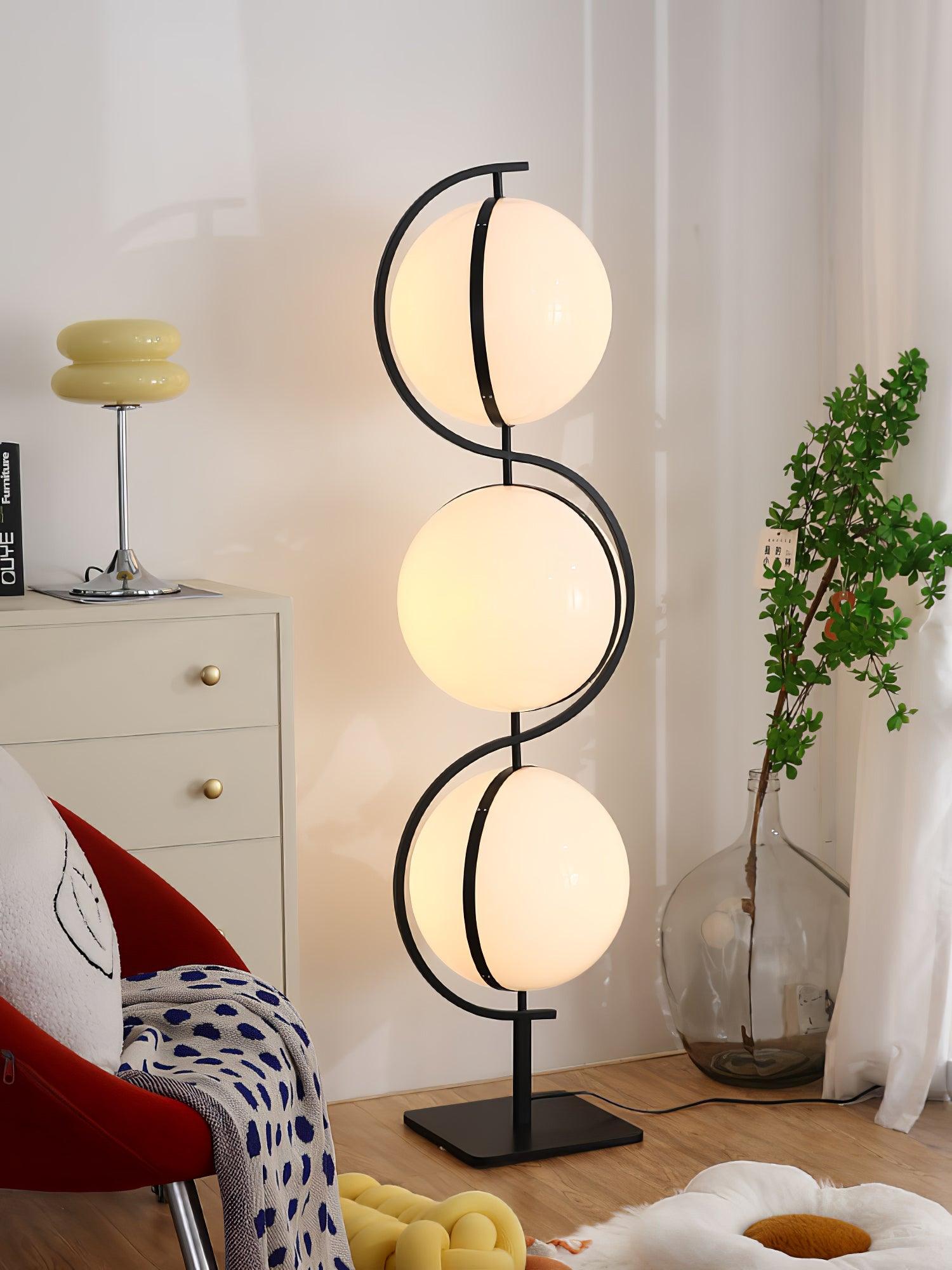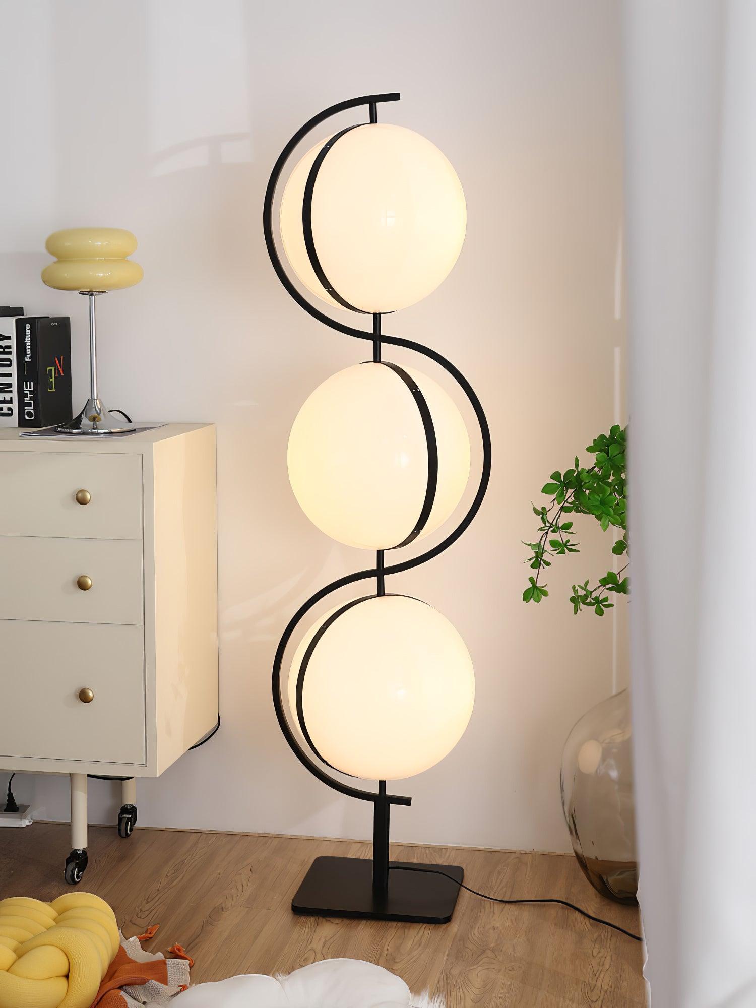 Triple Balls 落地燈具有氣勢磅礴、閃閃發光的亞克力球體和黑色結構,營造出一種漂浮在空中的燈光效果,一種非常強烈的未來主義精神,至今仍然存在。