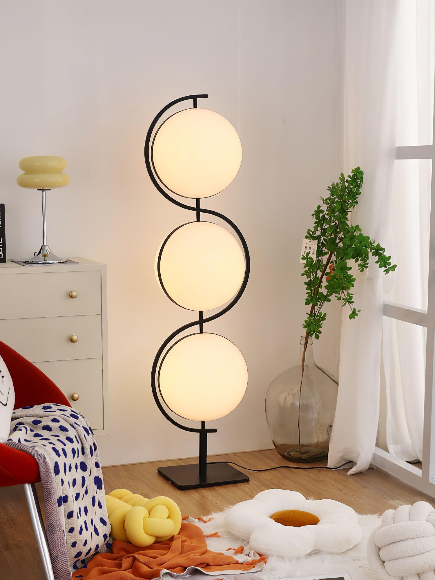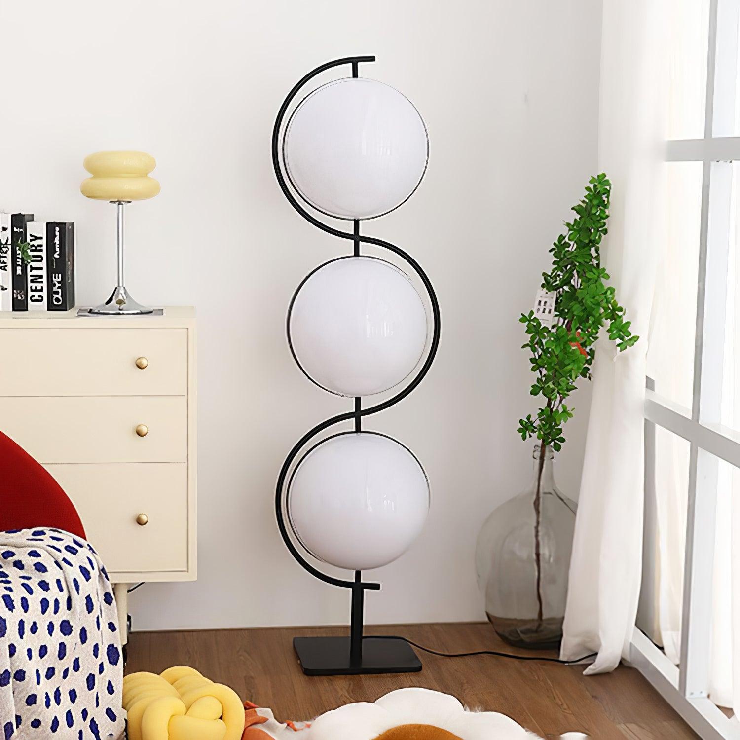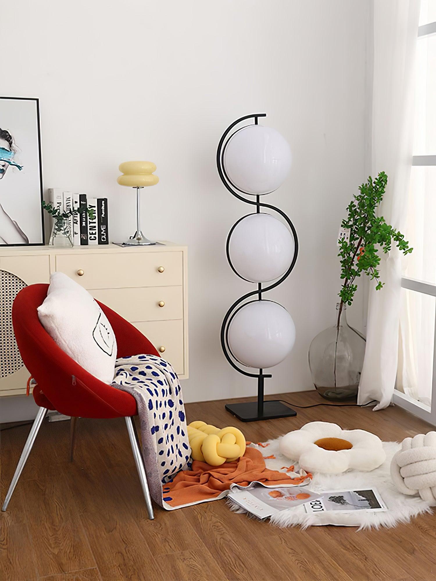 Triple Balls 落地燈具有氣勢磅礴、閃閃發光的亞克力球體和黑色結構,營造出一種漂浮在空中的燈光效果,一種非常強烈的未來主義精神,至今仍然存在。