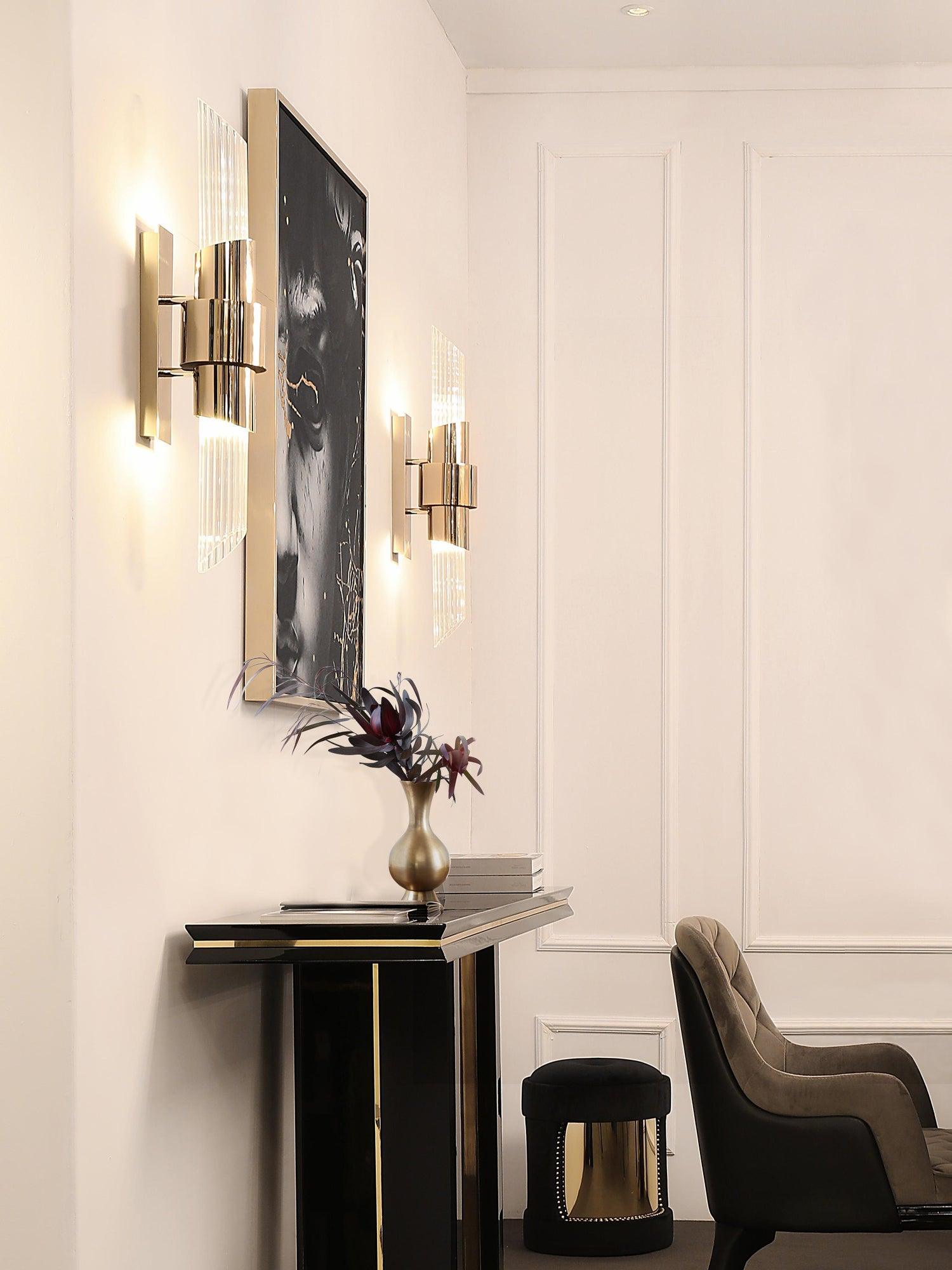 沿著創作路線,Tycho 壁燈的小版本創造了一個國際化的奢華環境,傳達親密的照明作為其建築靈感和它在水面上的倒影。電鍍金與水晶,完美組合,可多件搭配使用。