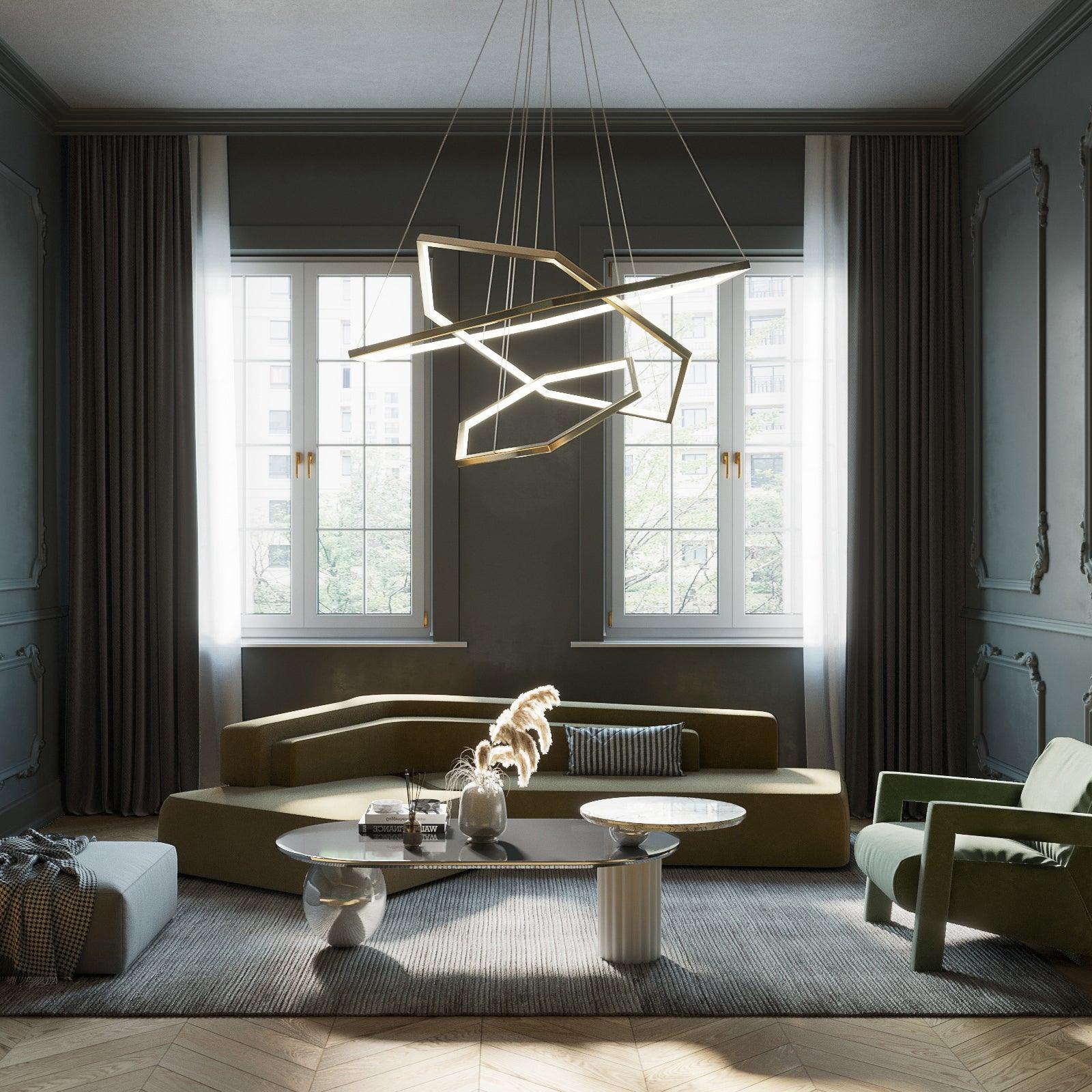 Vesanto 可作為單層或最多八層使用,通過沿每個六邊形內側放置的珠光漫射器發光。微妙的懸掛電纜可調節,以根據需要個性化懸掛配置。