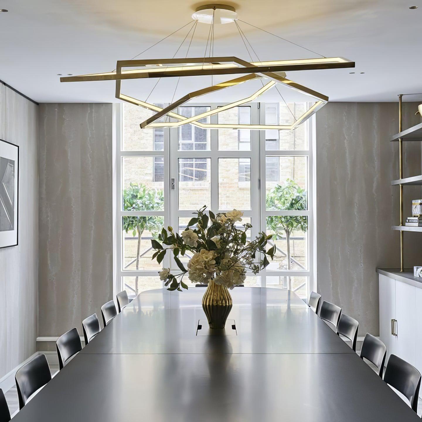 不規則六邊形。標準型材尺寸:W 20 x H 20mm / W 0.78″ x H 0.78″。提供定制選項。最多 6 層。直徑從 40 到 120 厘米。一體式 LED 照明。