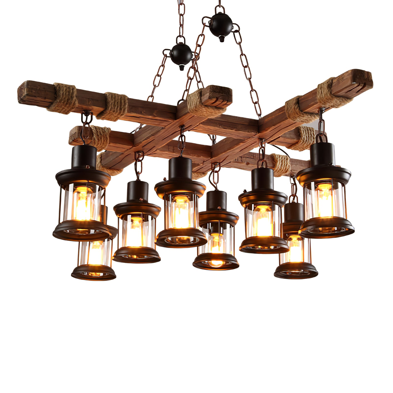 這款復古別緻的枝形吊燈採用玻璃和木質材料製成,其獨特的造型使其成為您家中引人注目的亮點。